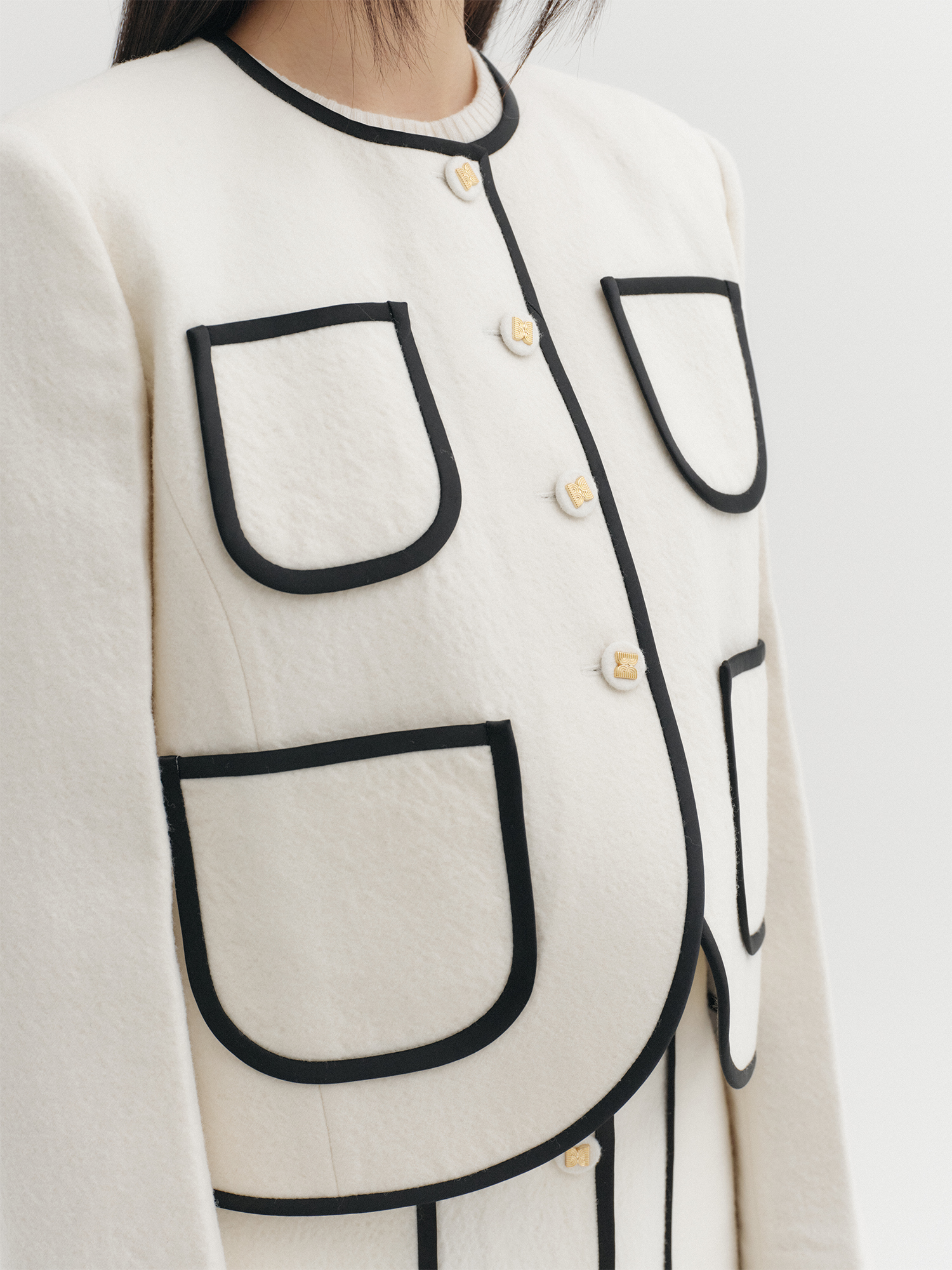 트림 패널 숏 자켓 - 아이보리NEW