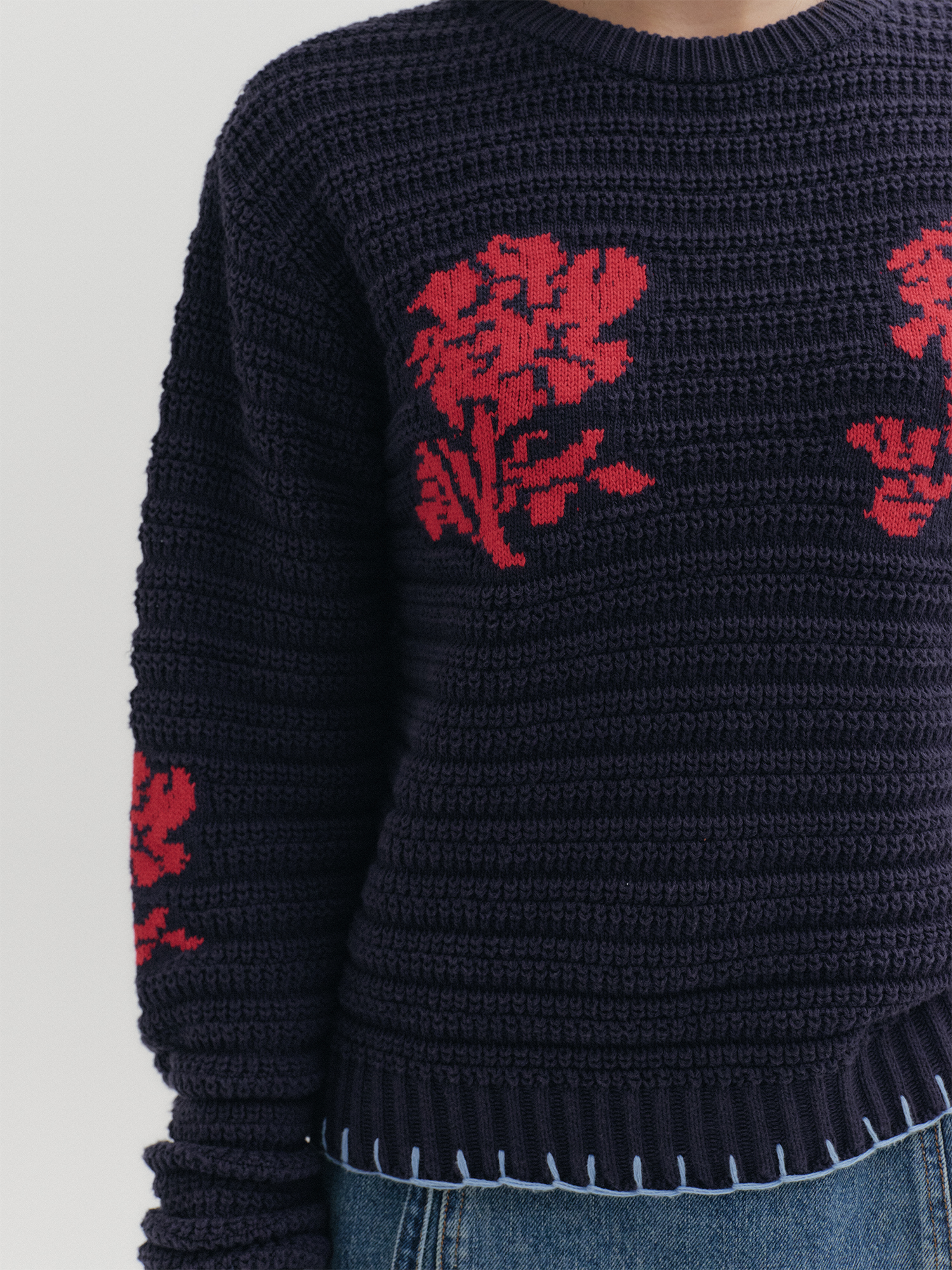 프로럴 자카드 니트 탑 - 네이비