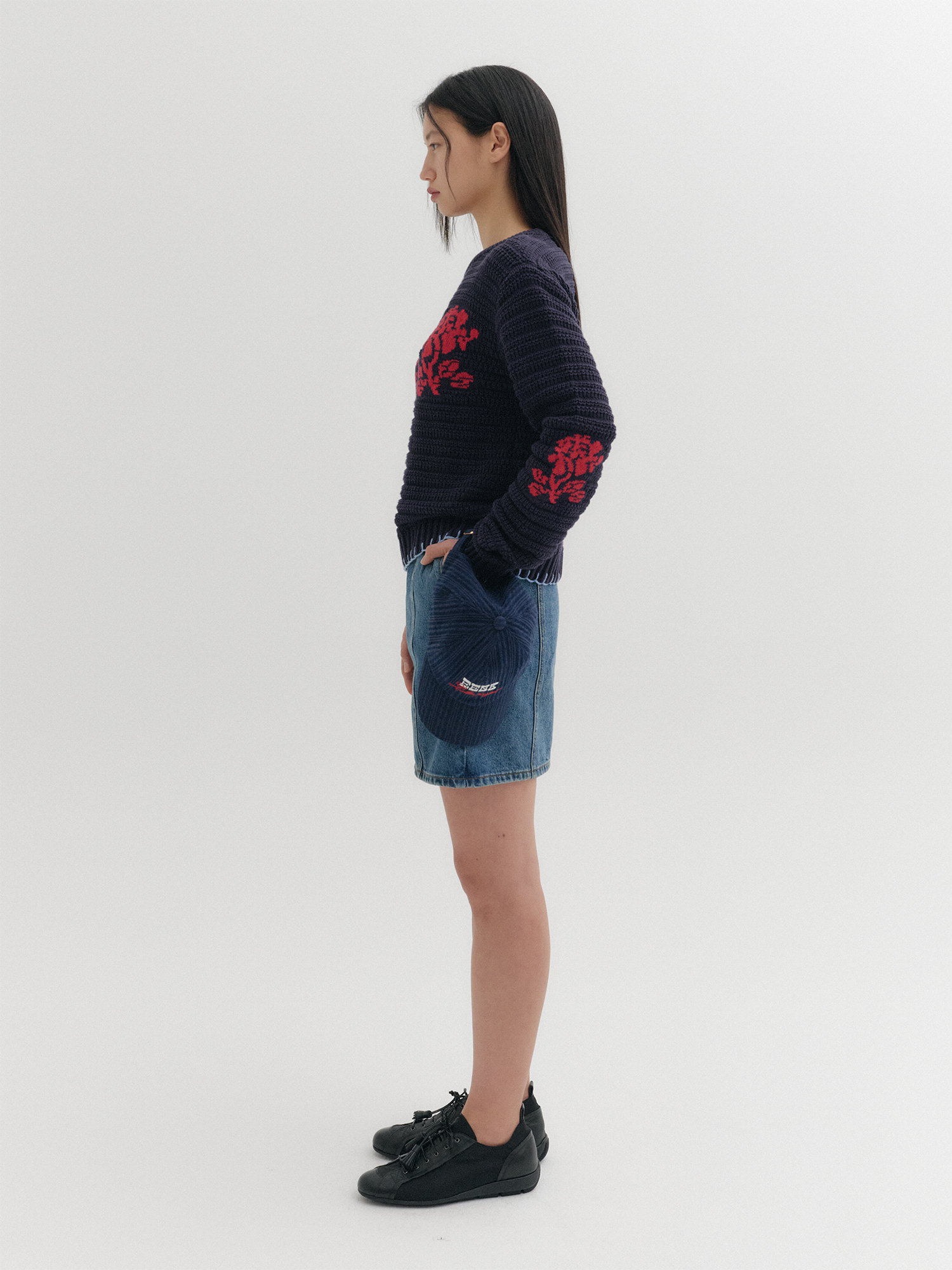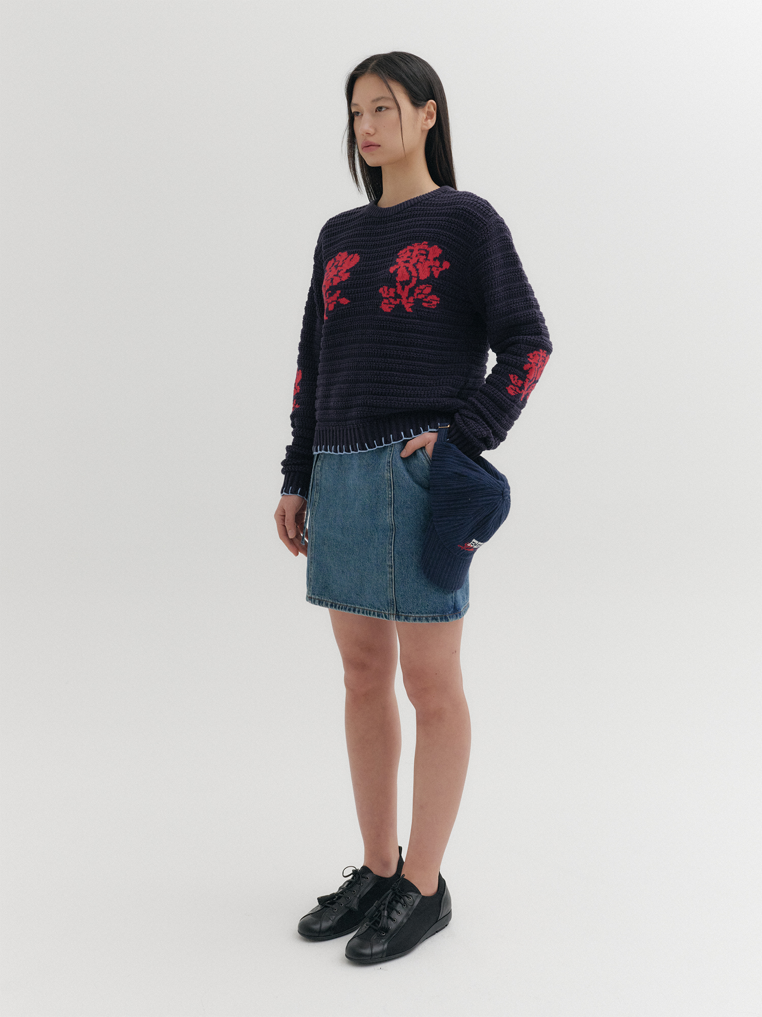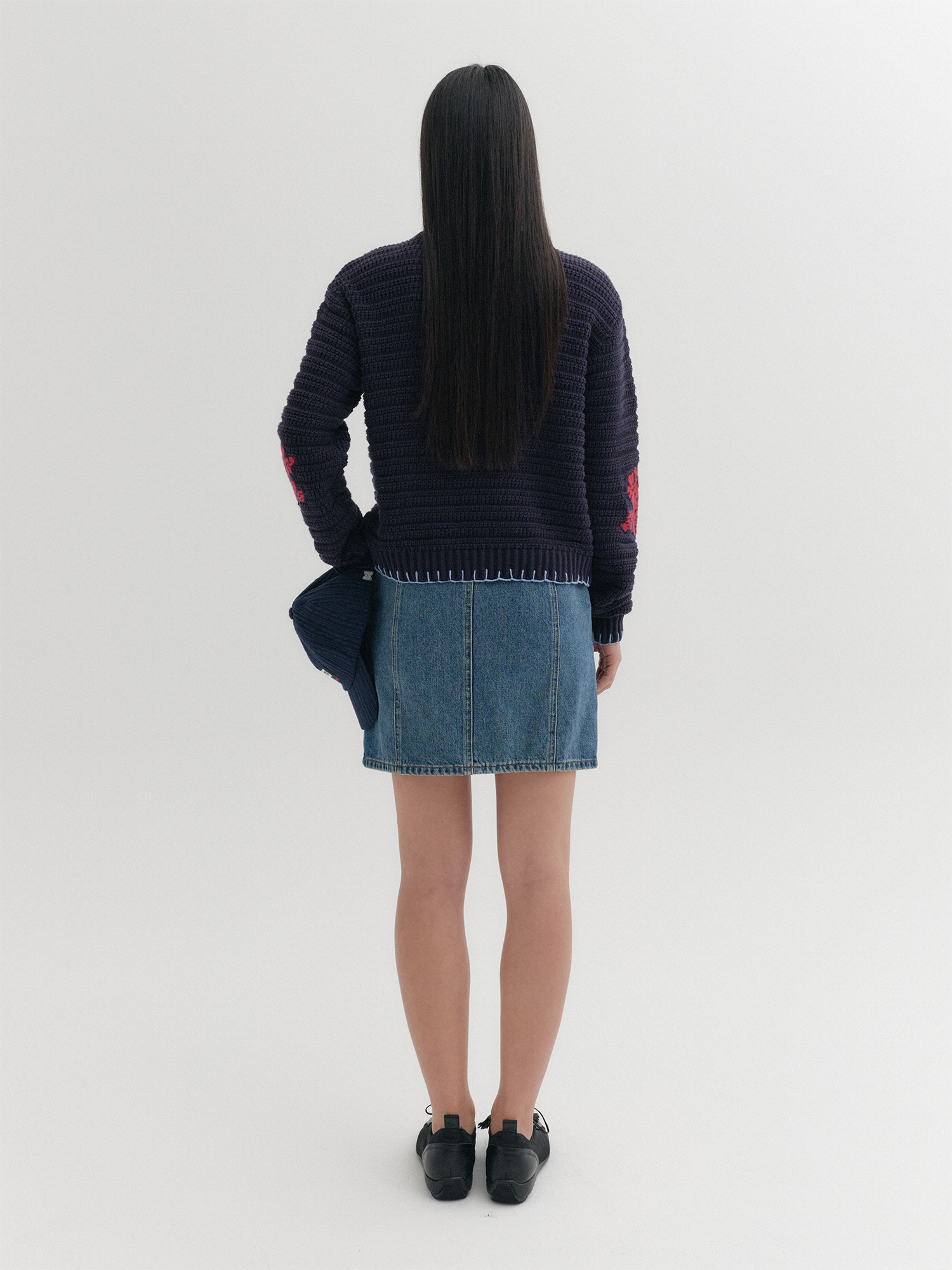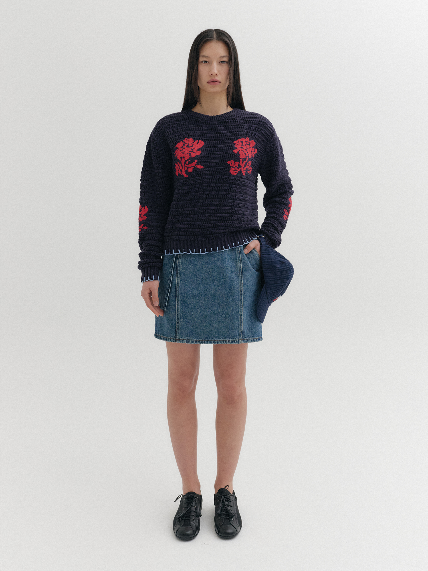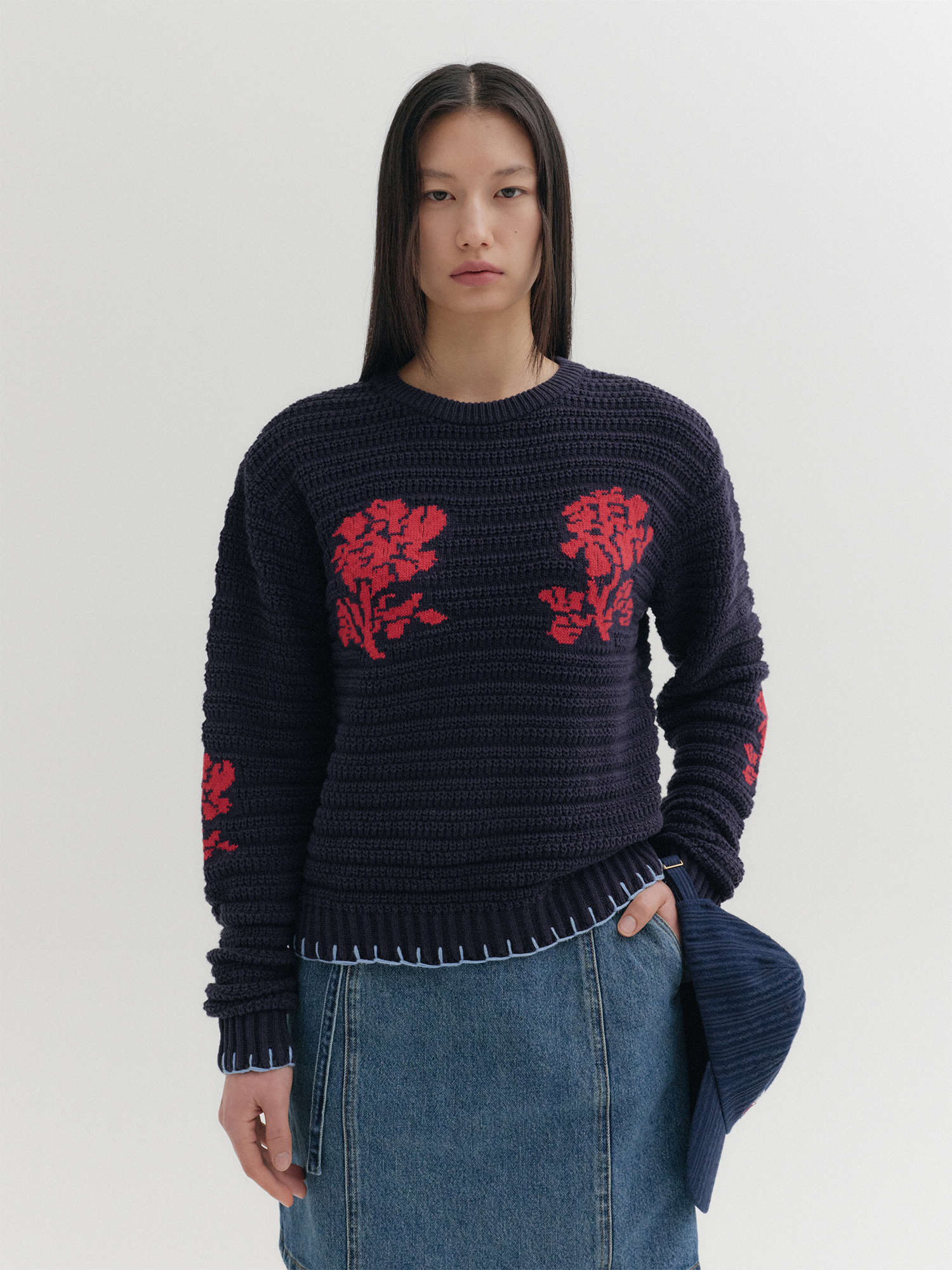 - 포켓 위 배색 자카드 패턴 디테일