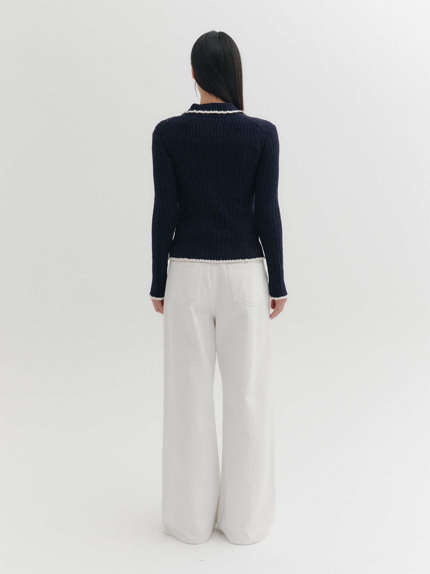 - 넥, 소매라인 배색 레이어드 포인트