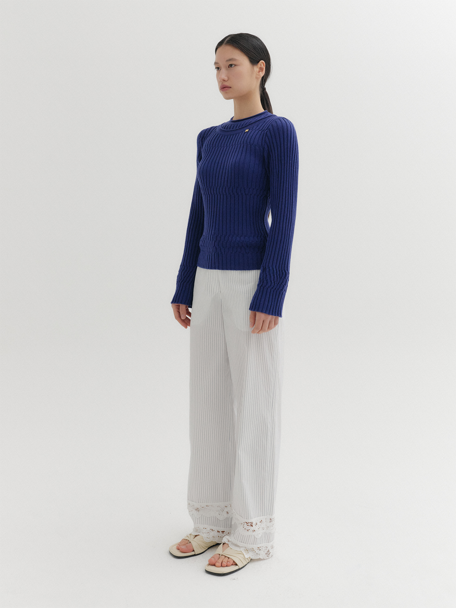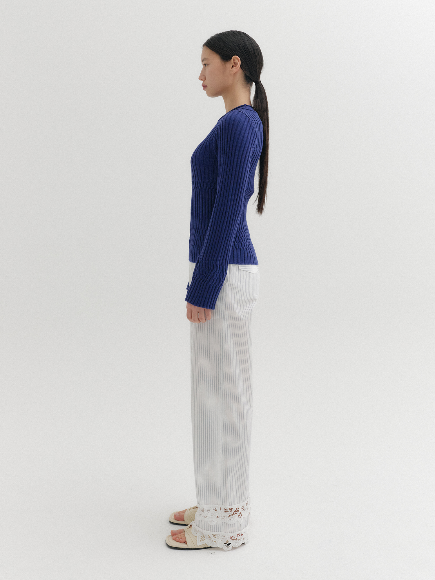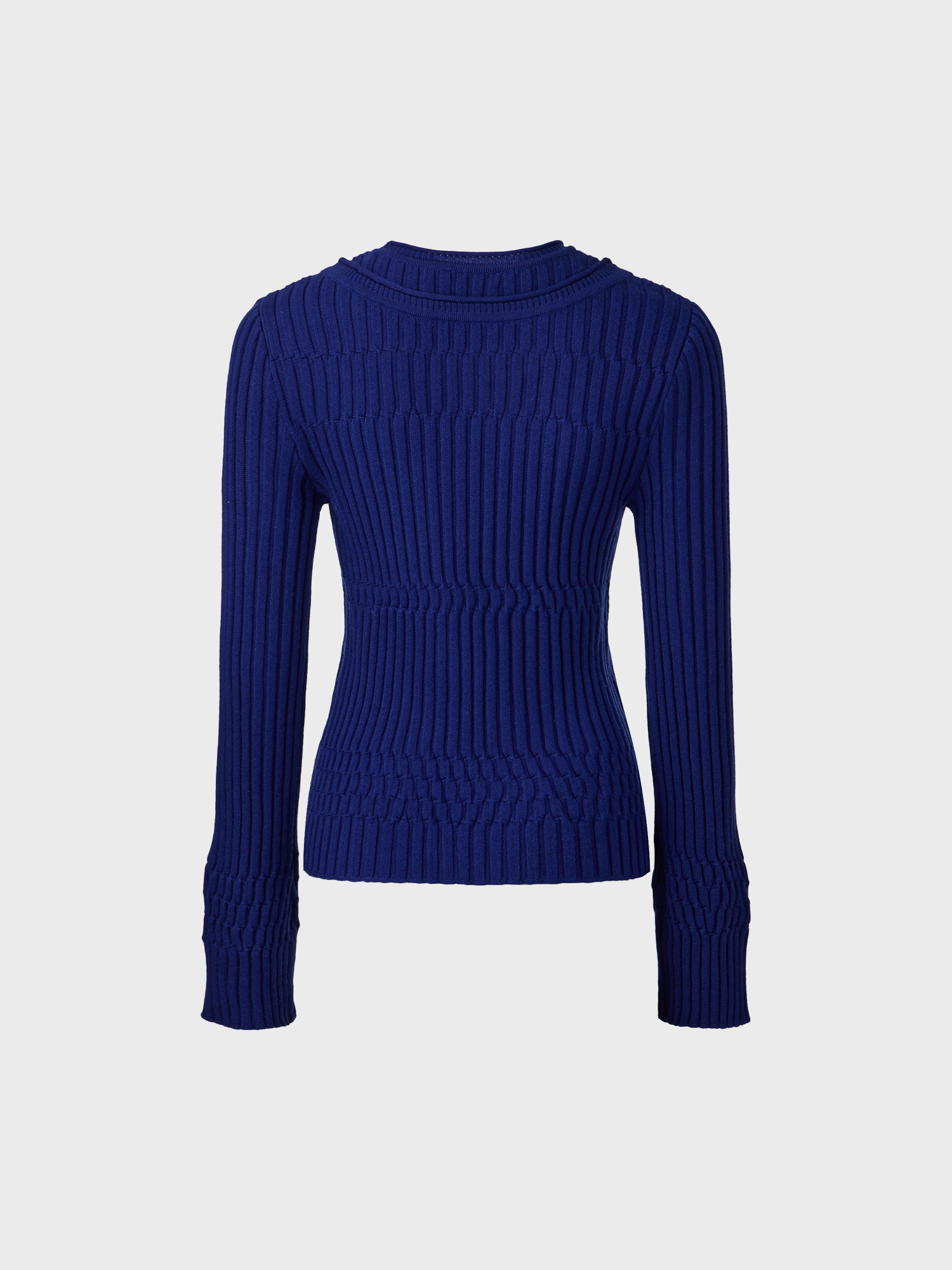 - 세로 골지 조직으로 슬림한 실루엣 연출