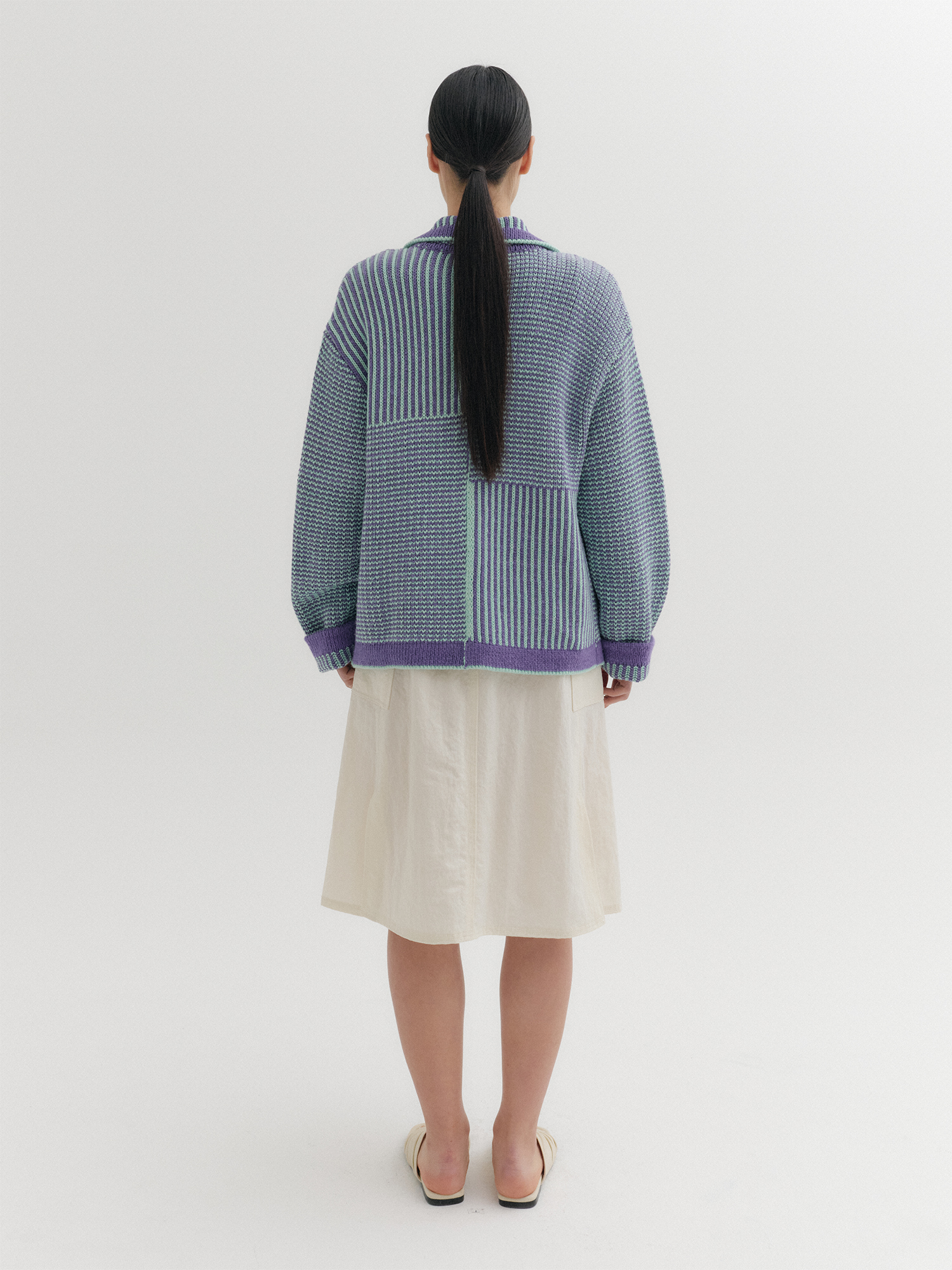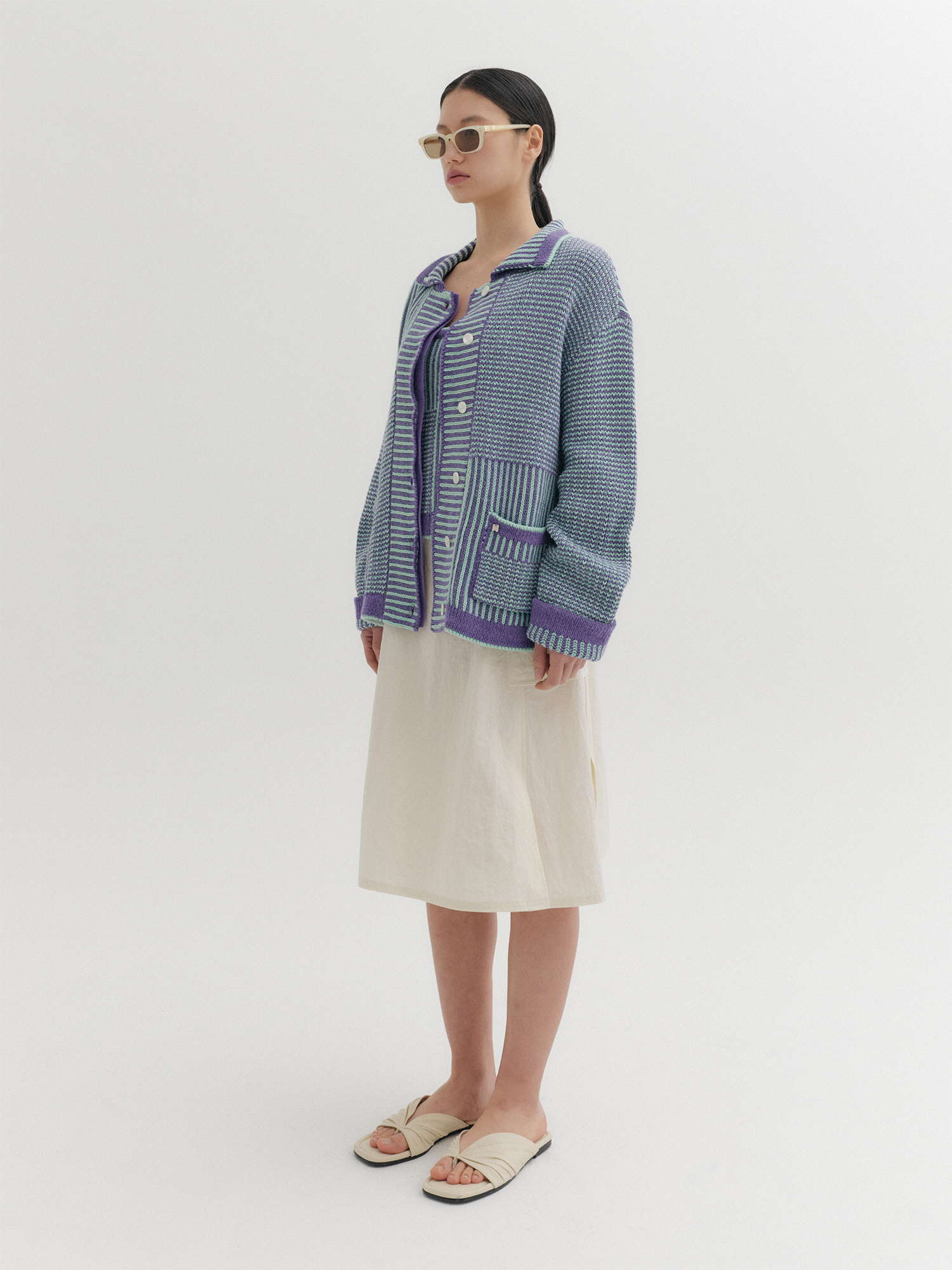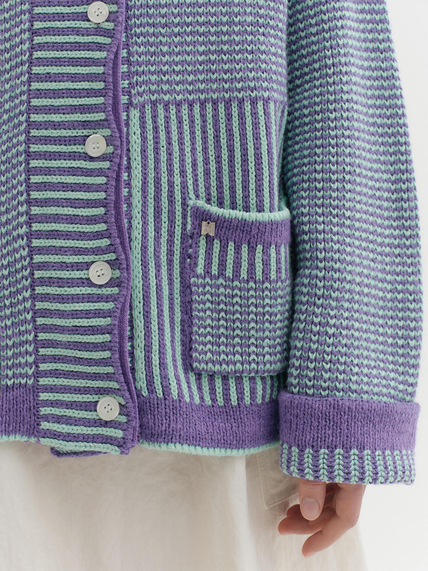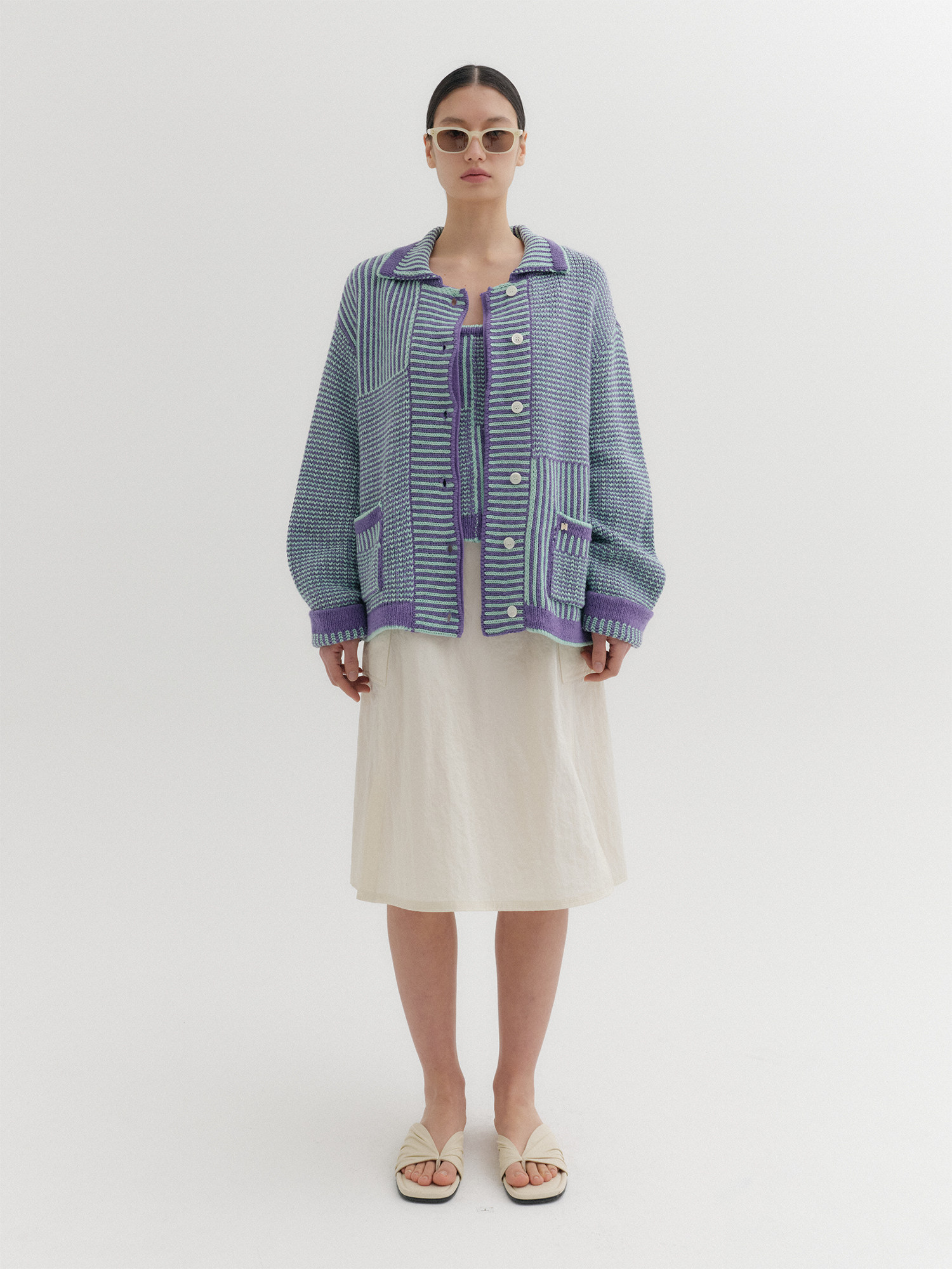텍스처 스트라이프 니트 가디건 - 바이올렛