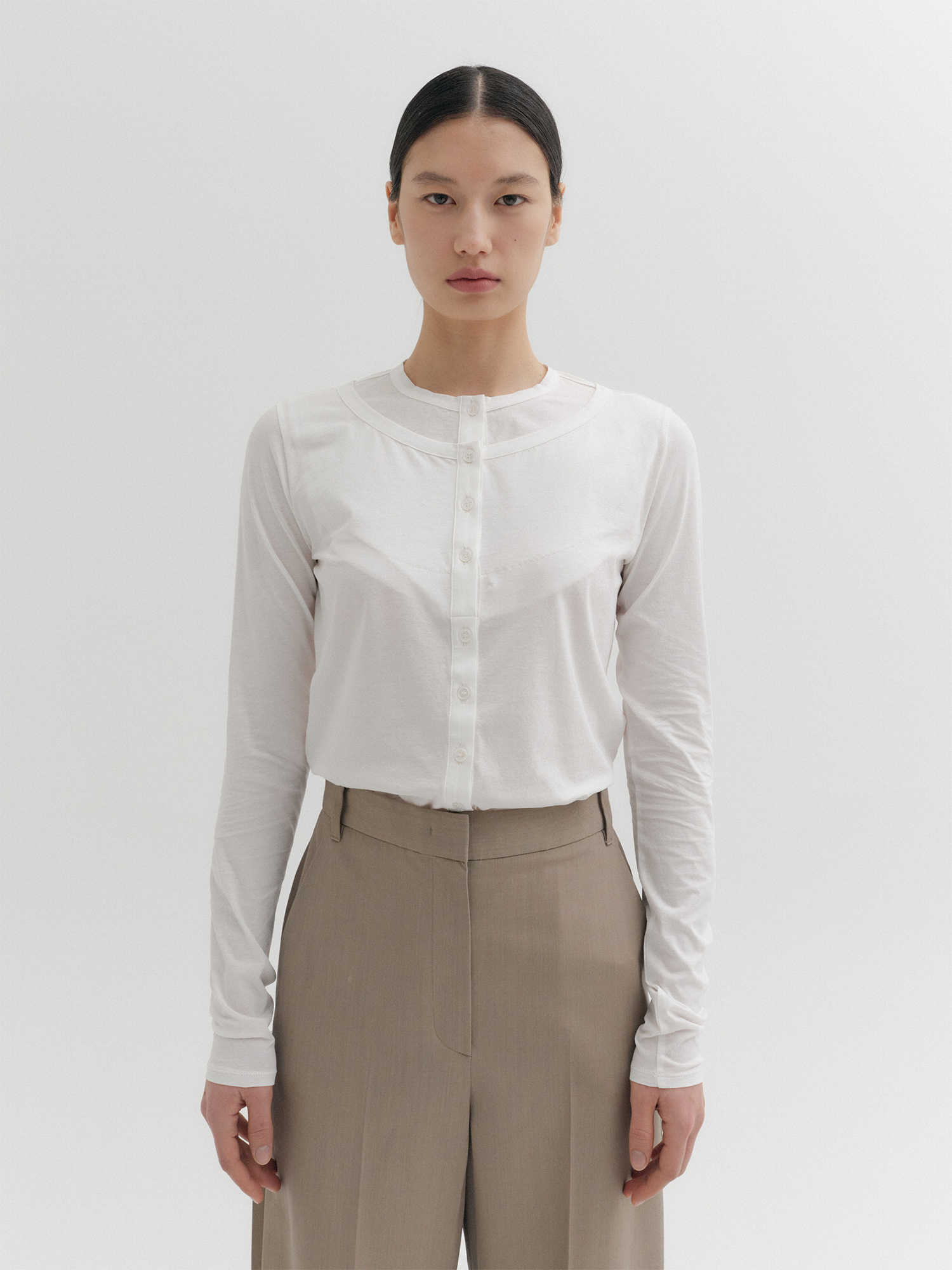 - 버튼 레이어드 티셔츠