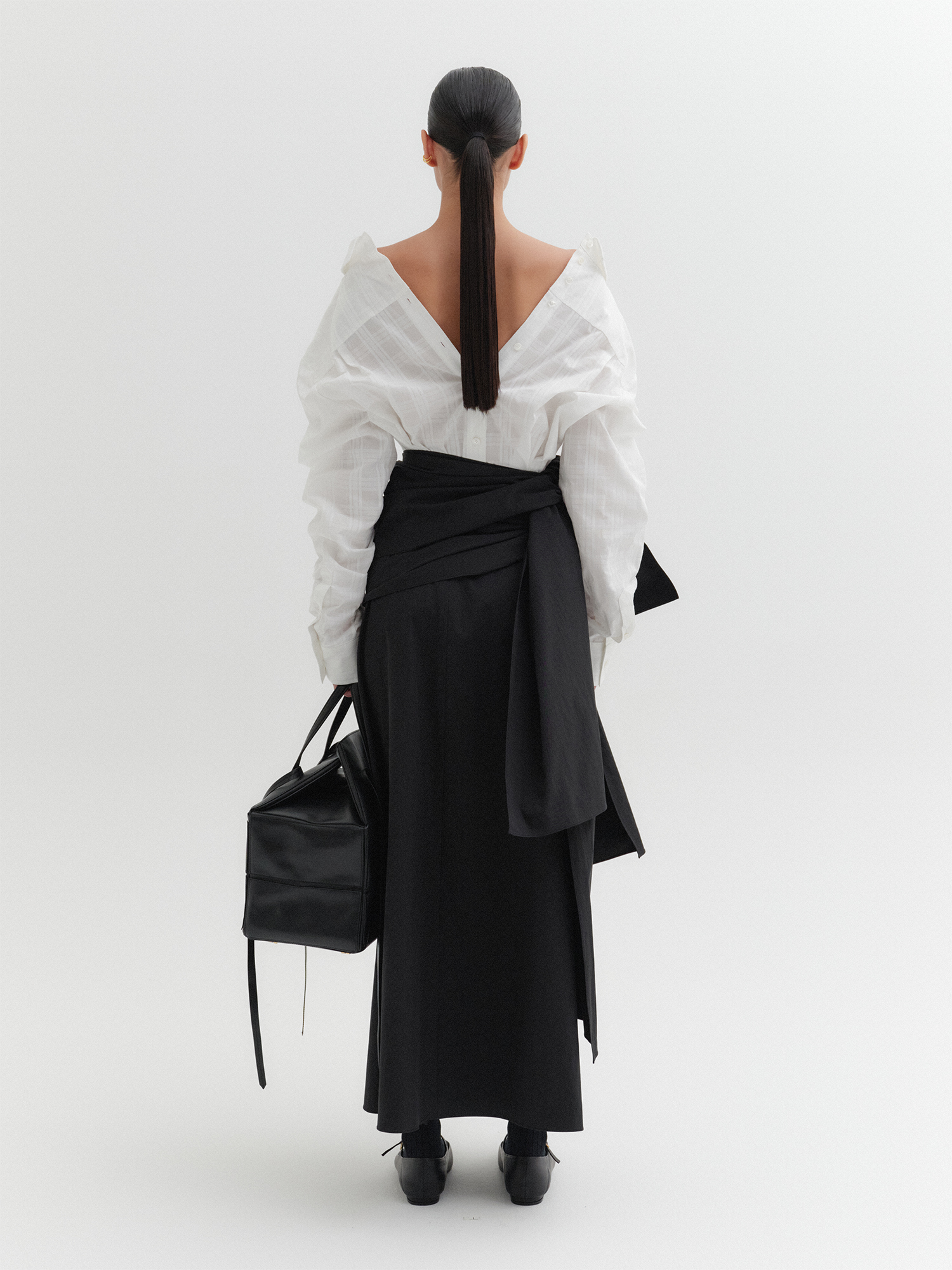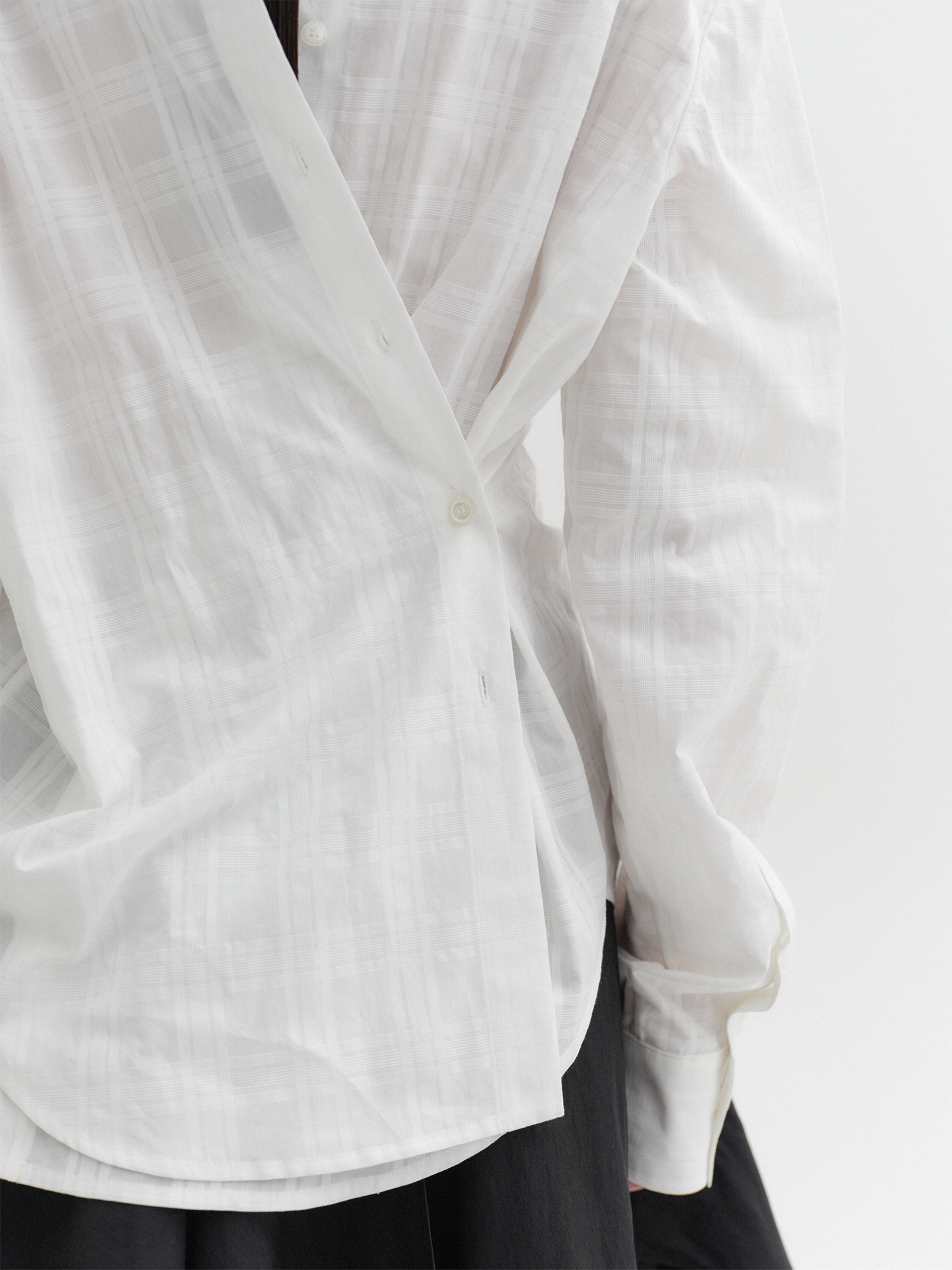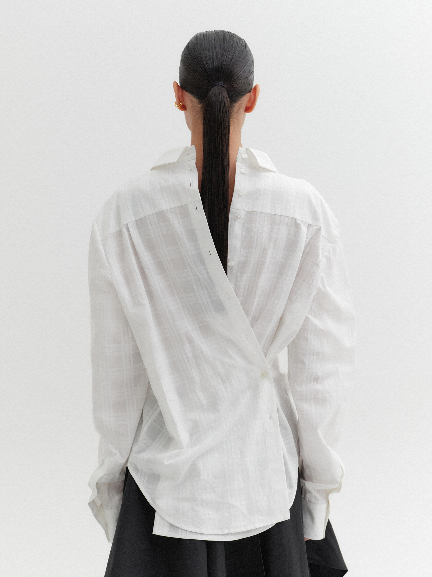 - 뒷 부분 버튼 디테일로 실루엣 조절