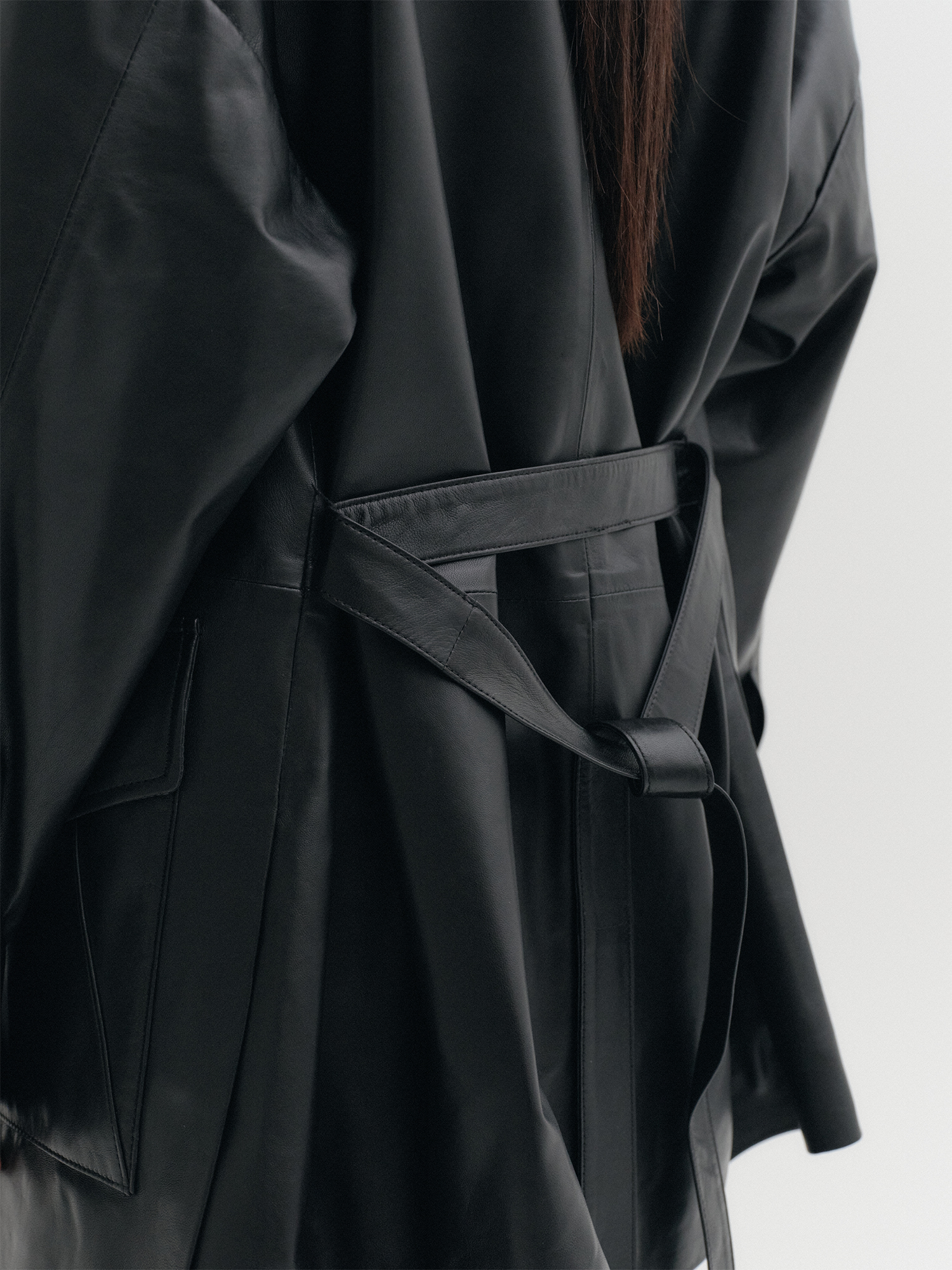 - 벨트 여밈으로 자유로운 실루엣 연출