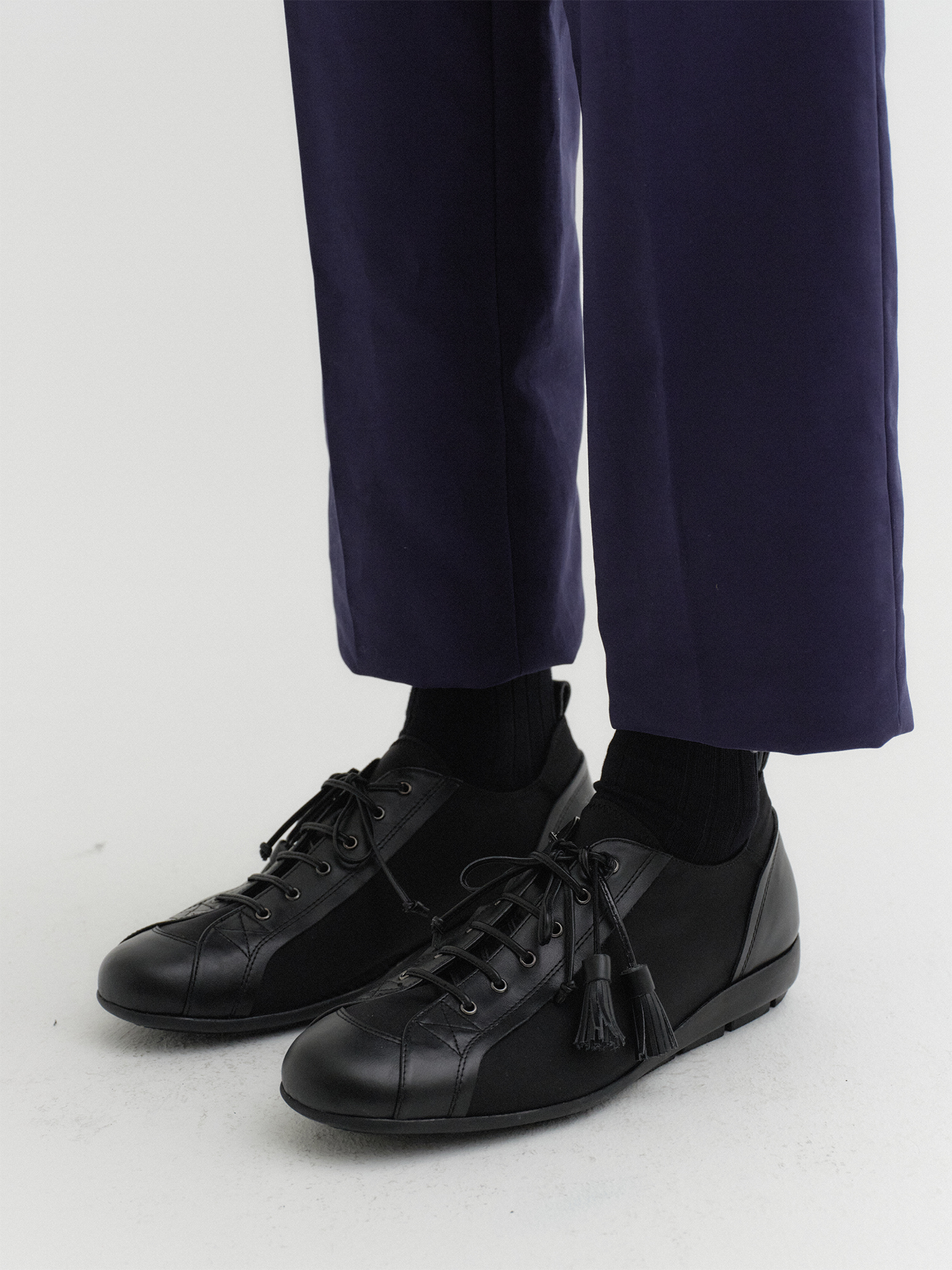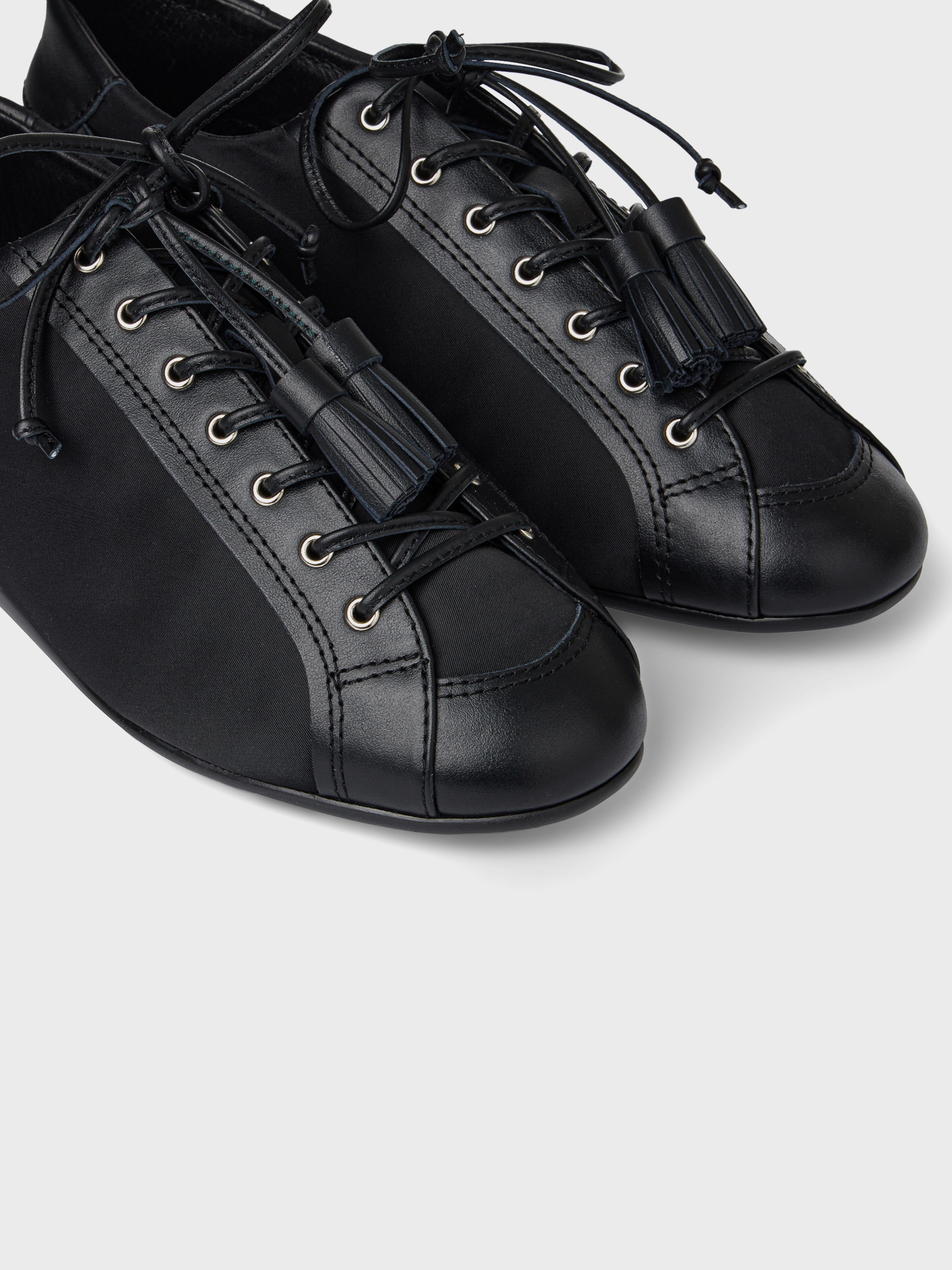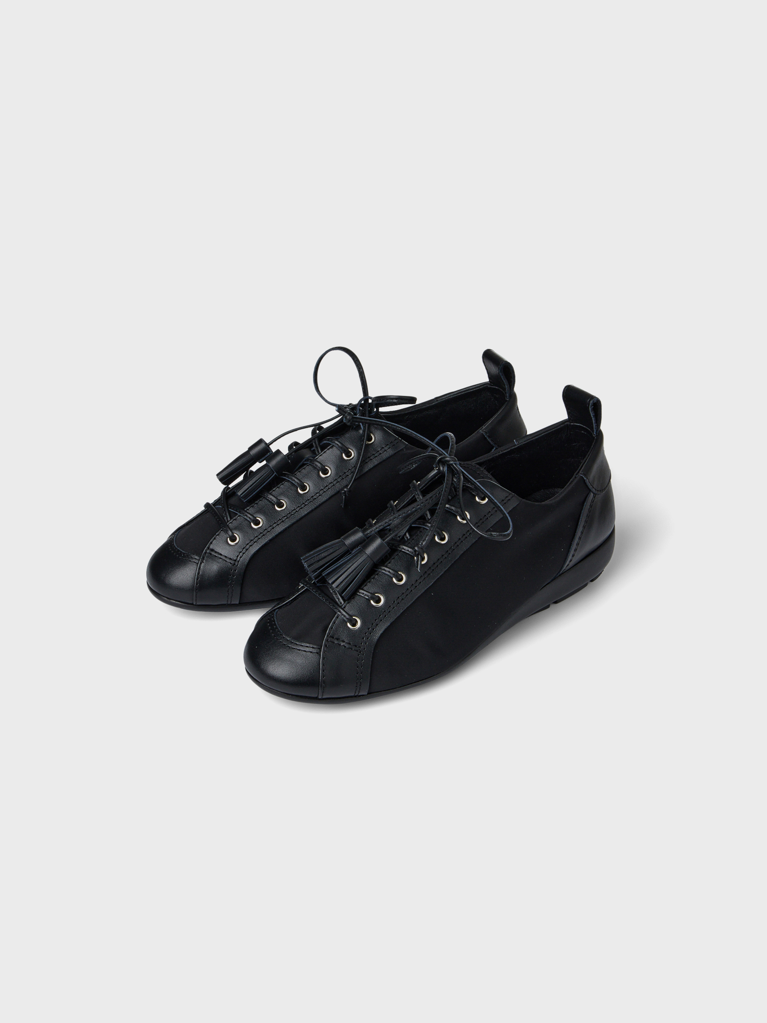 테슬 레이스업 플랫 - 블랙