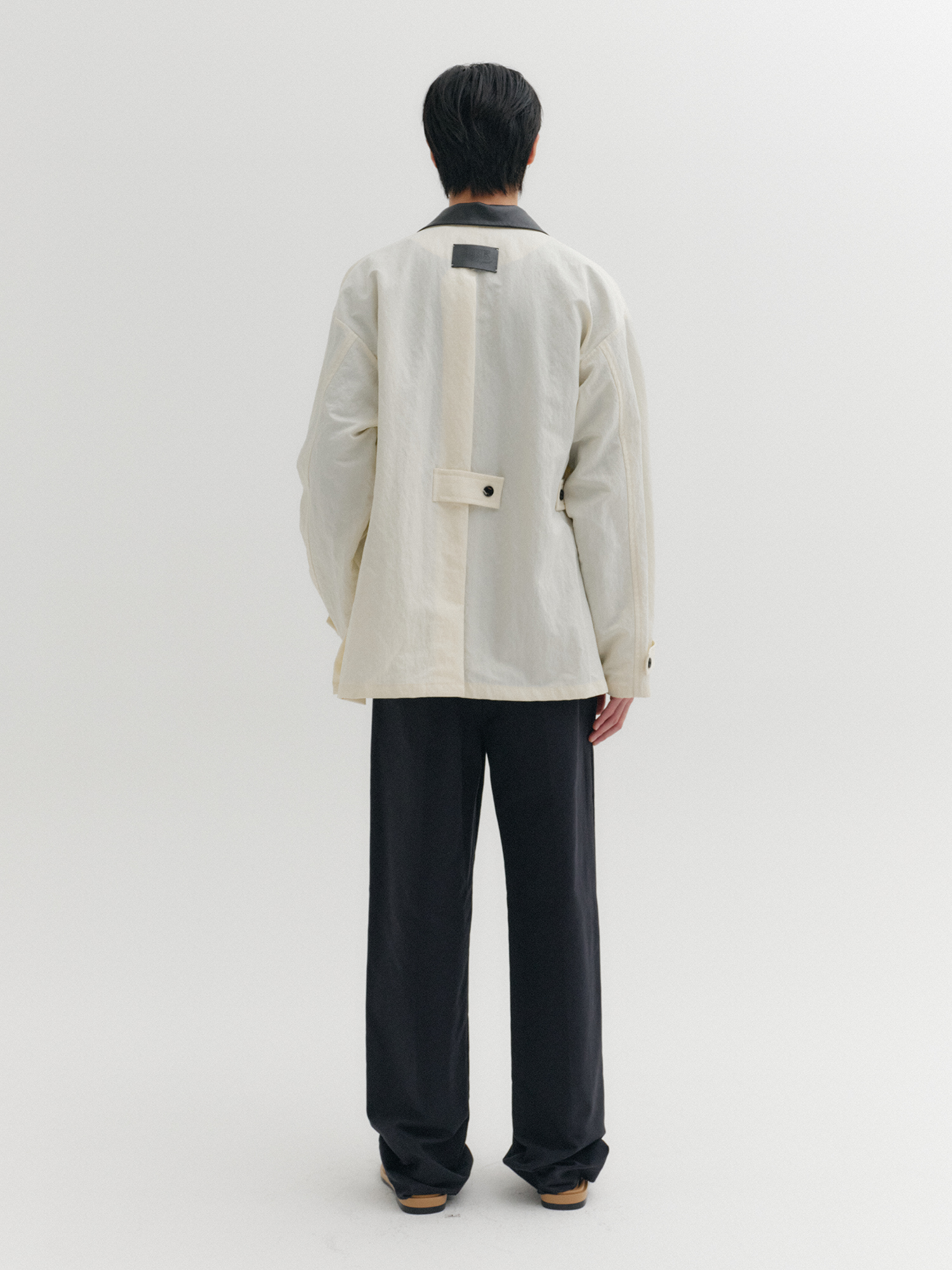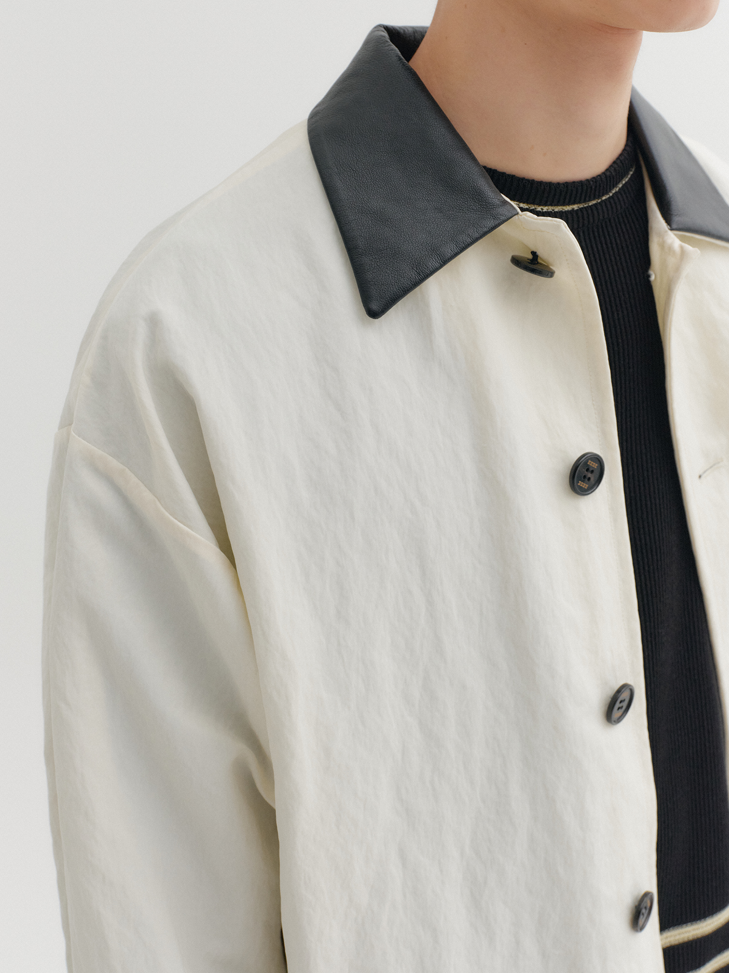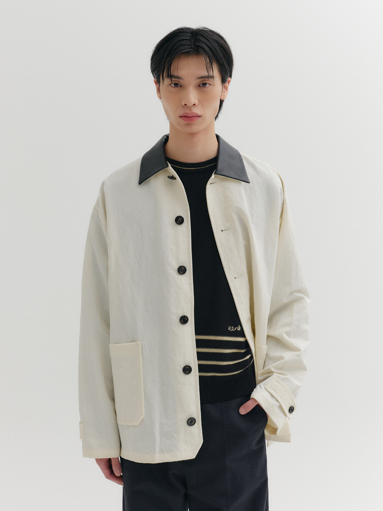 - 가죽 배색 카라 디테일