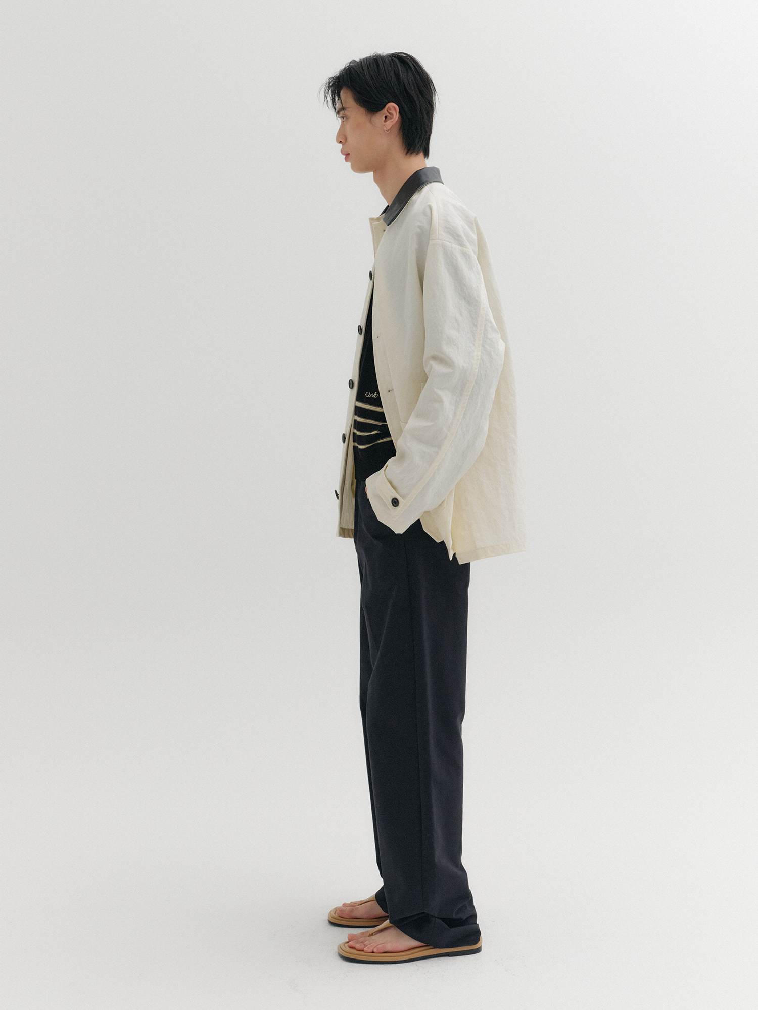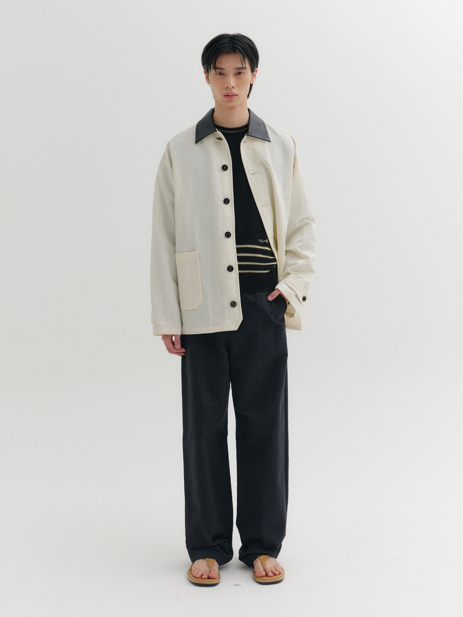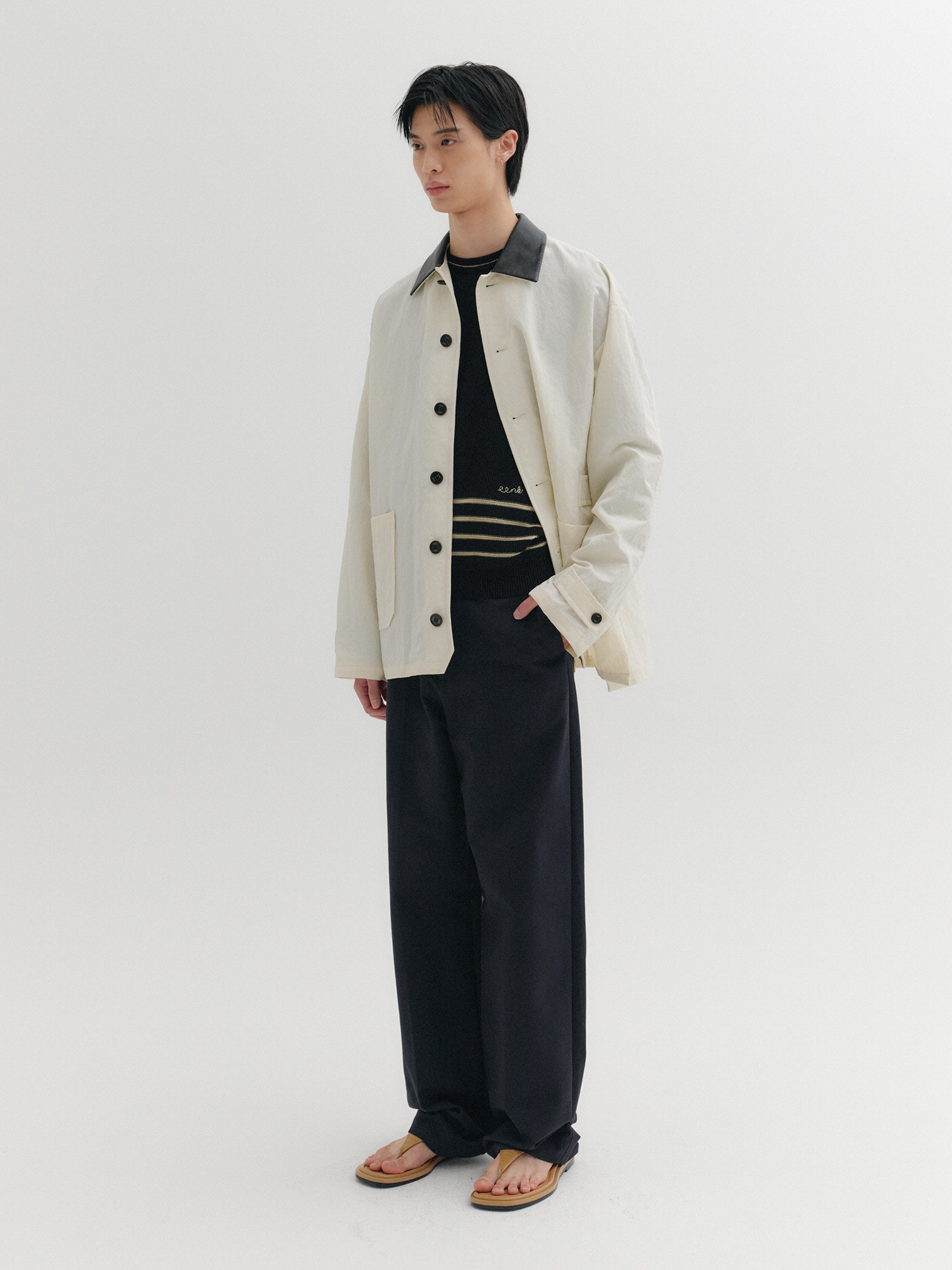 - 가죽 배색 카라 디테일