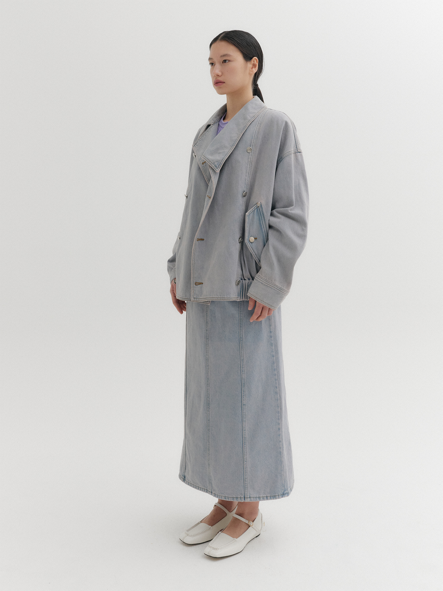 - 언발란스 카라 데님 자켓