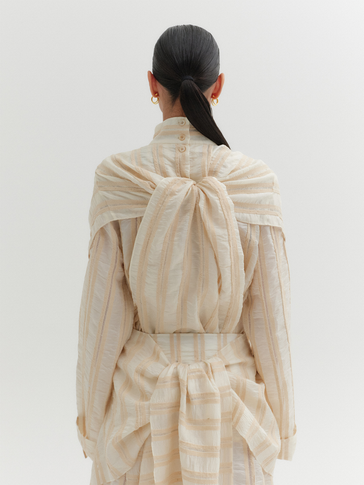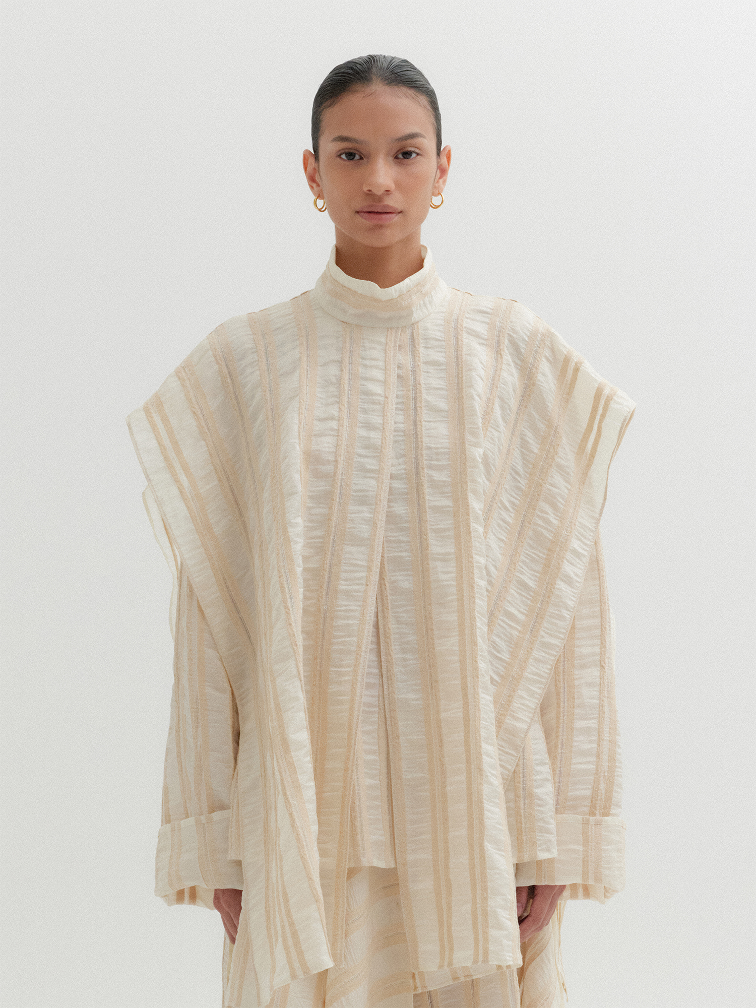 - 루즈한 핏의 하이넥 블라우스