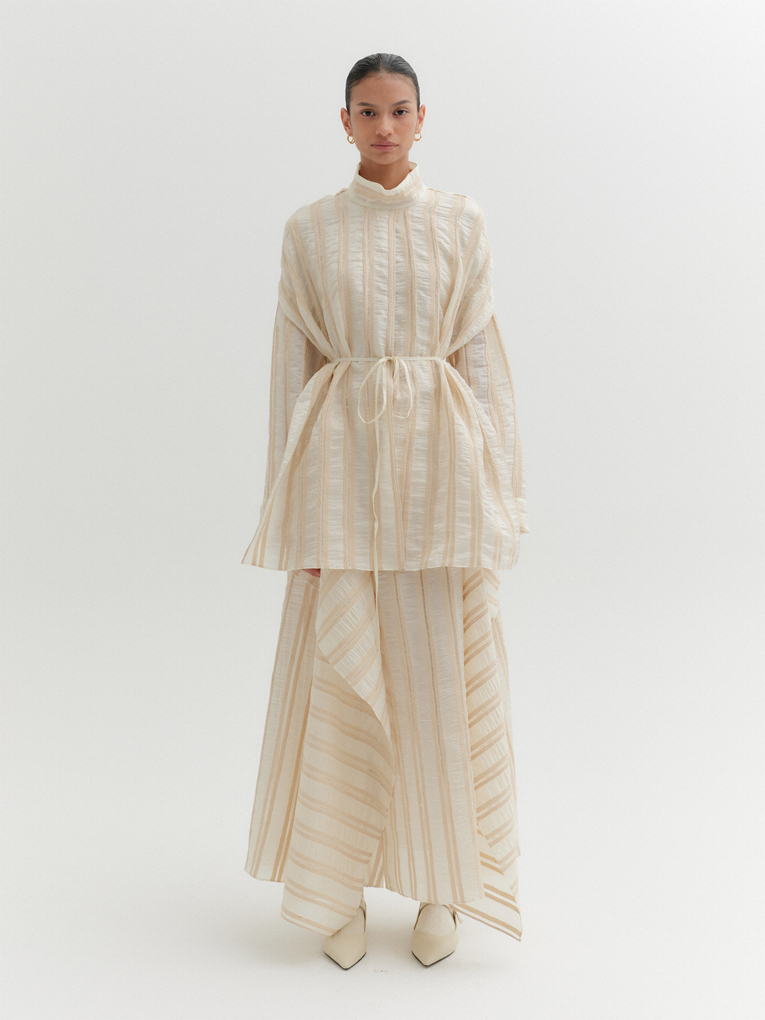 - 웨이스트 스트랩으로 실루엣 조절 가능