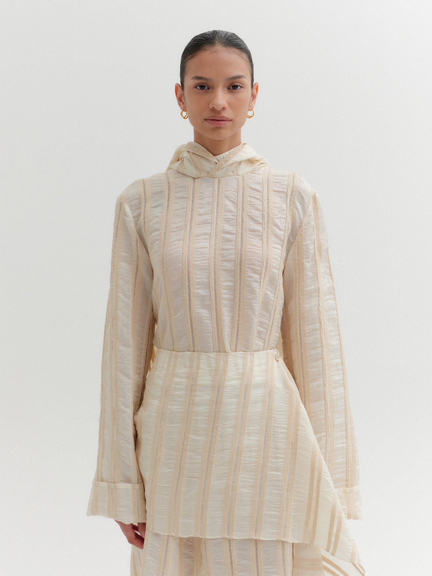 롱 슬리브 레이어드 블라우스 - 베이지NEW