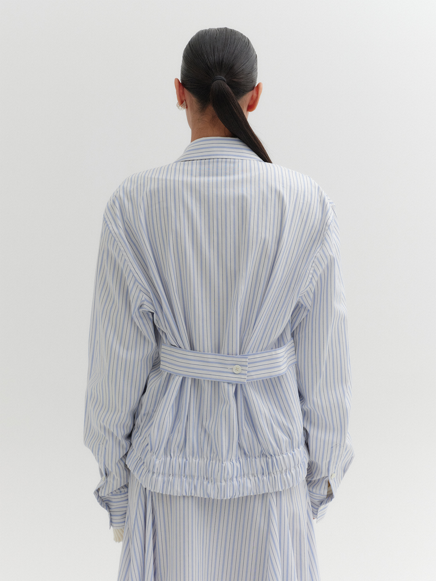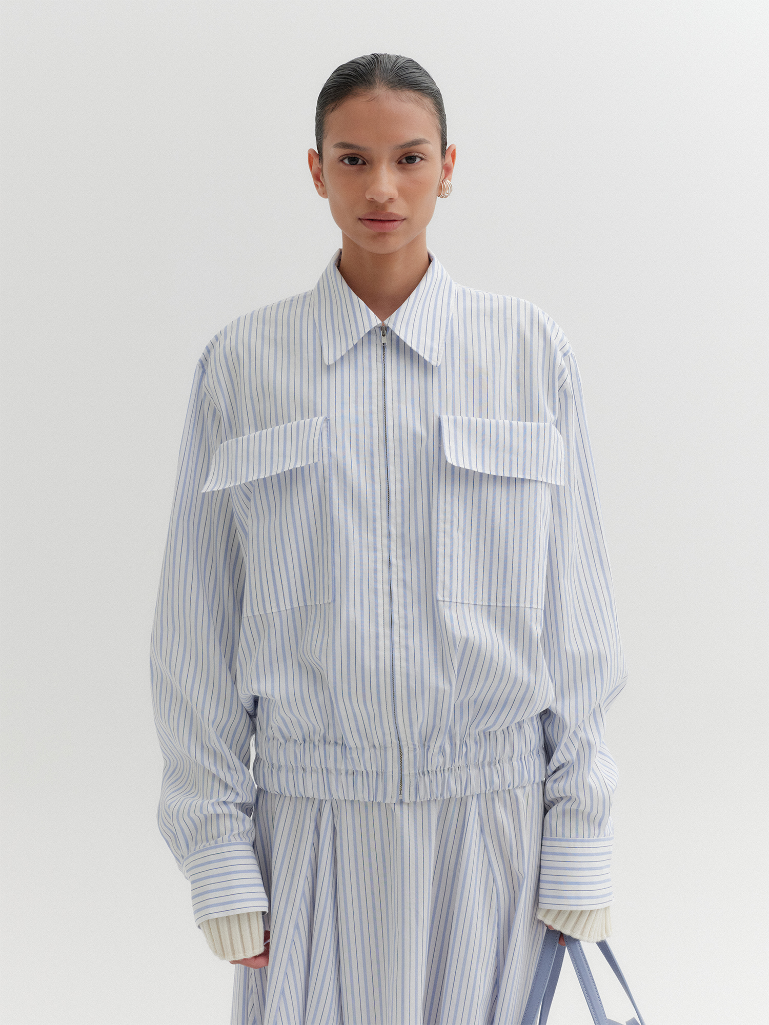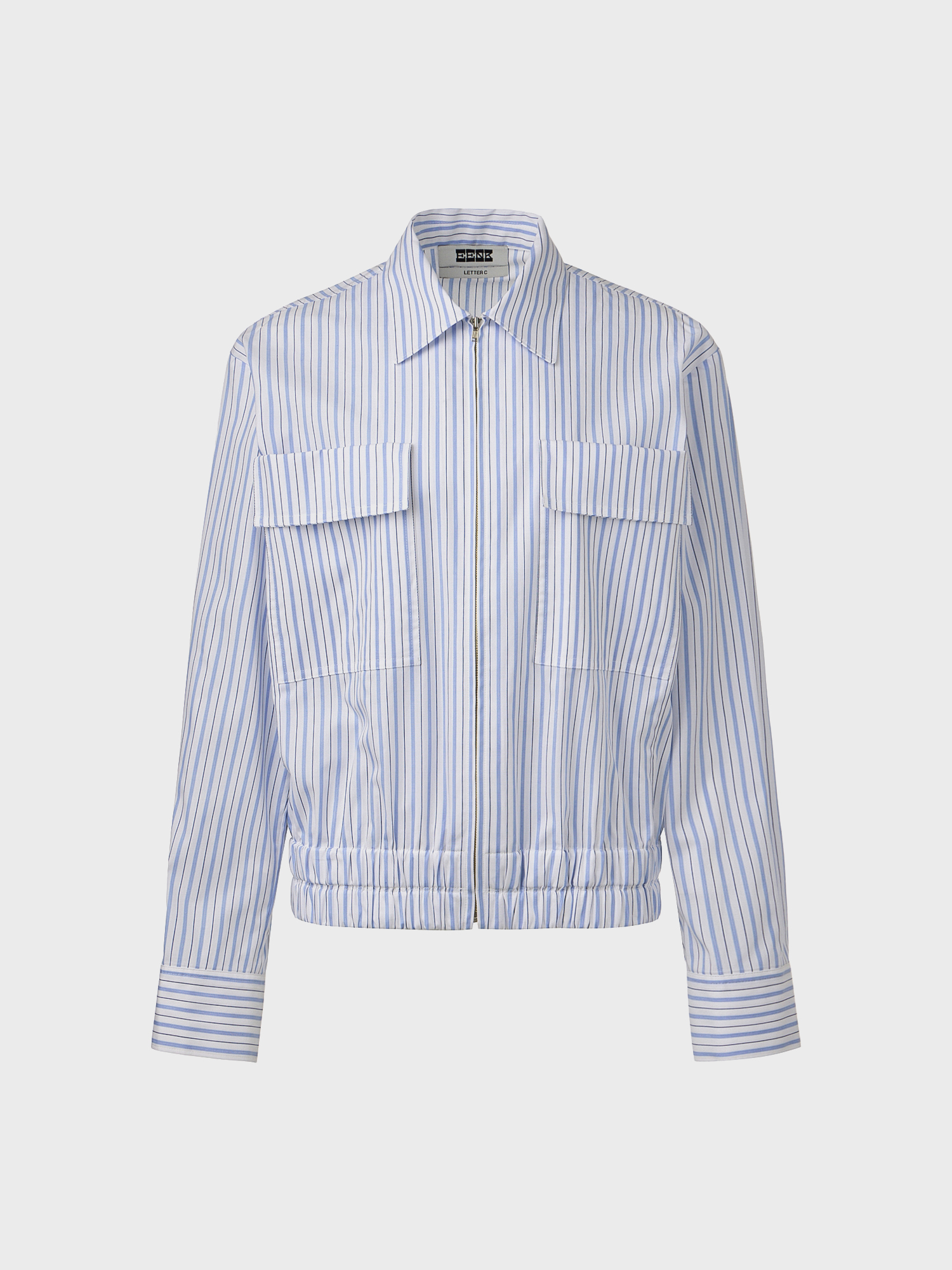- 스트라이프 패턴의 봄버 자켓