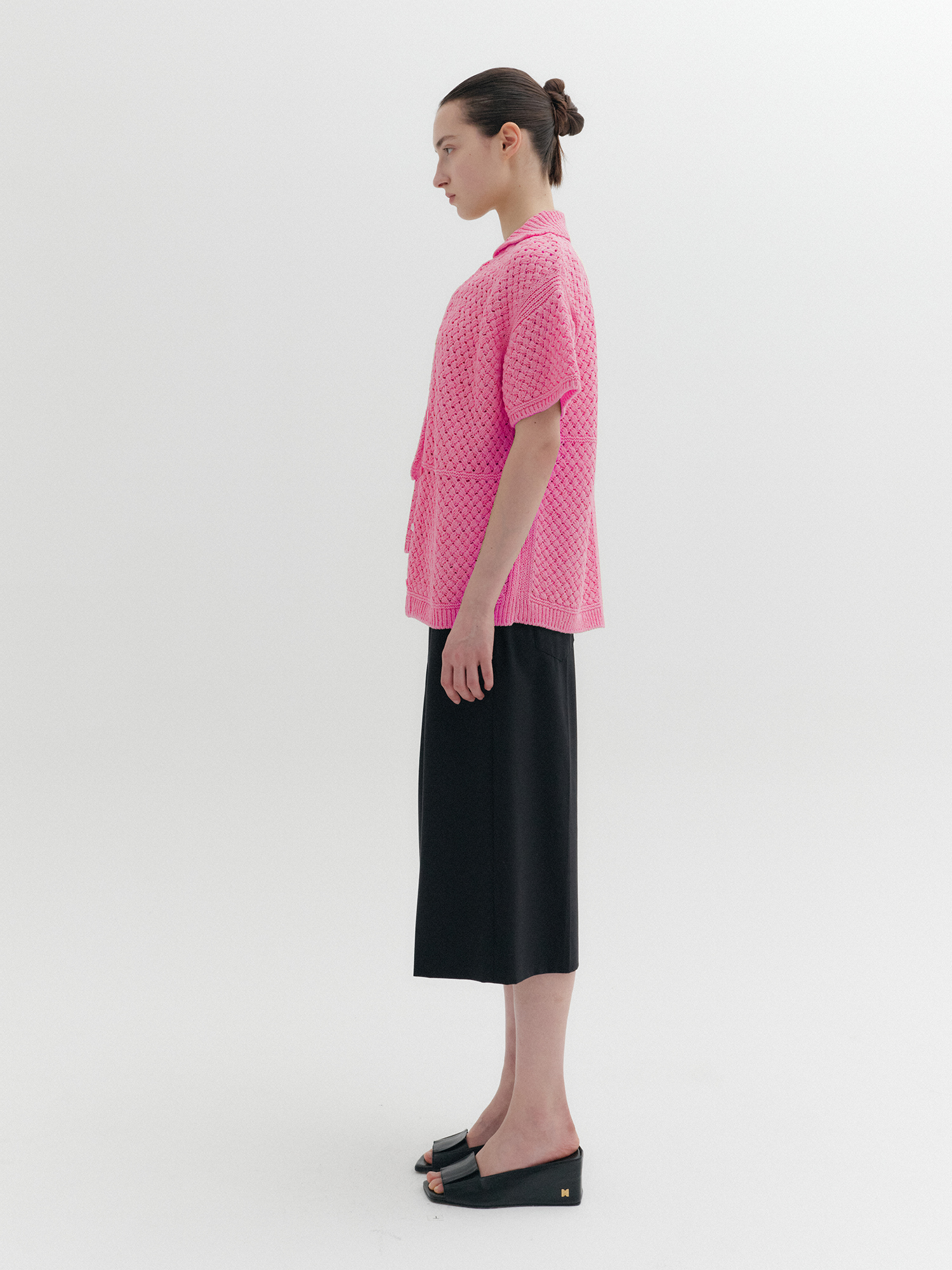 - 섬세한 짜임의 하프 슬리브 니트 가디건