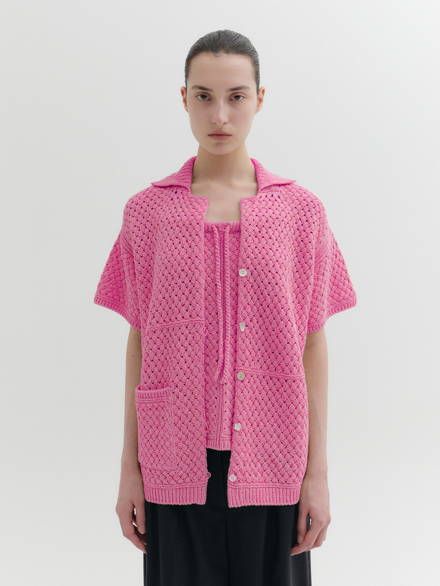 크로셰 니트 가디건 - 핑크NEW