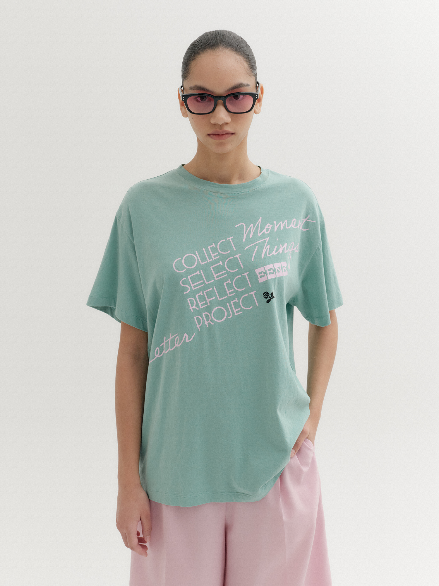 레터링 숏 슬리브 티셔츠 - 민트NEW