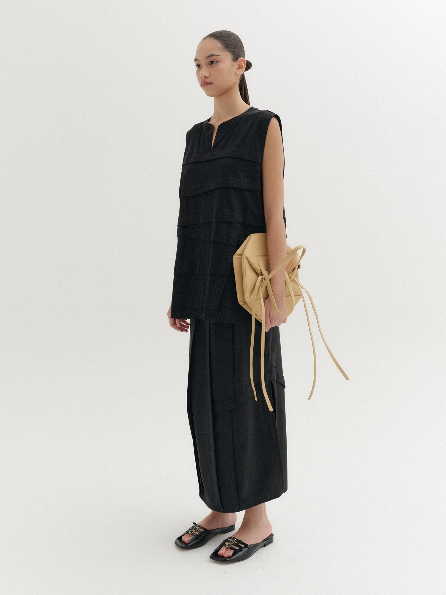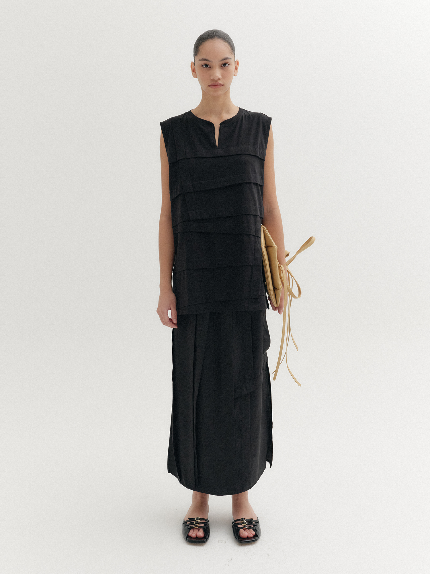 패널 디테일 슬리브리스 탑 - 블랙NEW