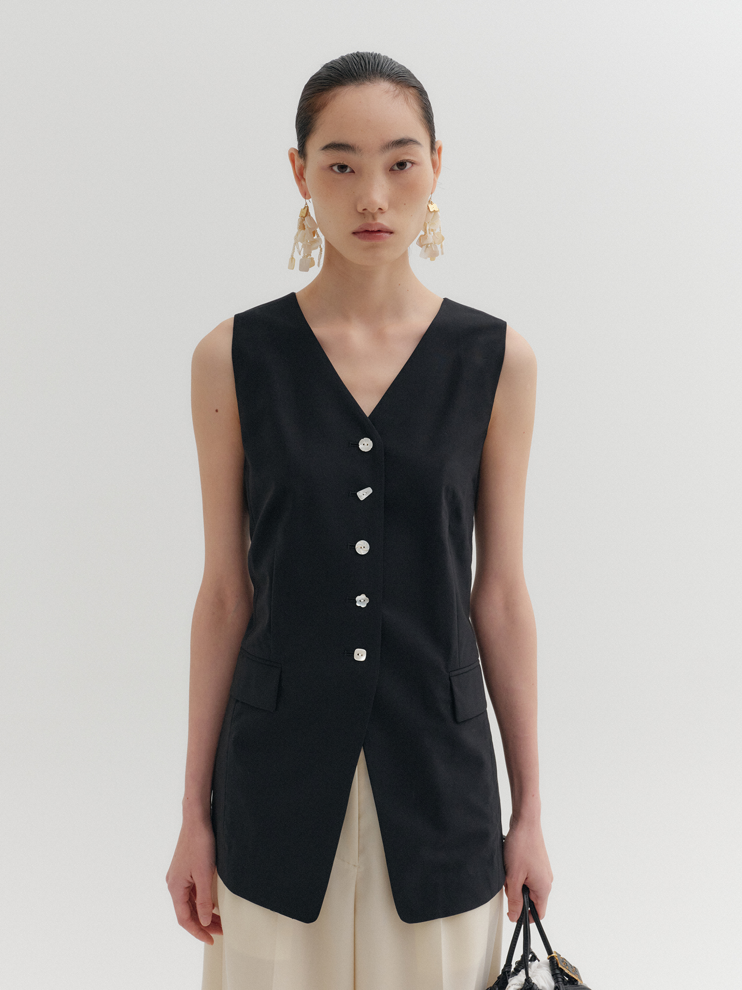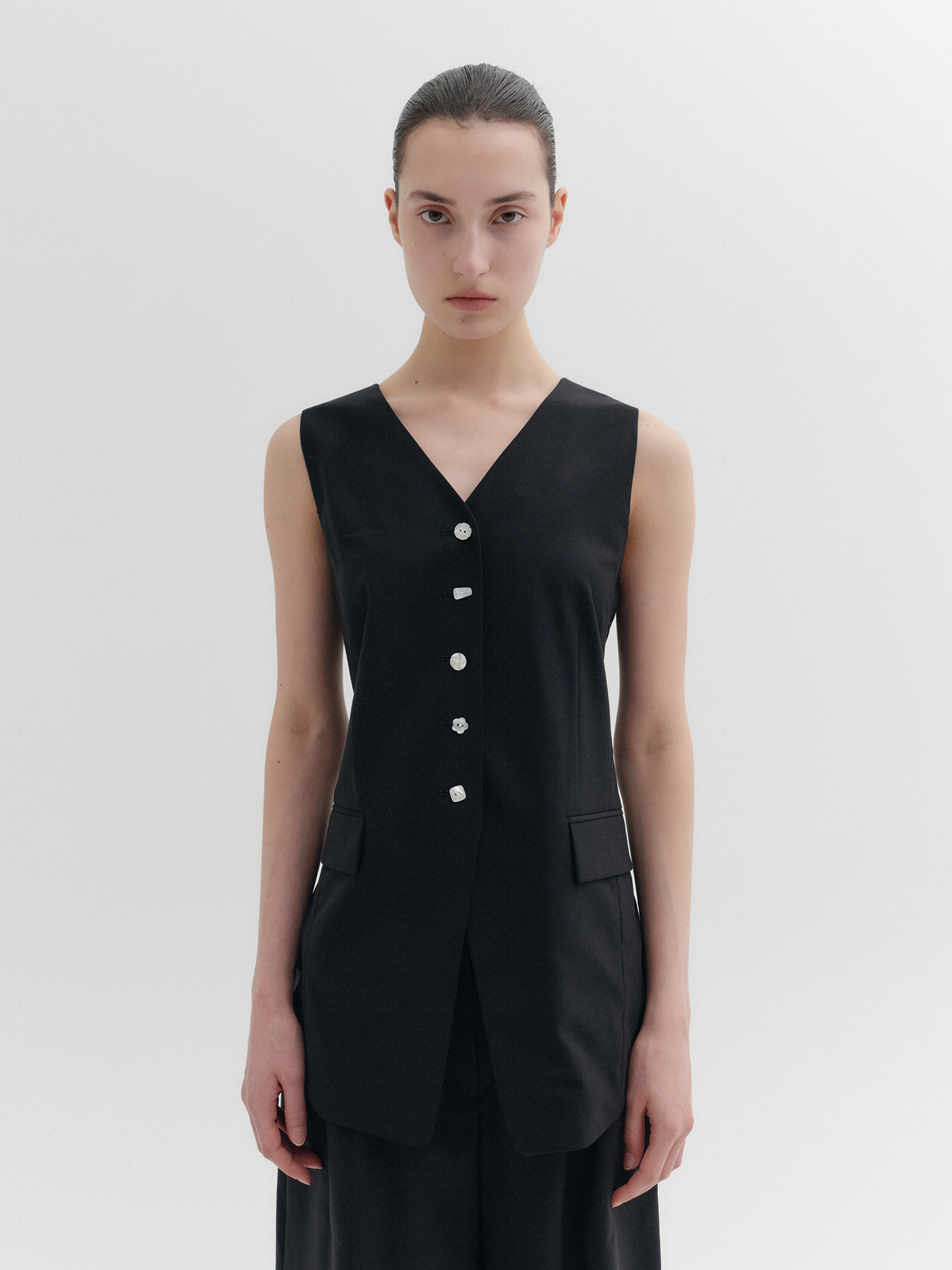- 브이넥 라인의 슬리브리스 테일러드 베스트