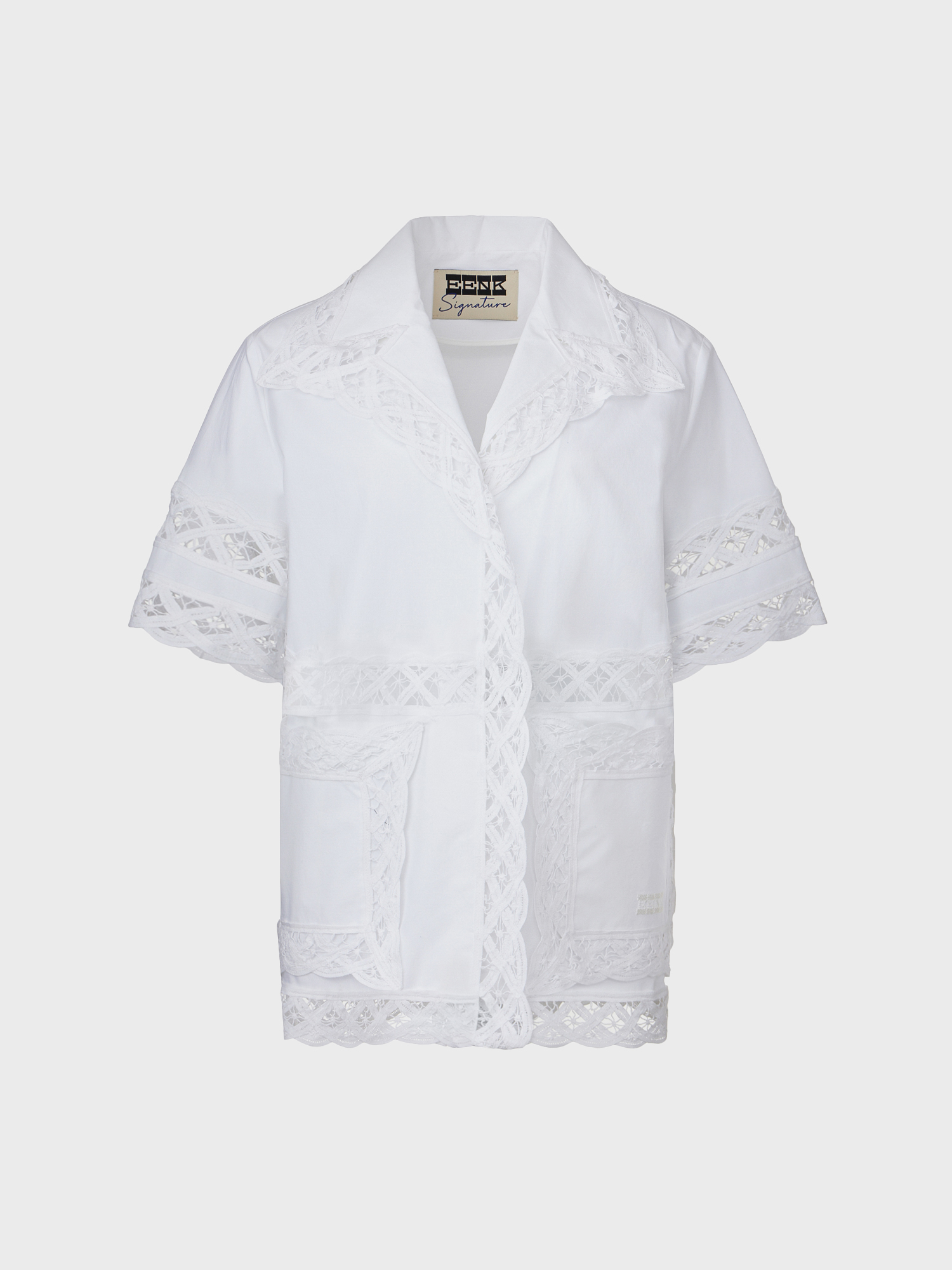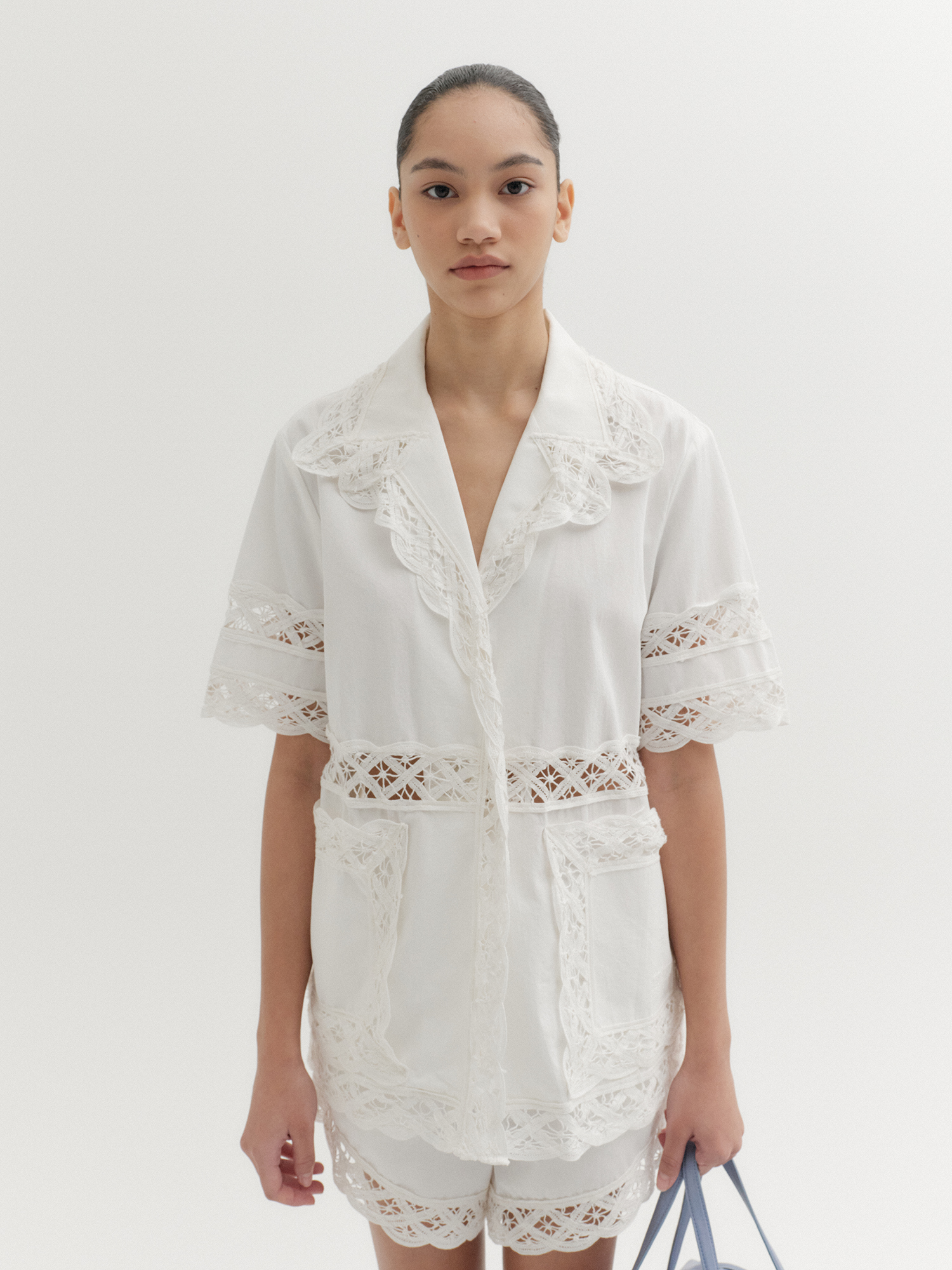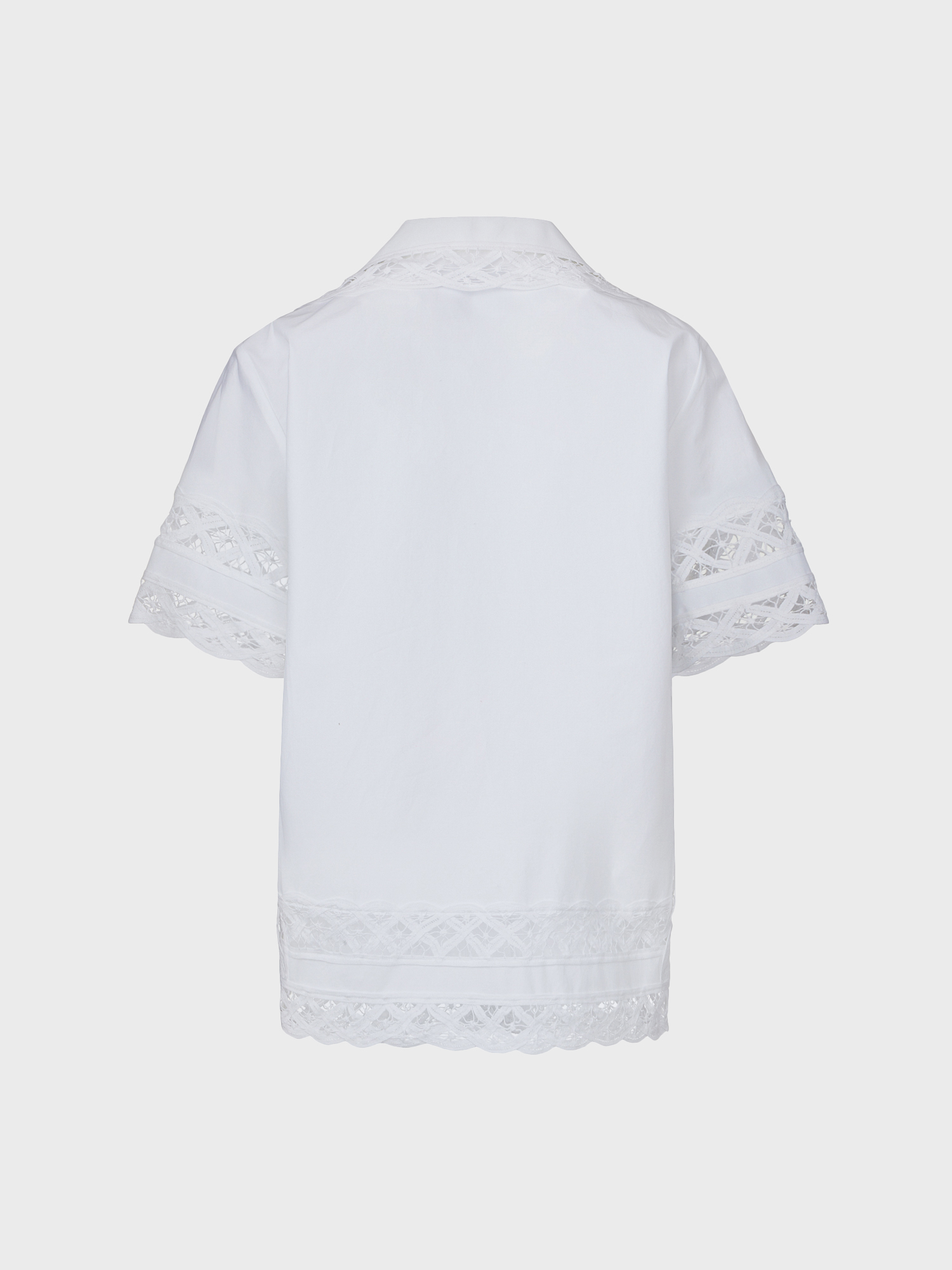 숏 슬리브 레이스 트림 셔츠 - 화이트NEW