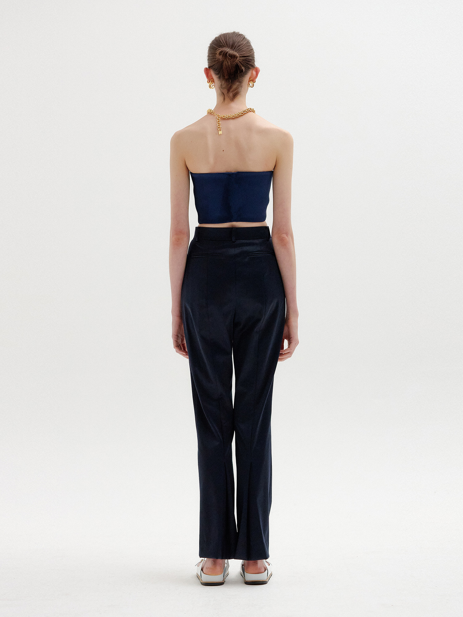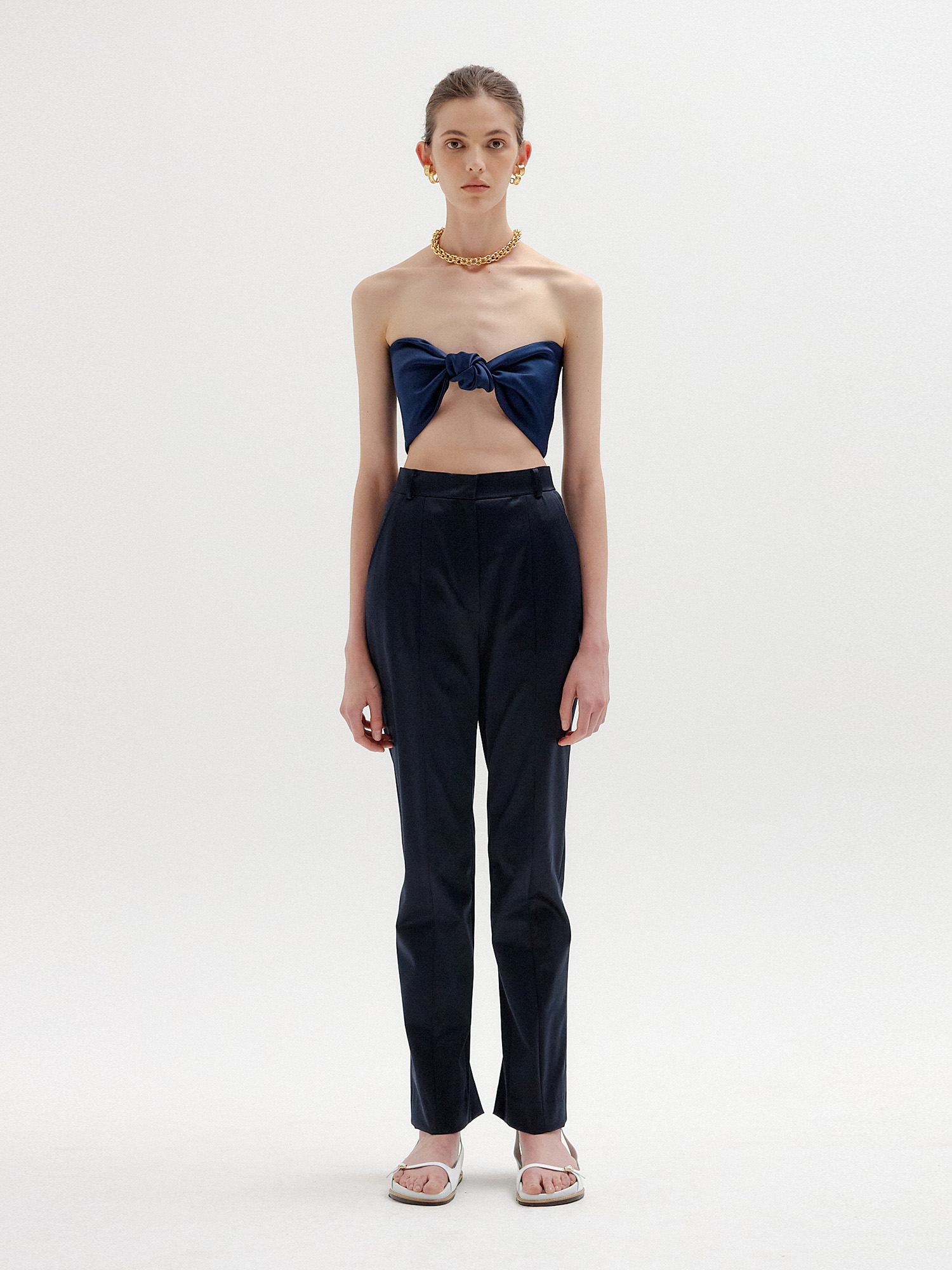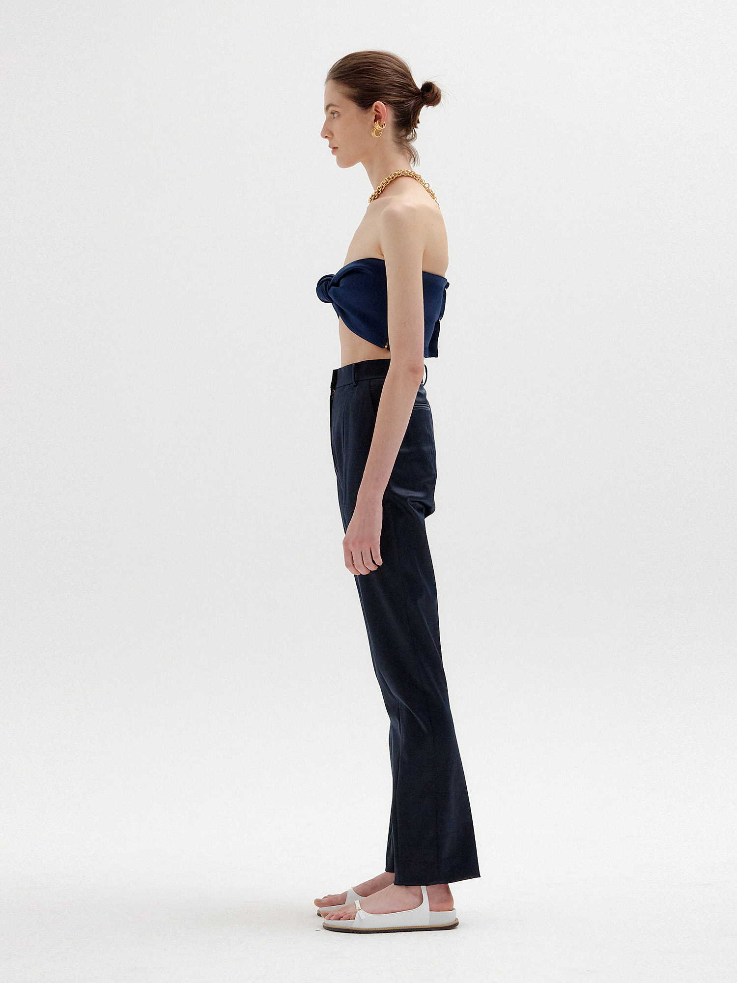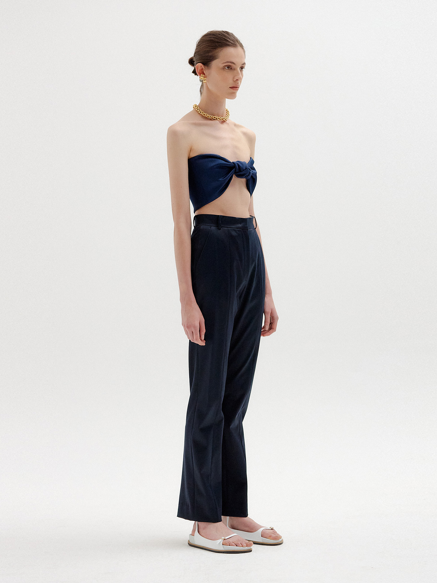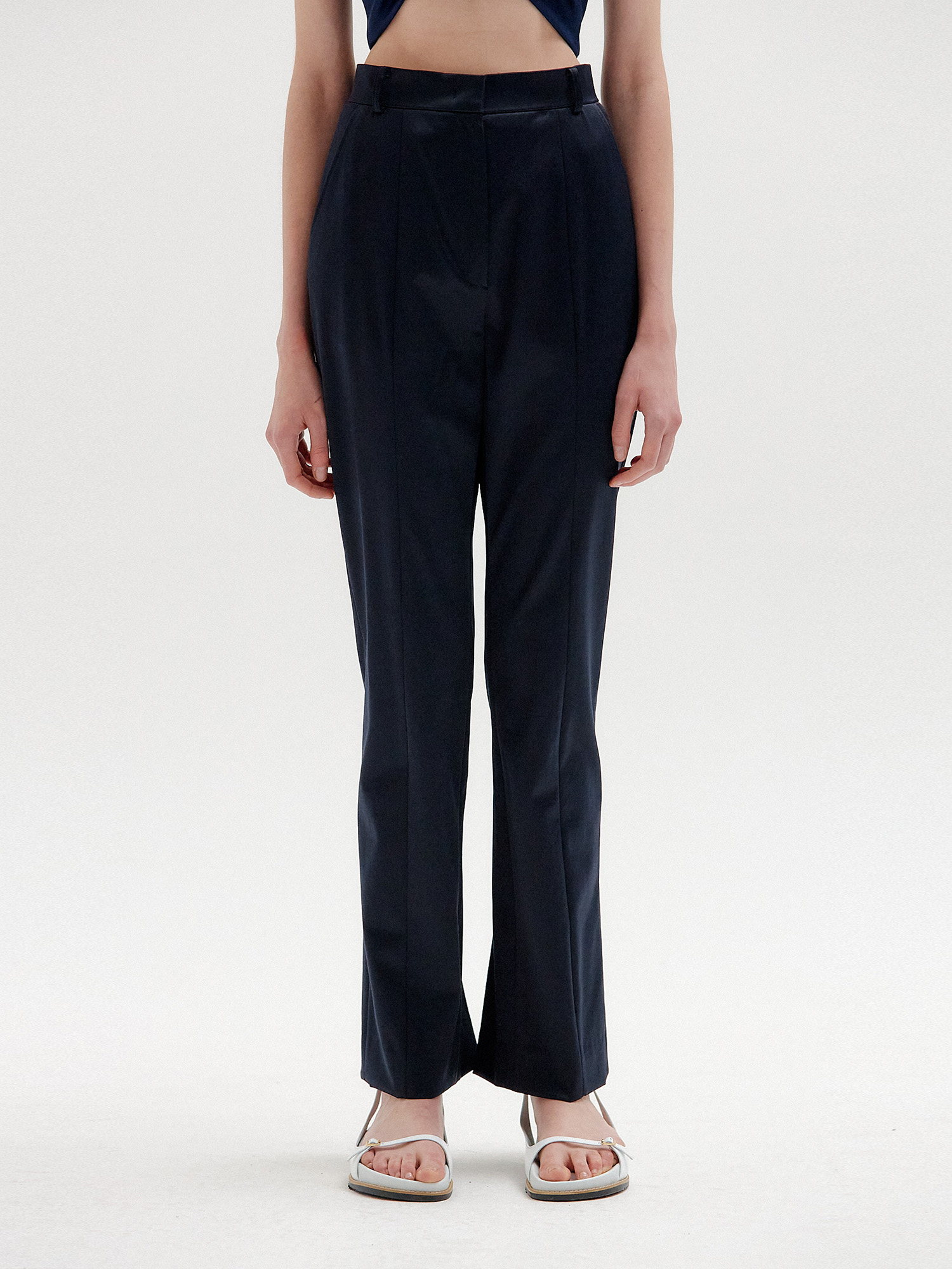 - 스트레이트 핏의 네이비 팬츠입니다.