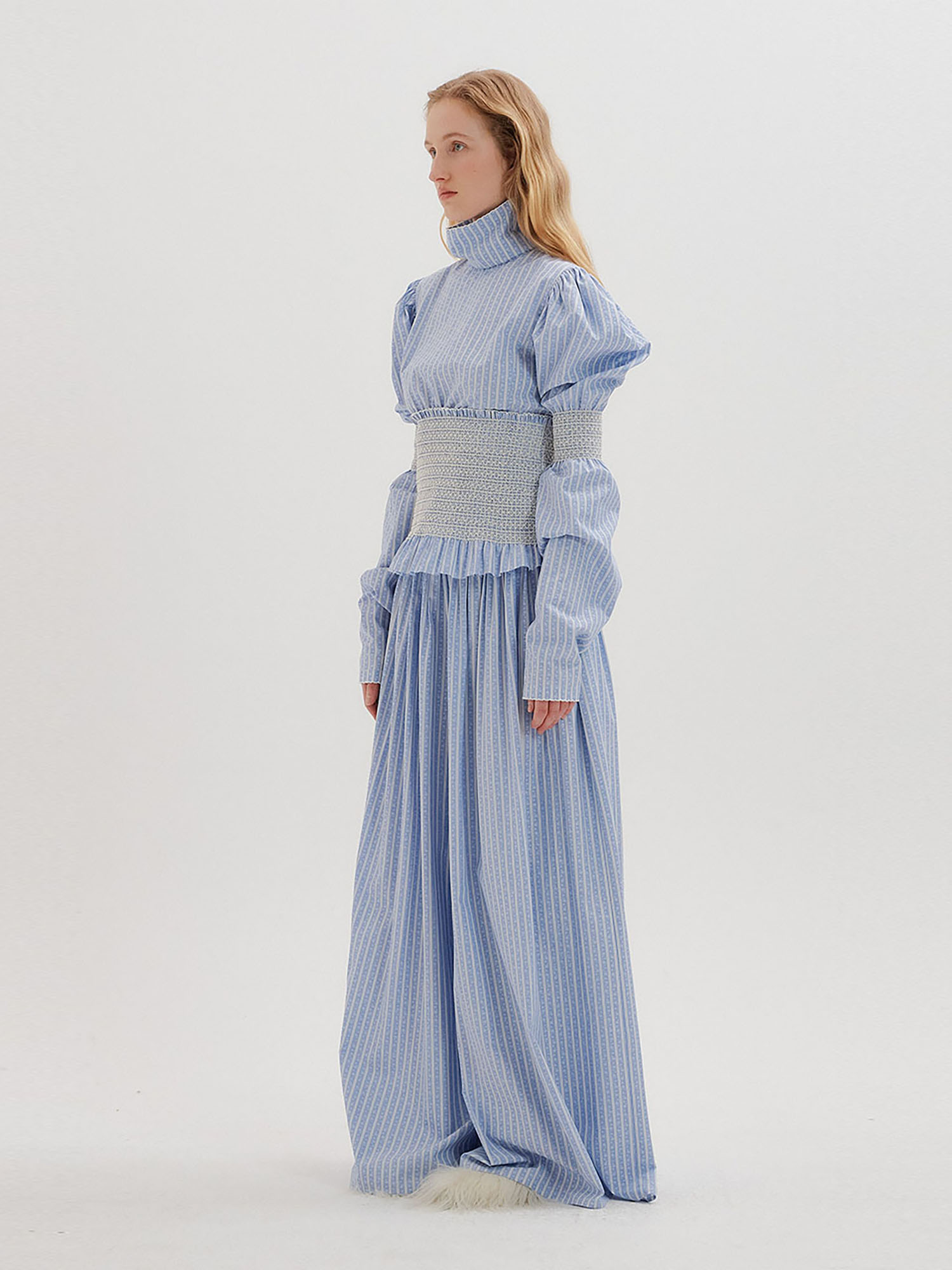 - 허리 라인과 소매 상단의 스모킹 디테일이 포인트가 됩니다.