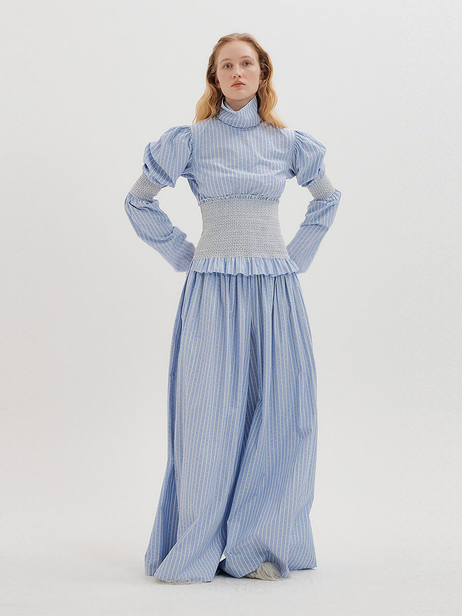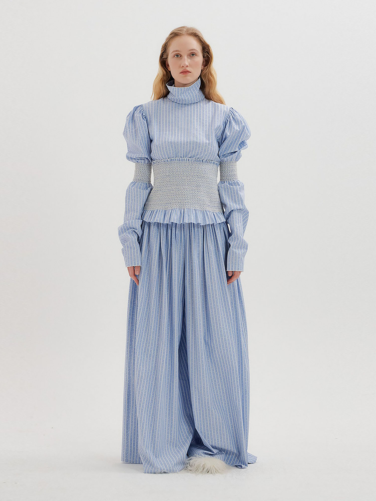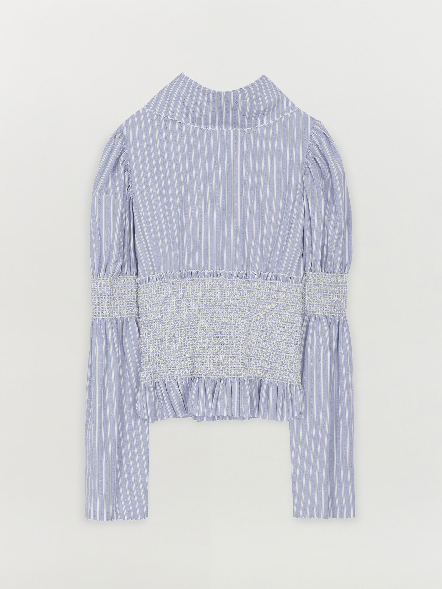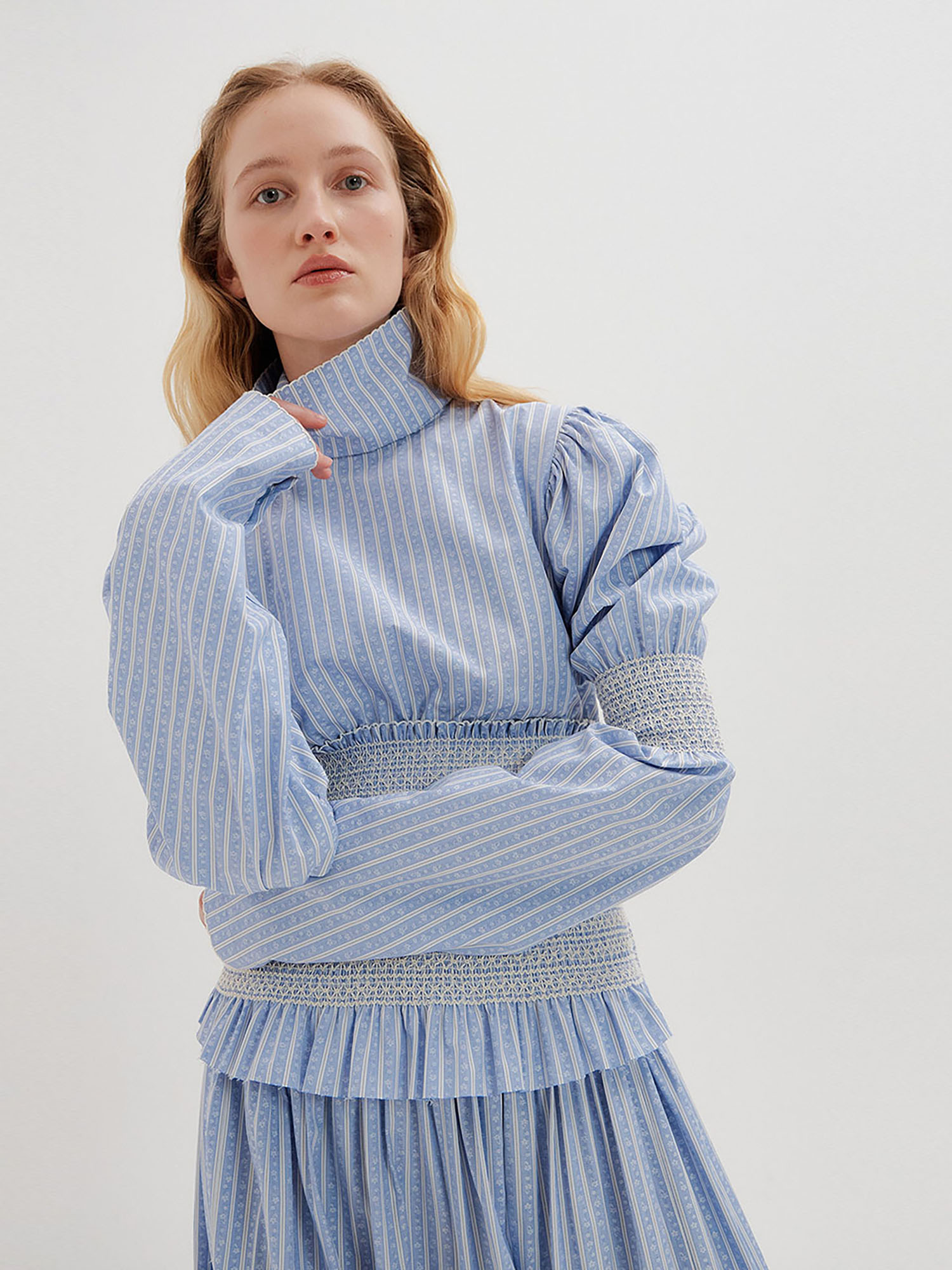 TWINKLE Smocked Turtleneck Blouse - Skyblue Stripe