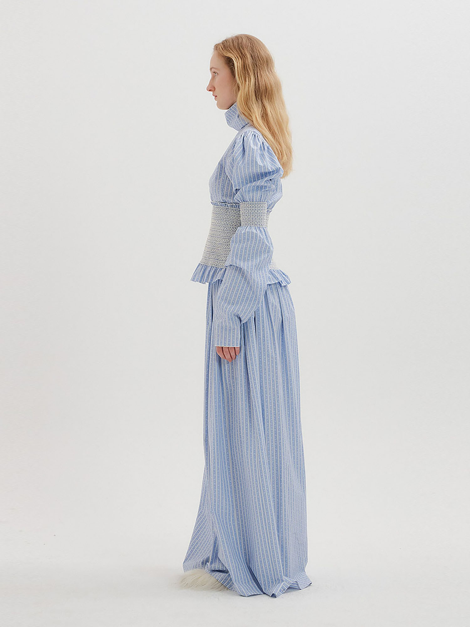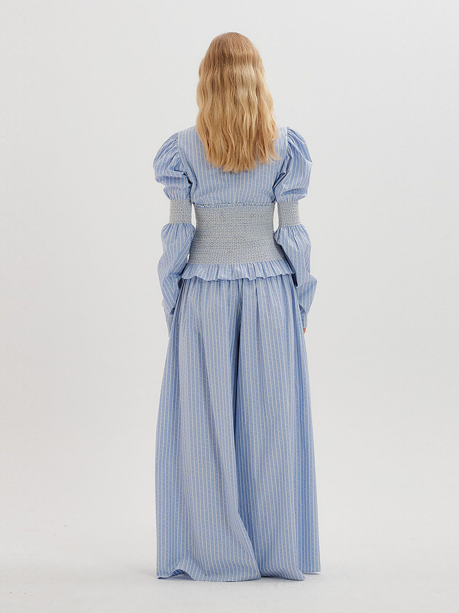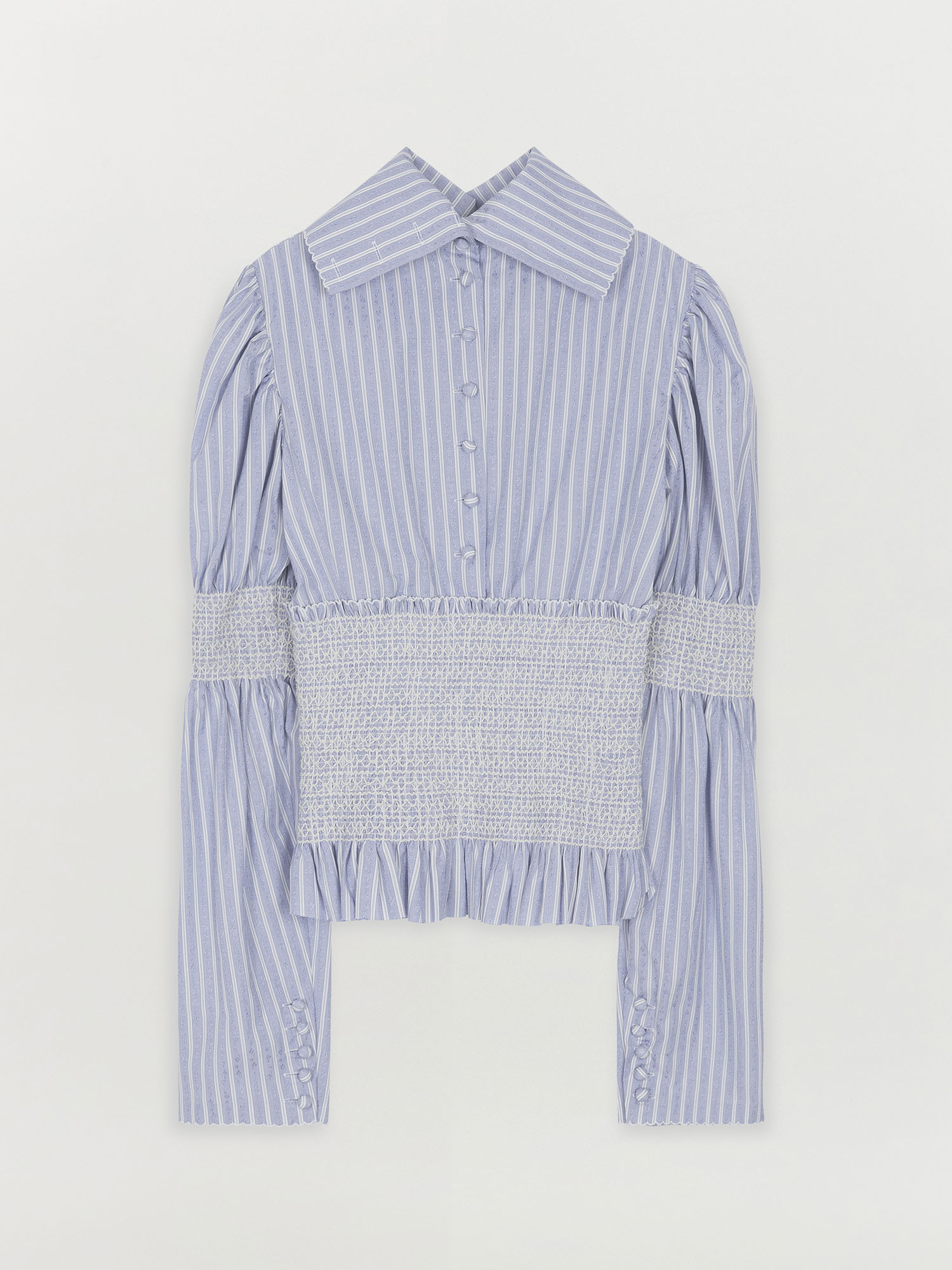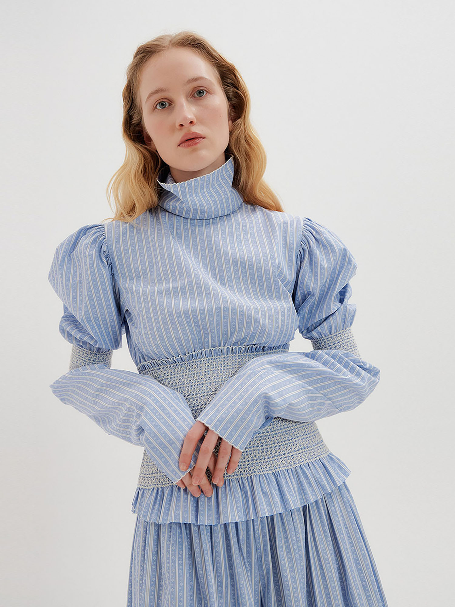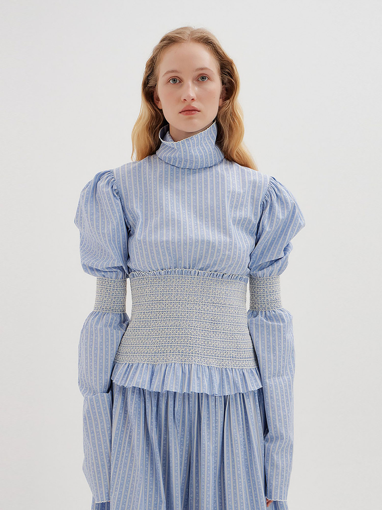 TWINKLE Smocked Turtleneck Blouse - Skyblue Stripe