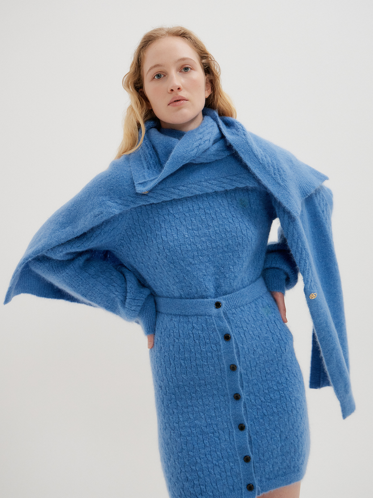 - 같은 소재의 니트 풀오버, 스커트, 팬츠와 세트로 착용하여 셋업 연출이 가능합니다.