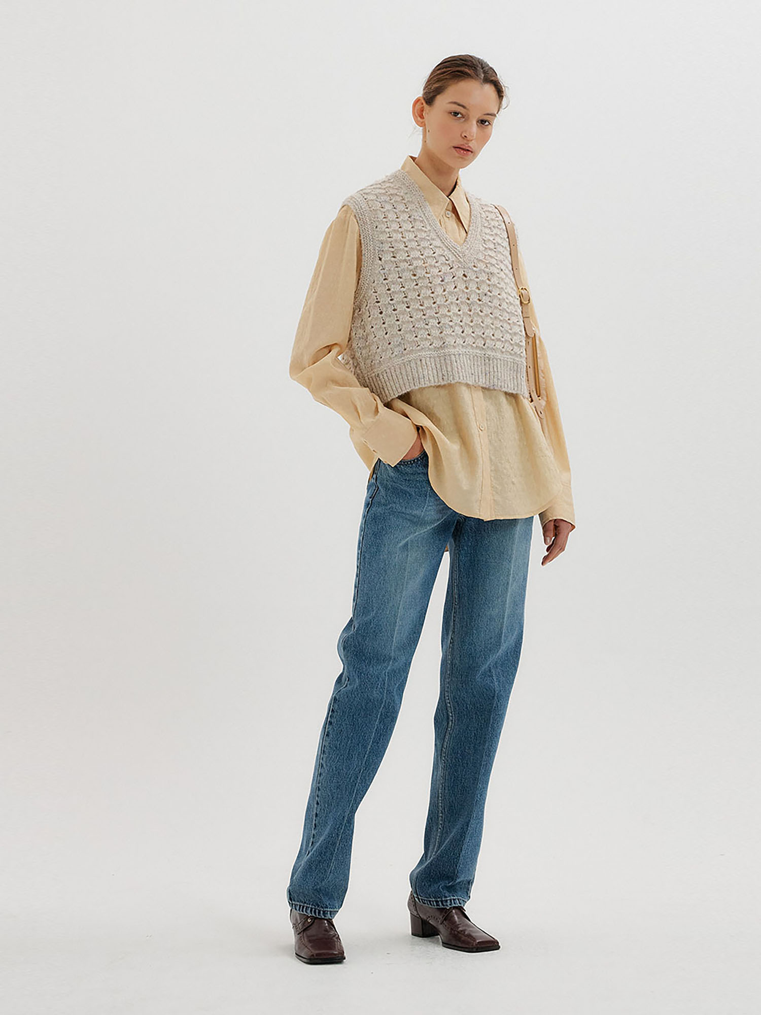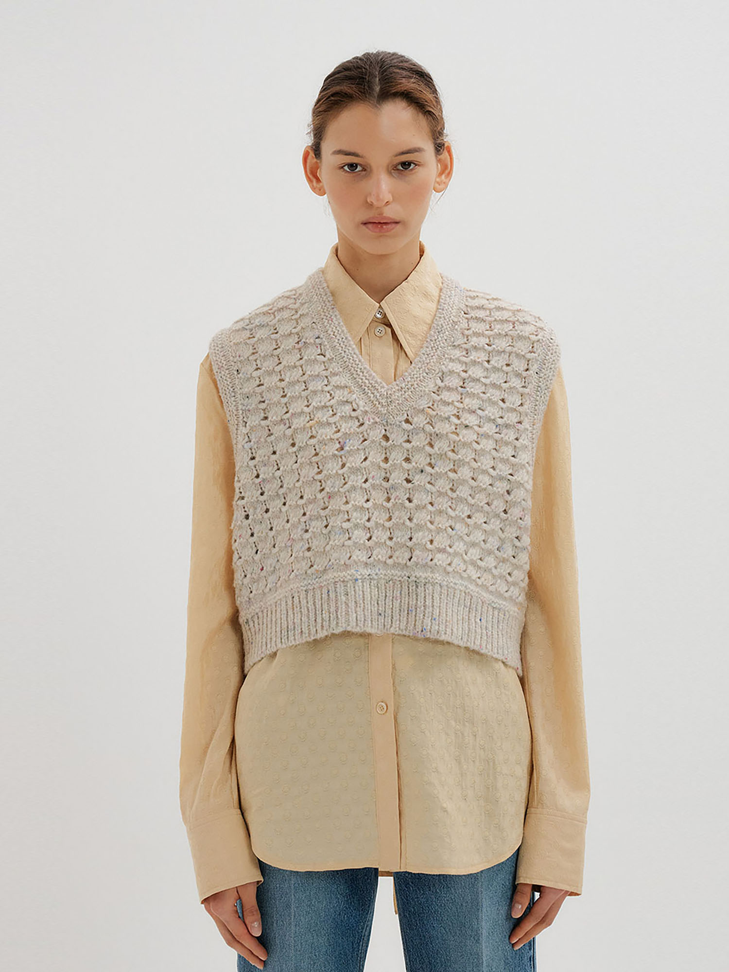 - 숏 기장의 니트 베스트입니다.