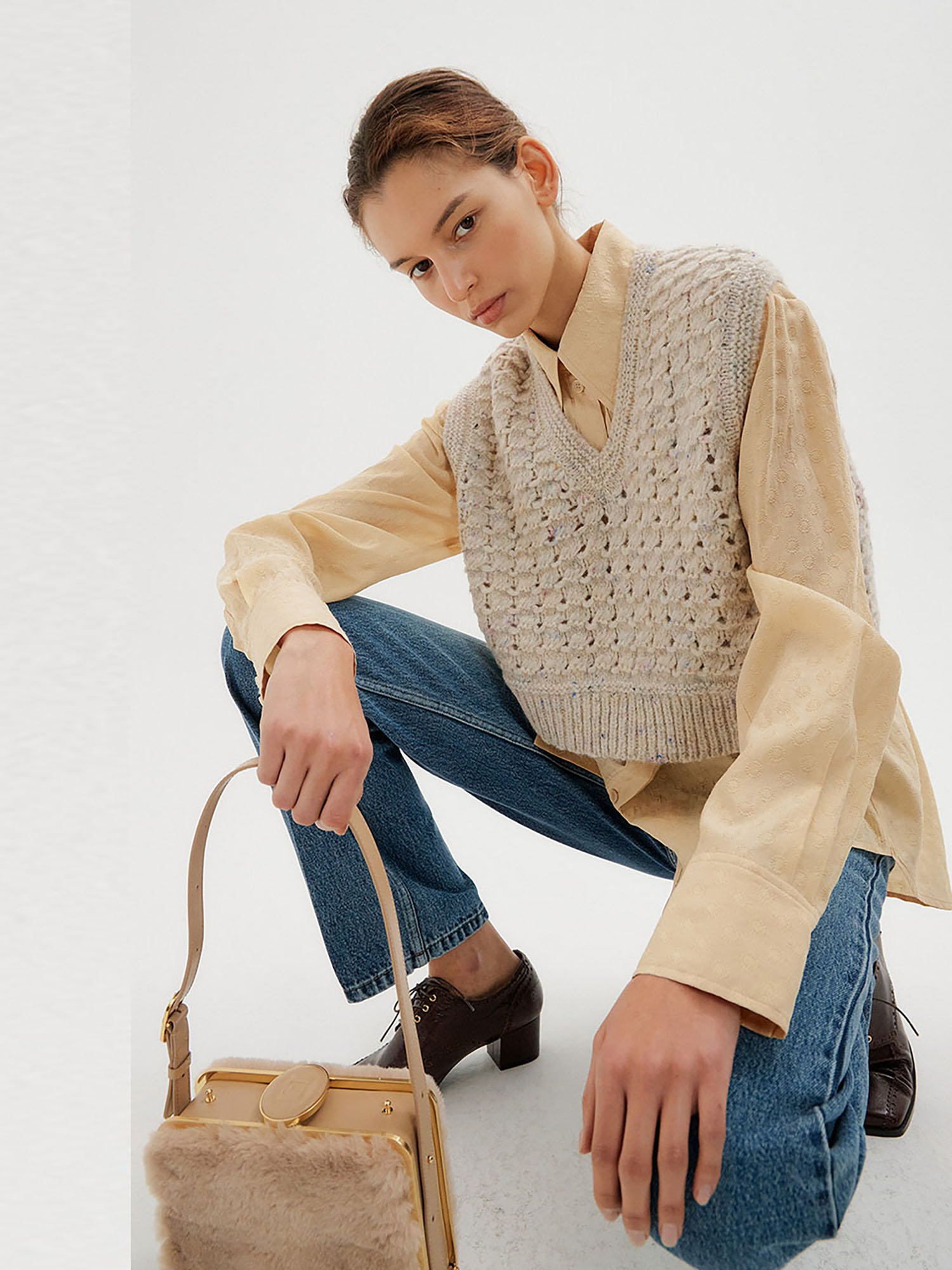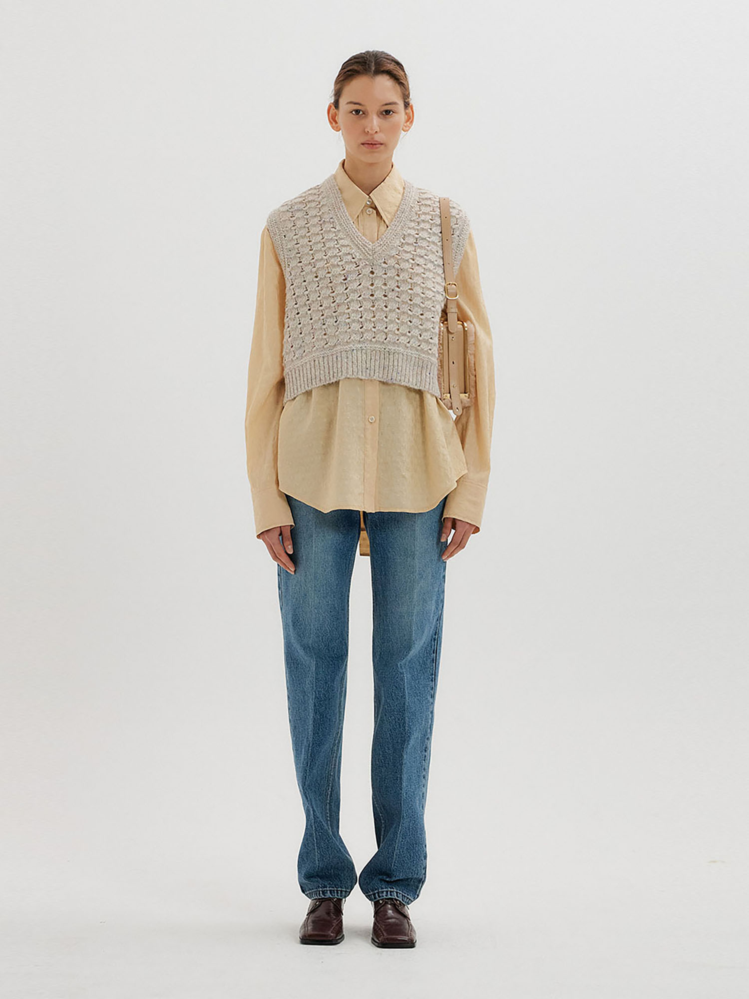 - 같은 소재의 니트 제품을 세트로 착용할 수 있습니다.