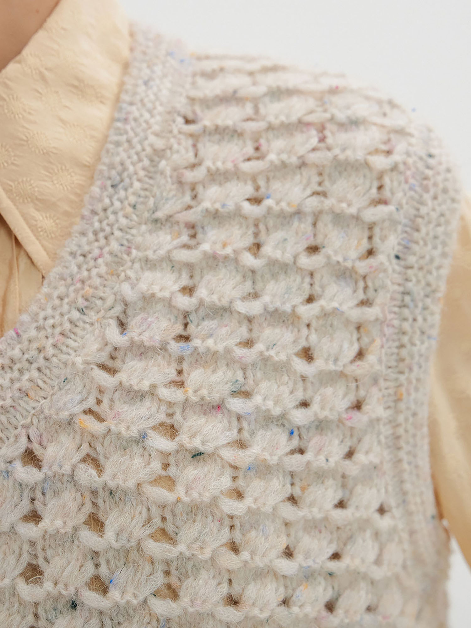 TOBI V-neck Short Vest - Beige Multi