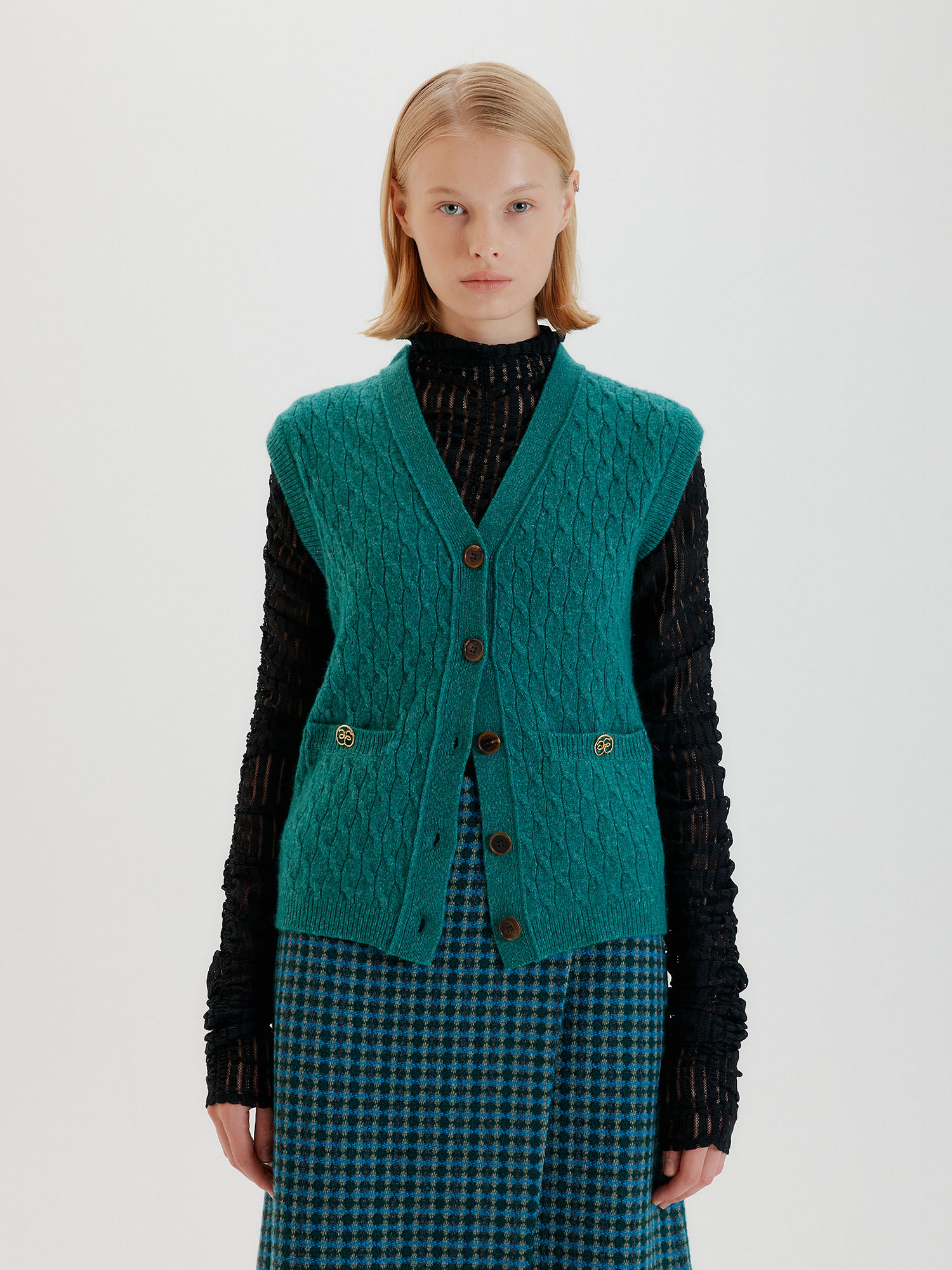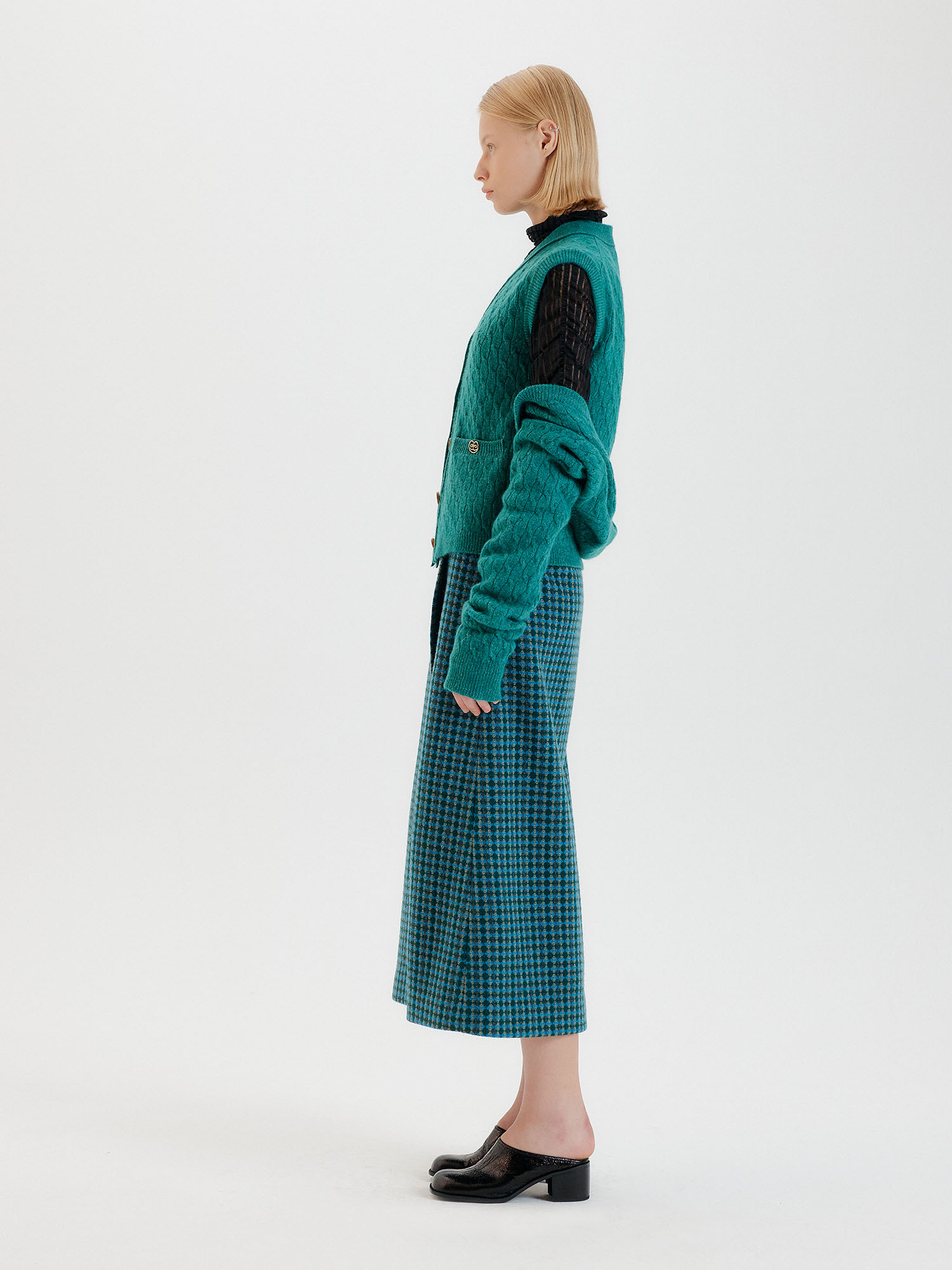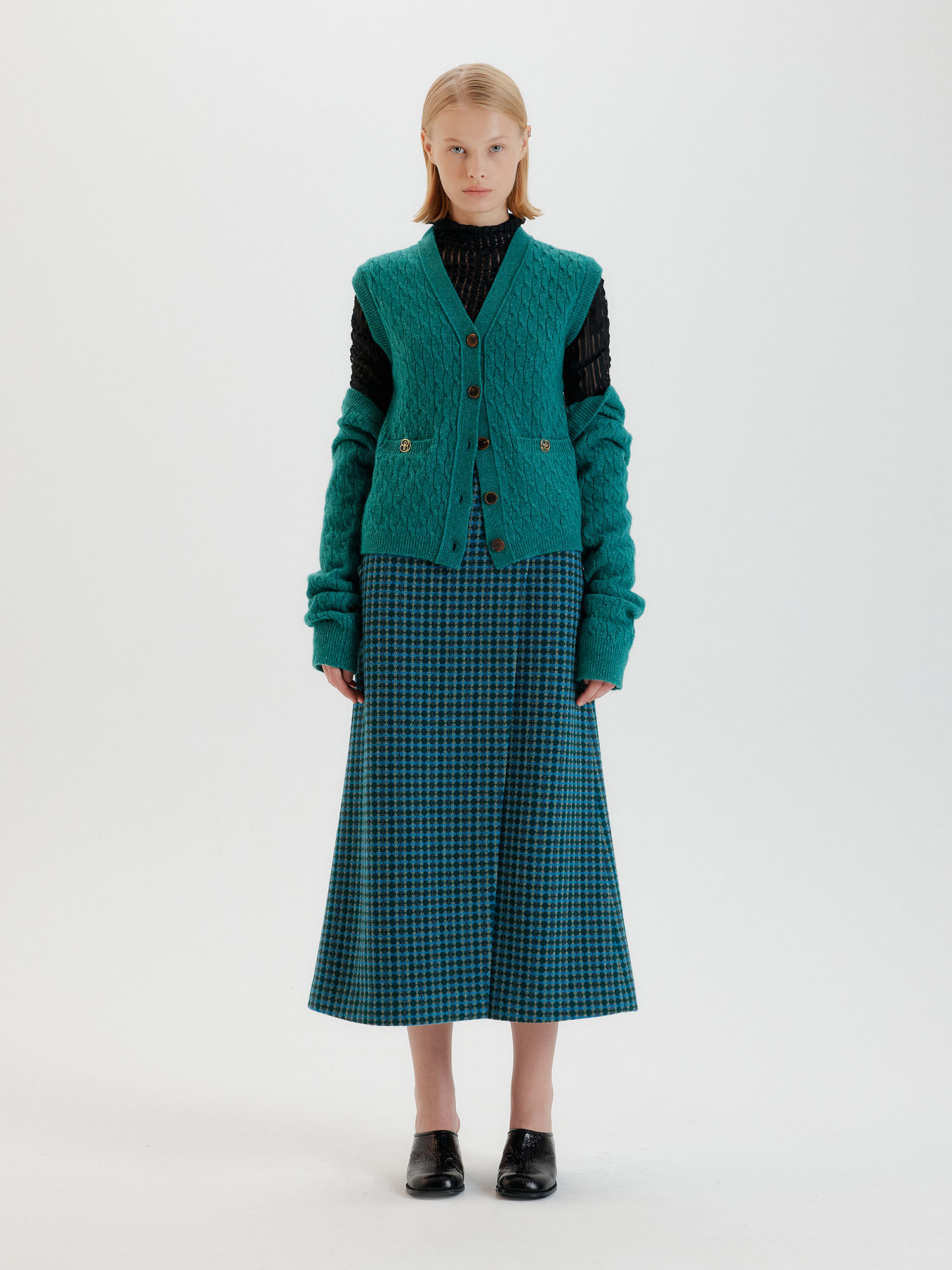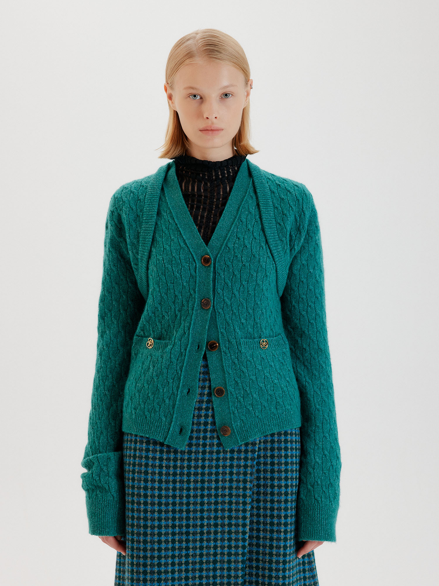 - 그린 컬러의 가디건입니다.