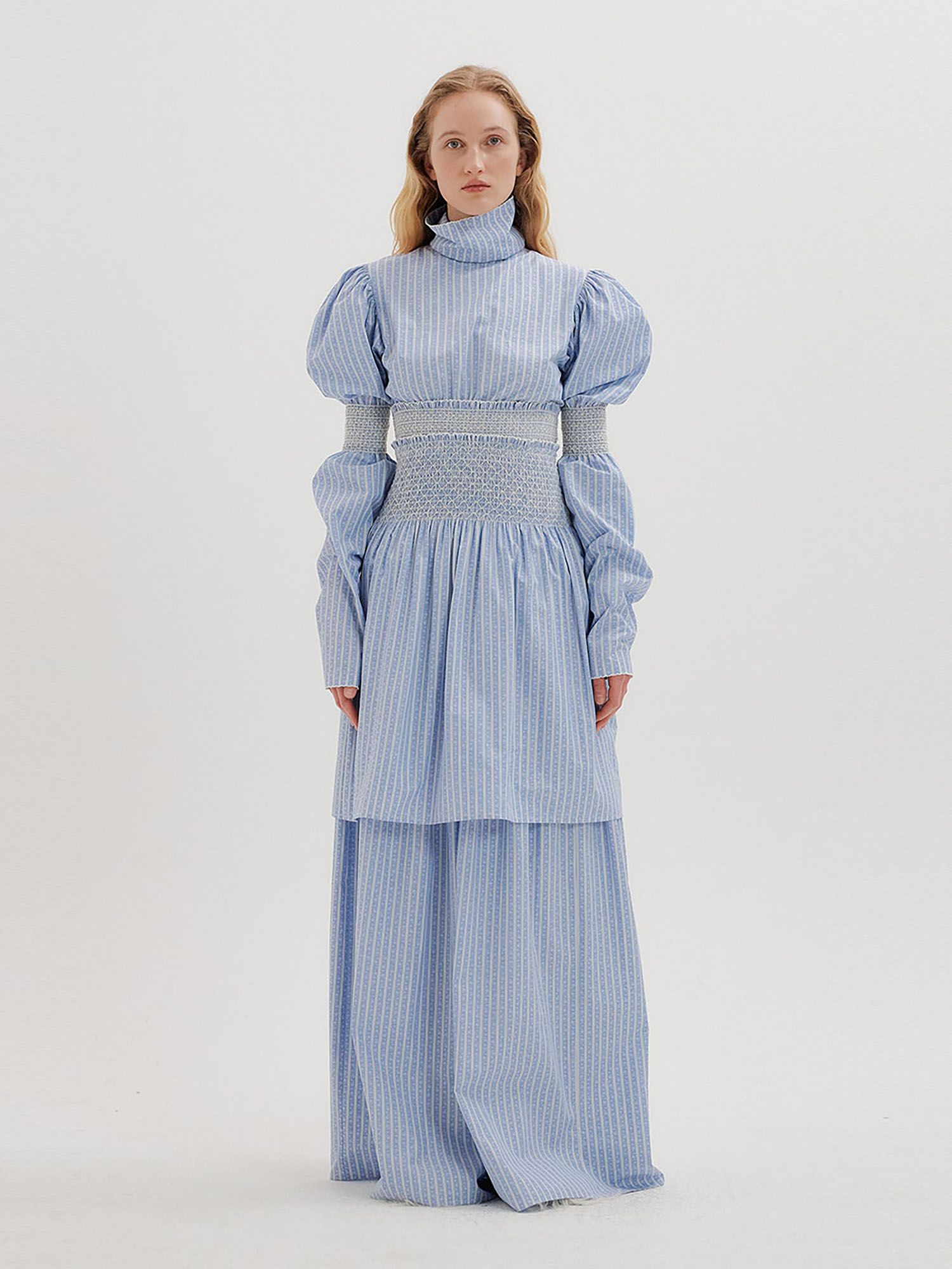 - 허리 라인의 스모킹 디테일이 포인트가 됩니다.