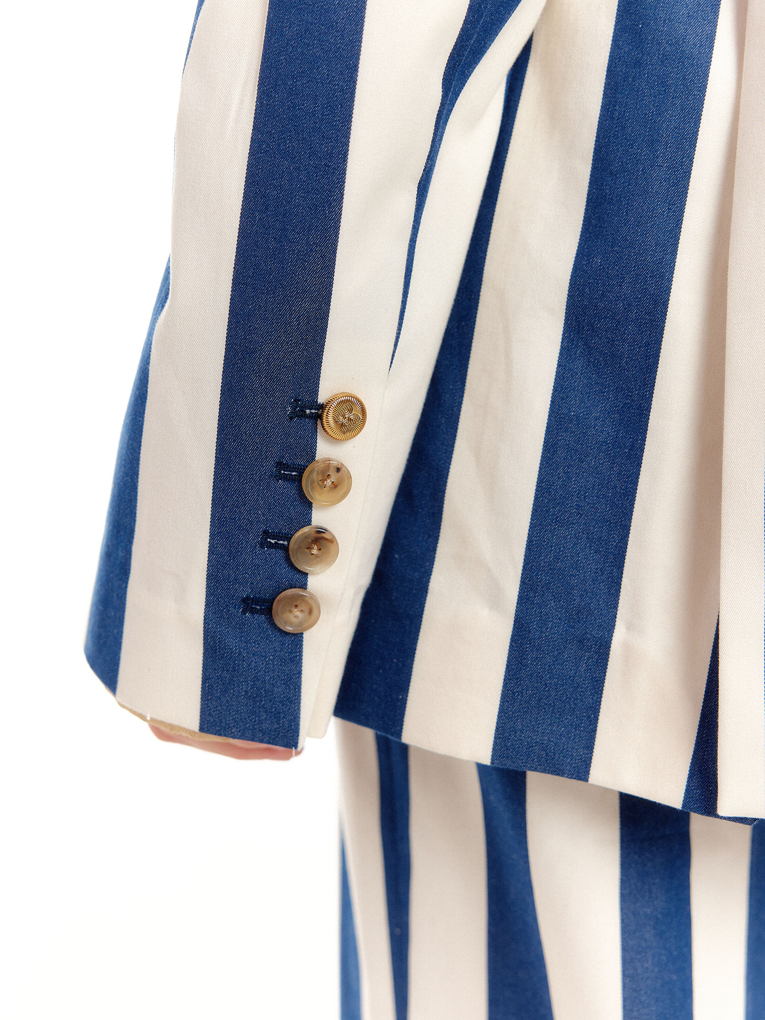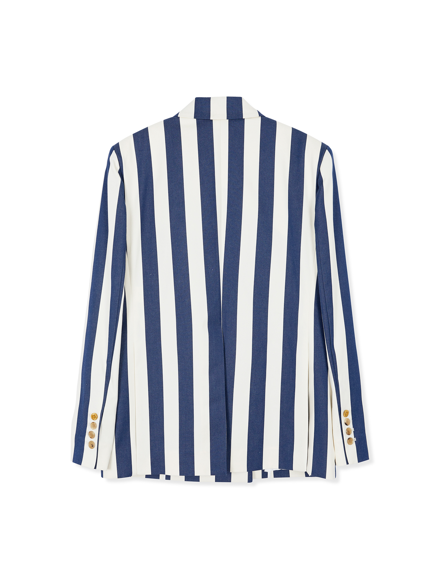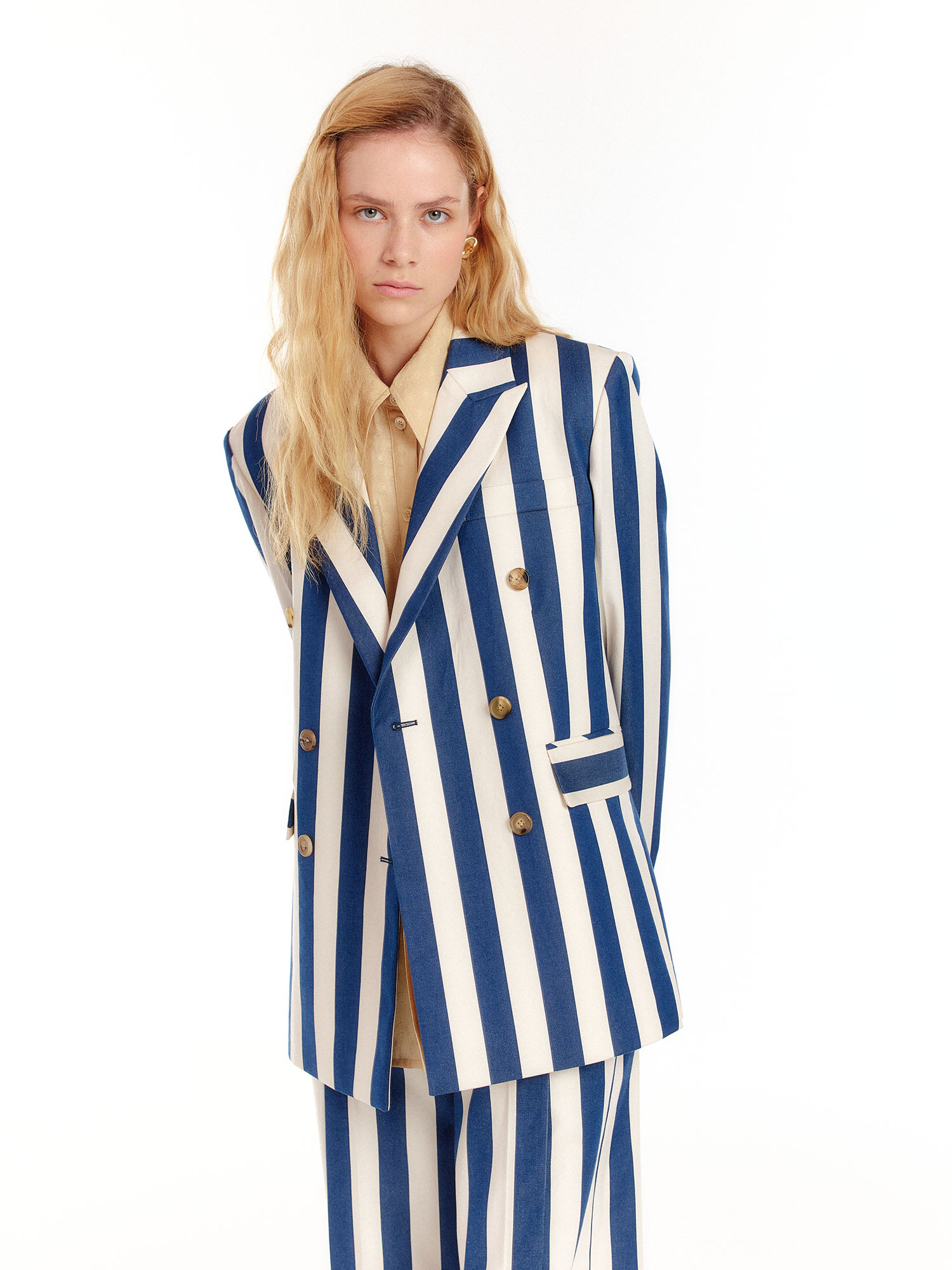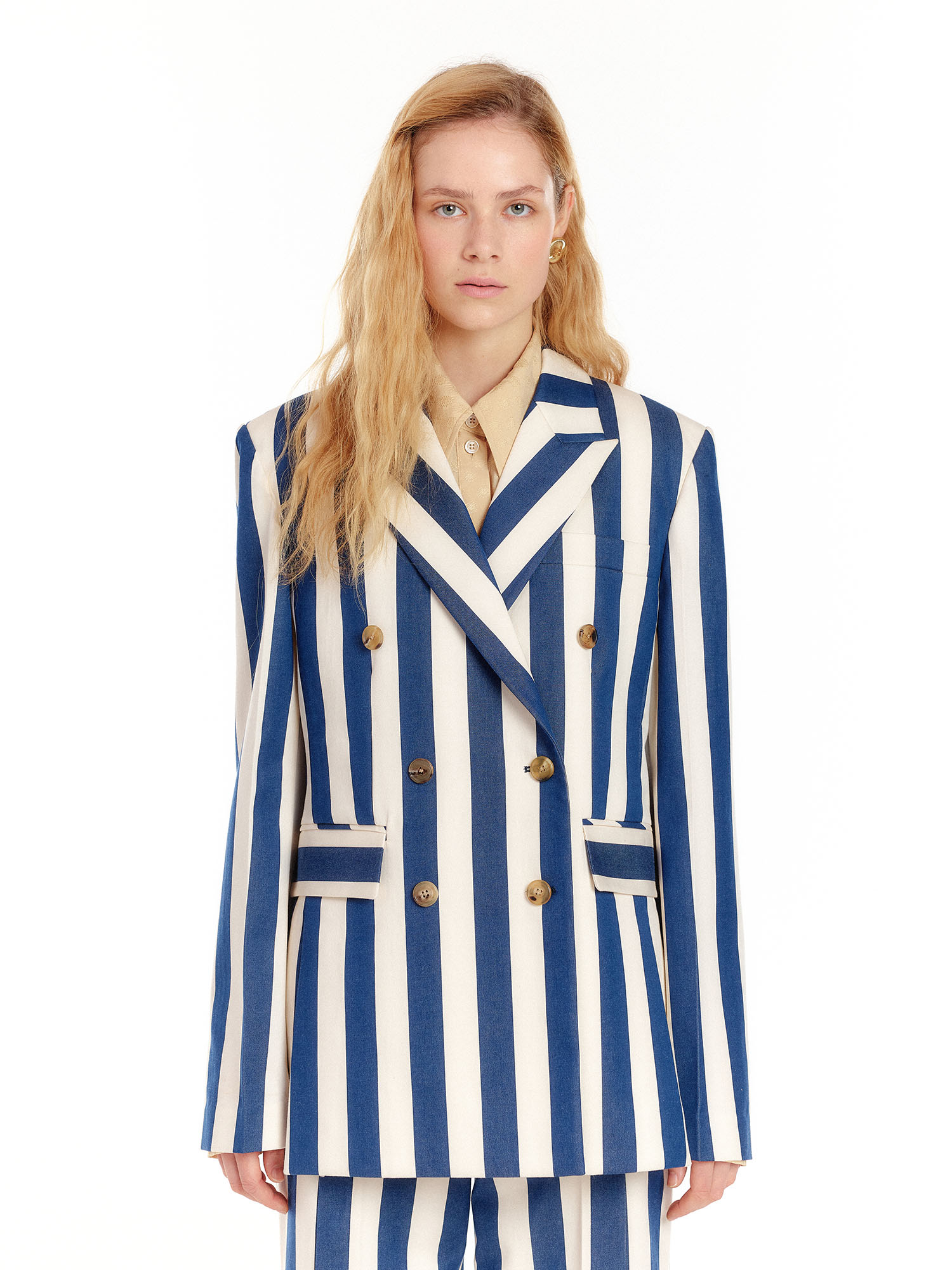 UPTOWN Double-Breasted Blazer - Ivory/Navy Stripe