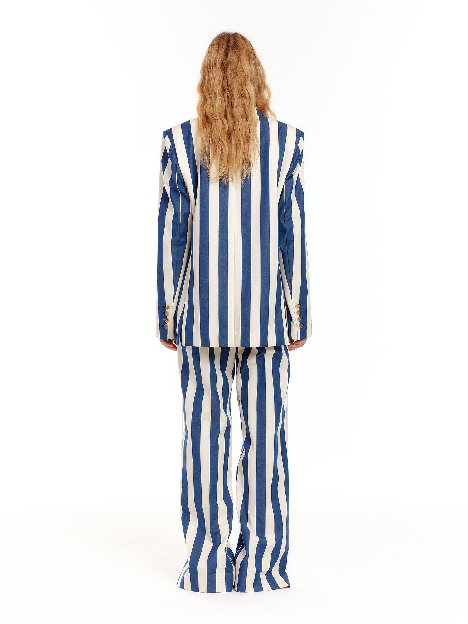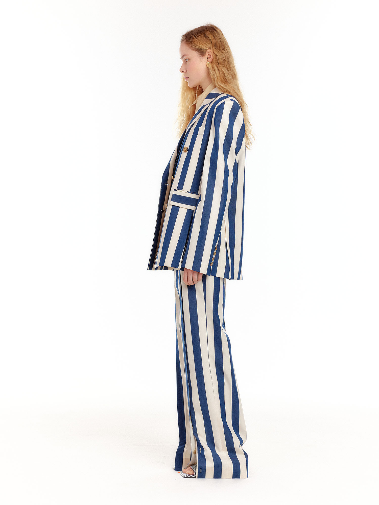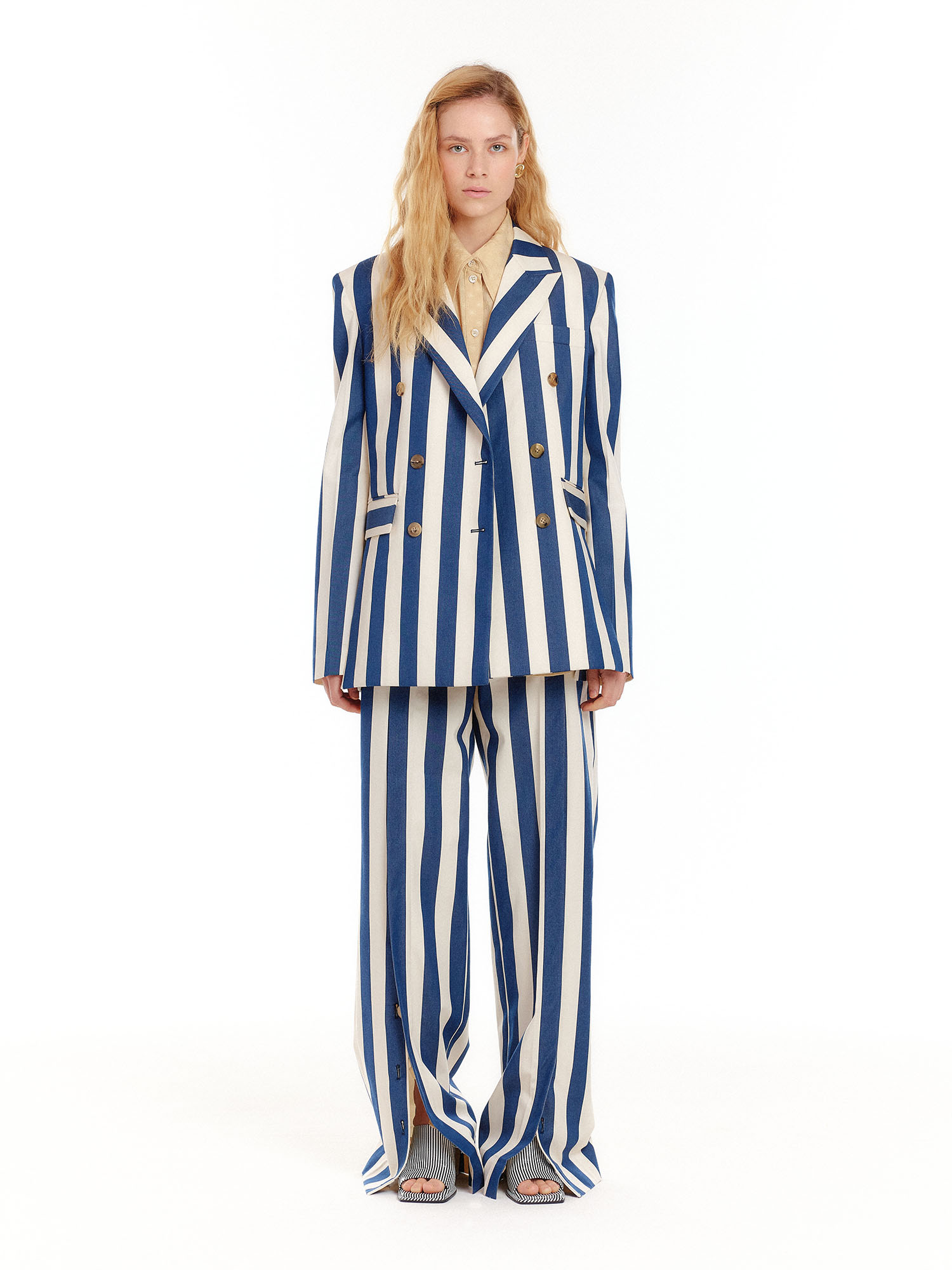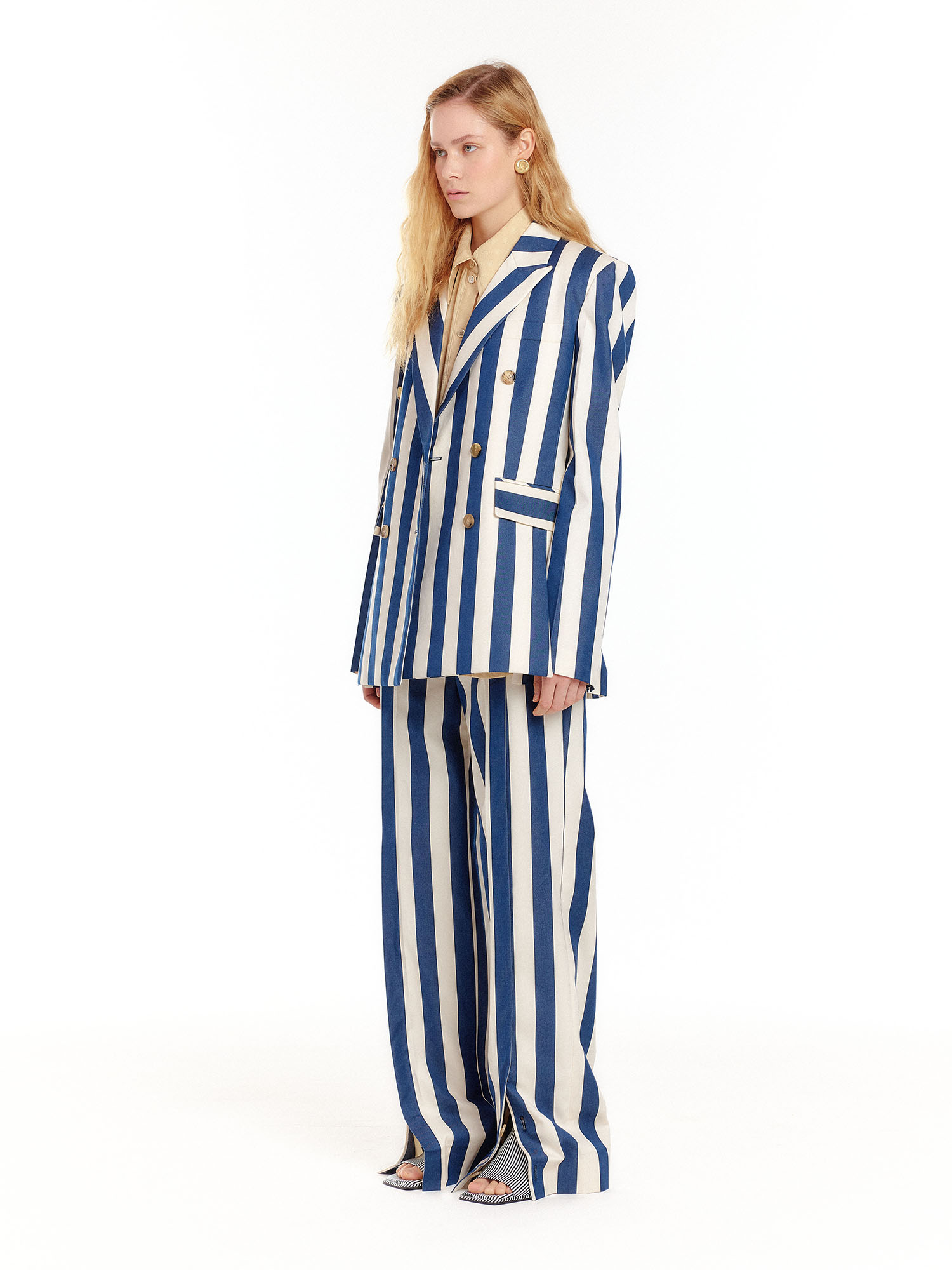 UPTOWN Double-Breasted Blazer - Ivory/Navy Stripe