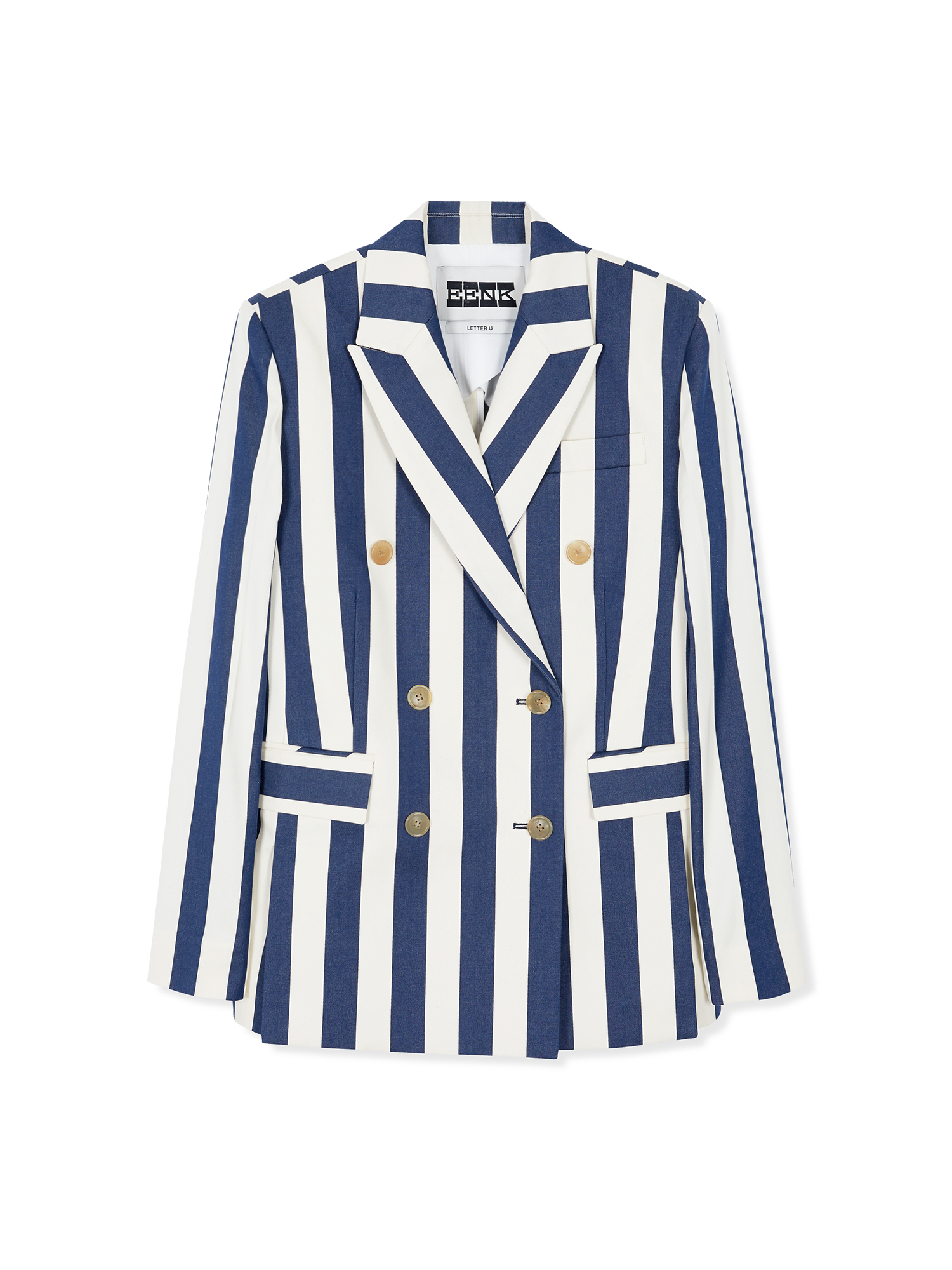 - 오버 사이즈의 스트라이프 더블 자켓입니다.