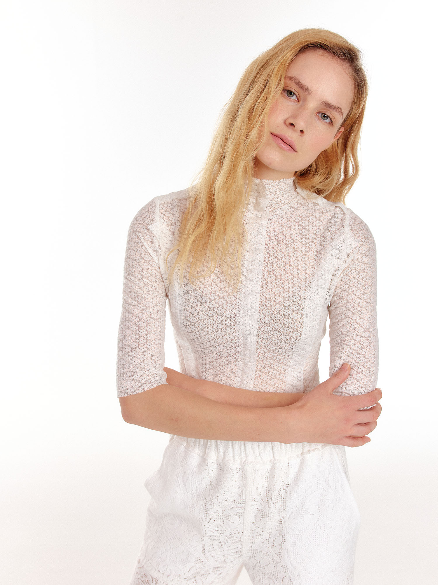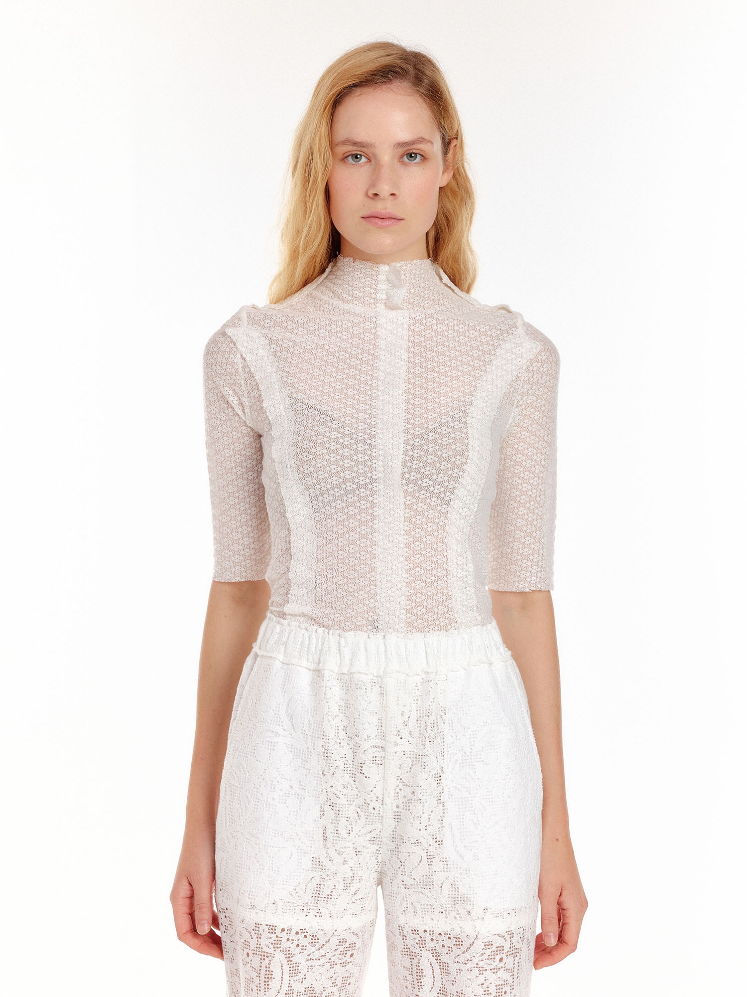 - 화이트 컬러의 숏 슬리브 탑입니다.