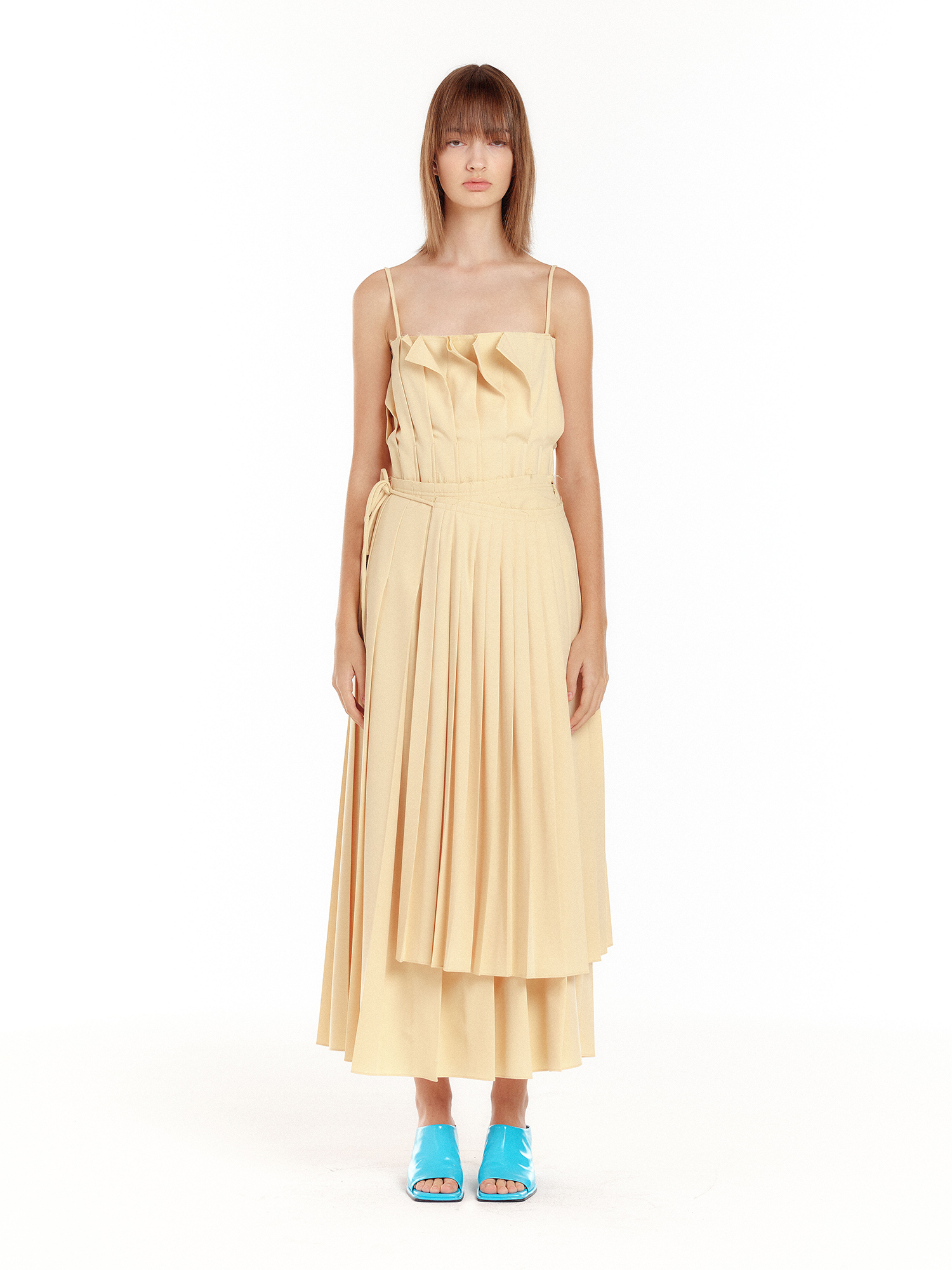 - 옐로우 컬러의 플리츠 스커트입니다.