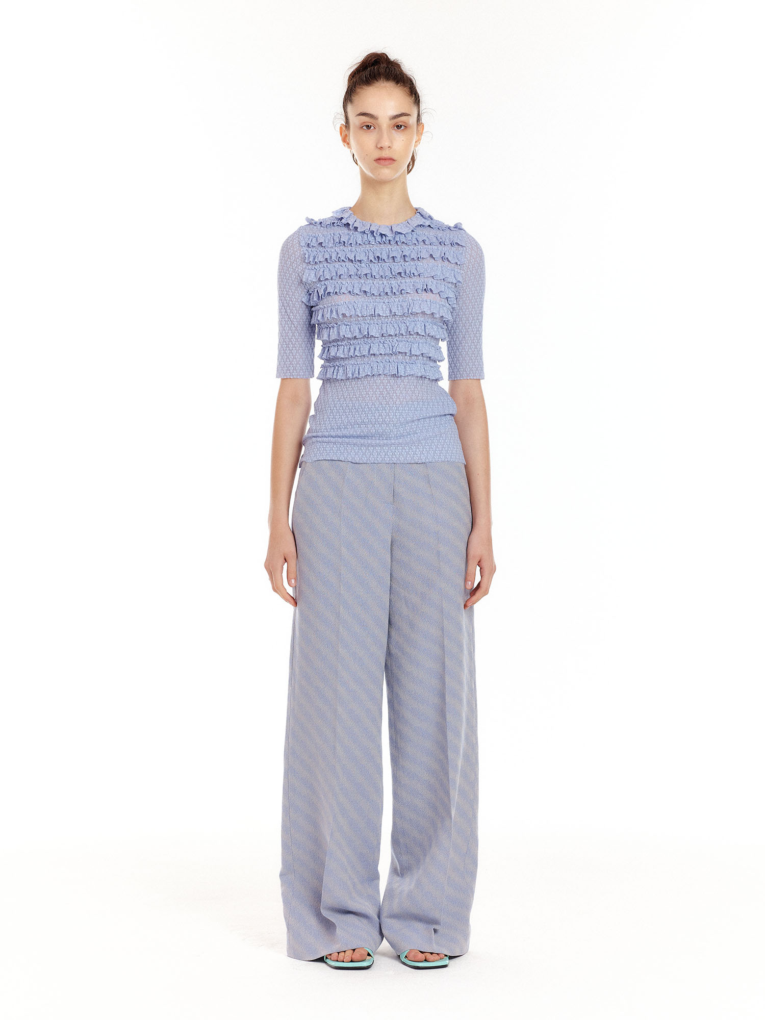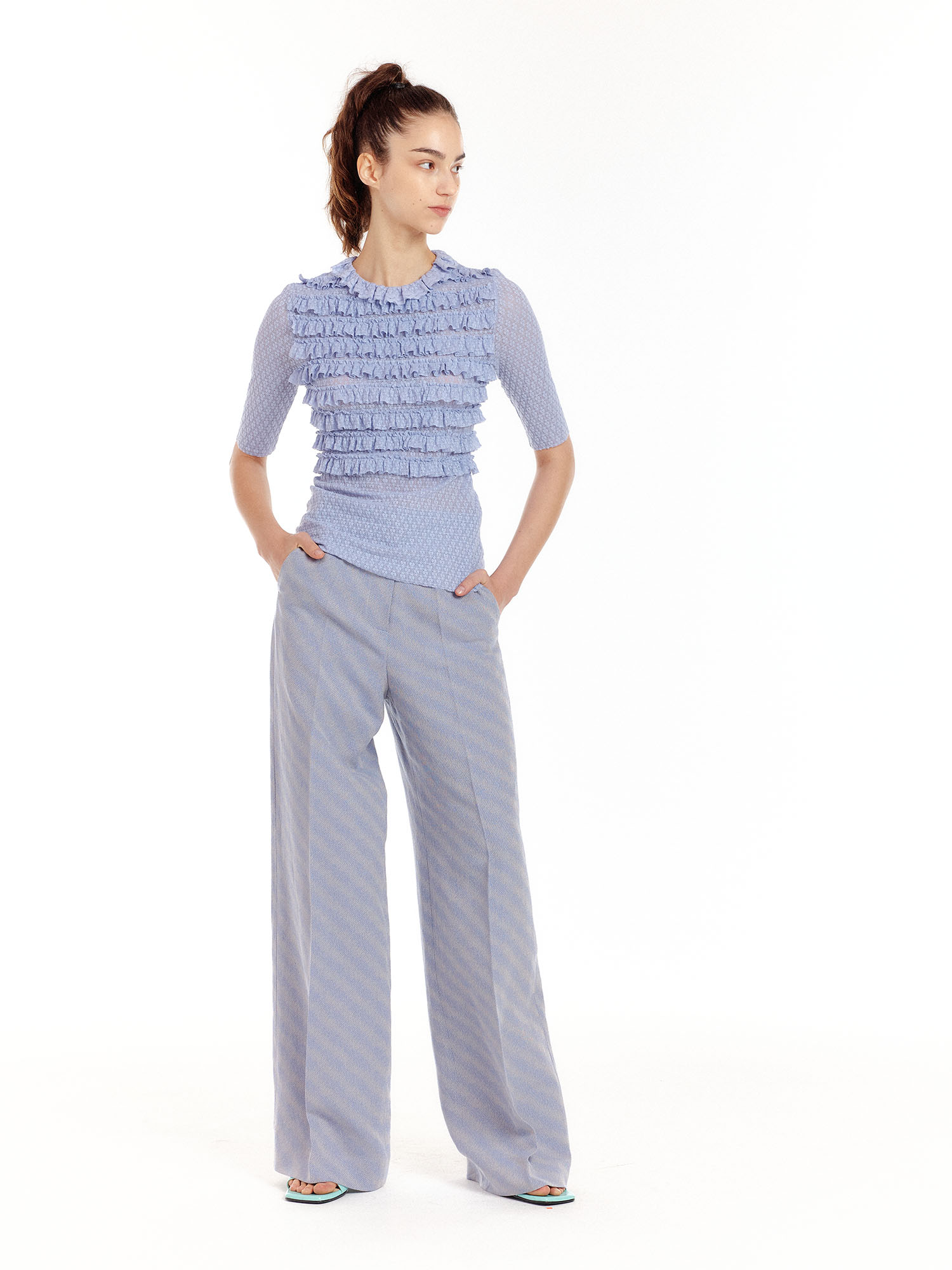 - 라벤더 컬러의 와이드 팬츠입니다.