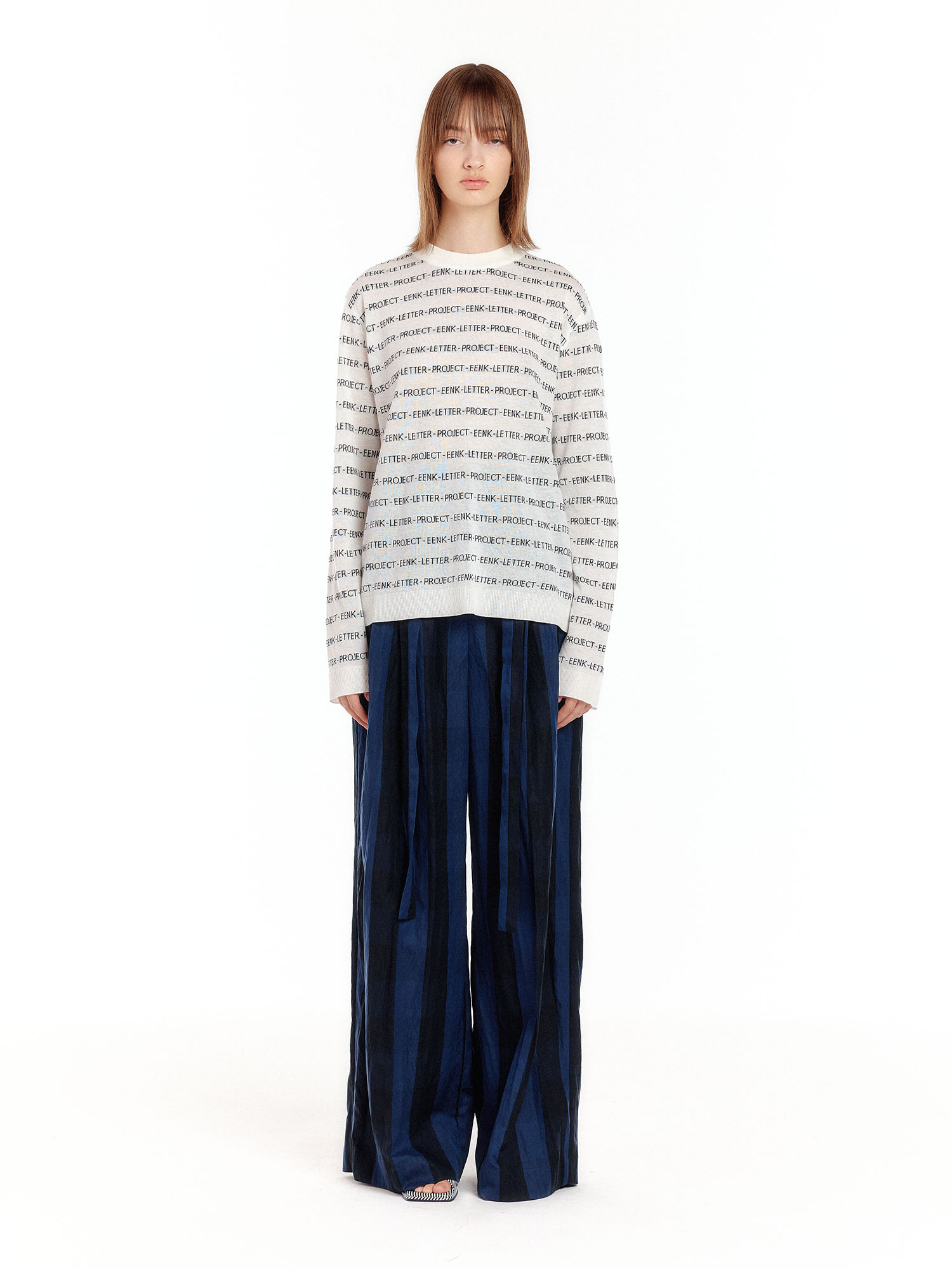 - 스트라이프 패턴의 와이드 팬츠입니다.