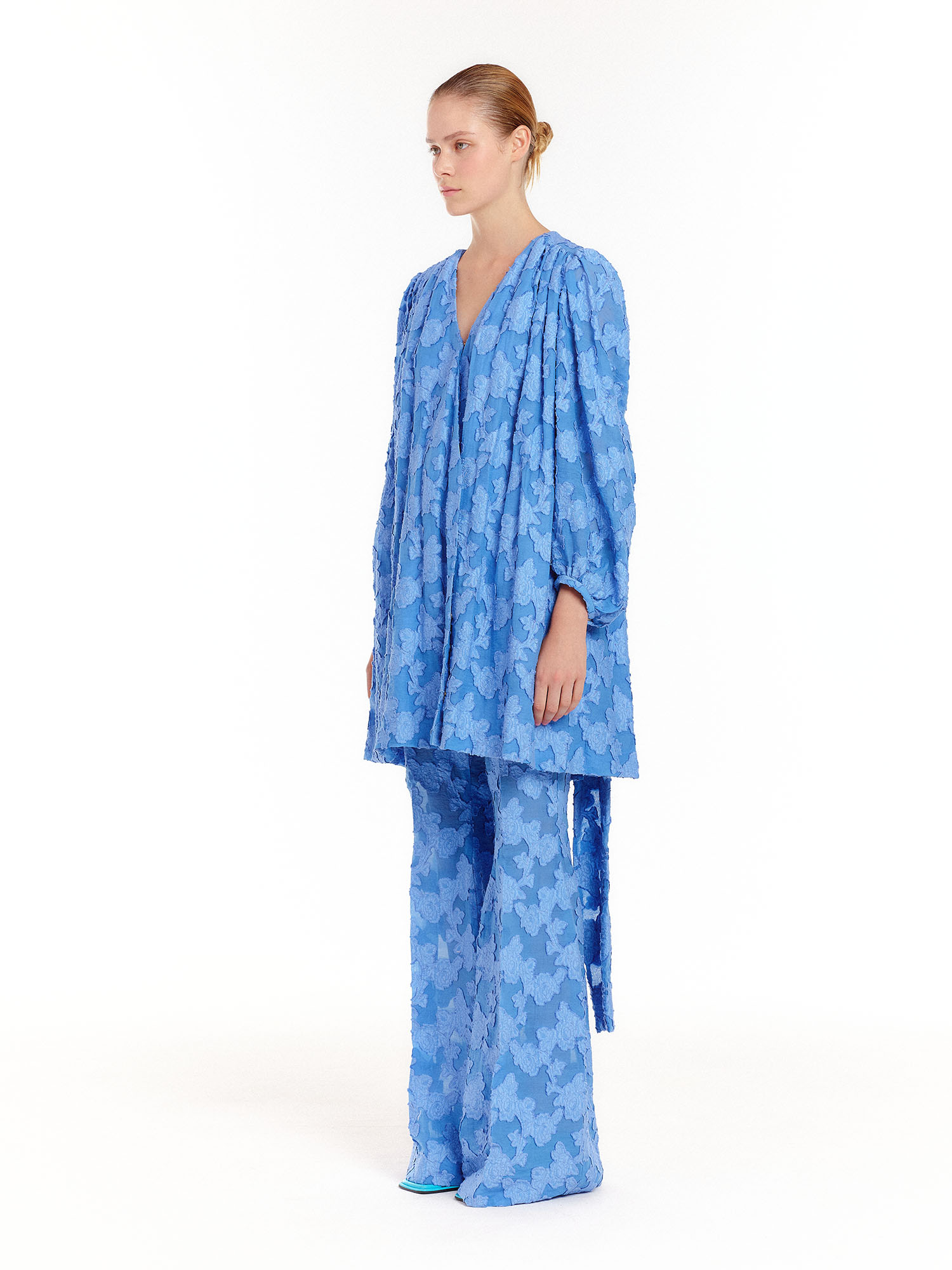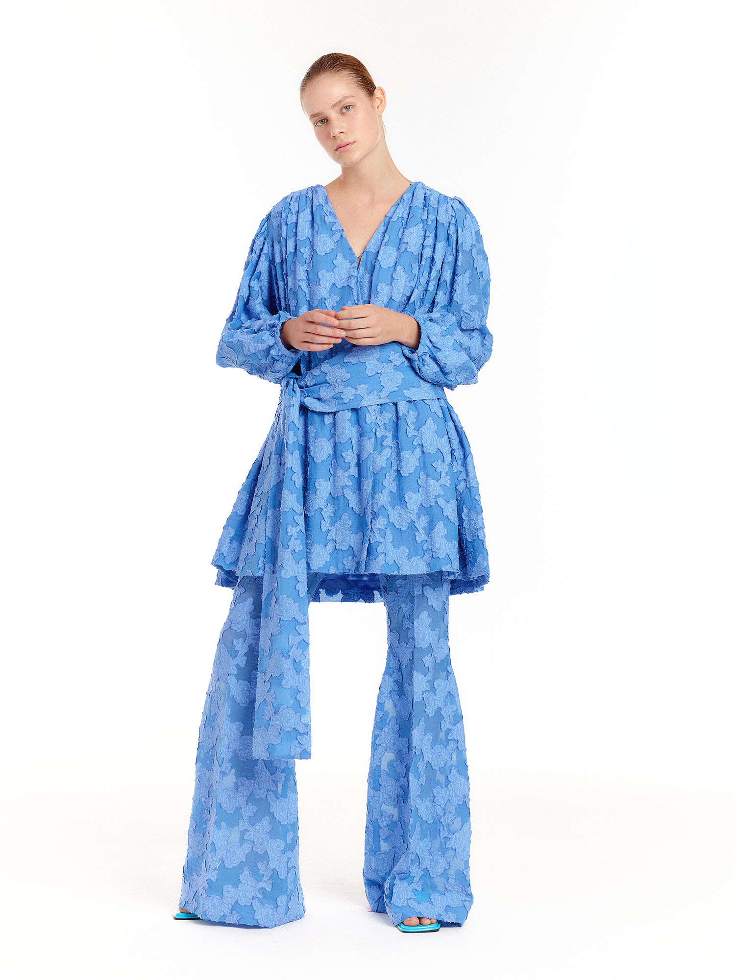 - 같은 소재의 드레스를 세트로 착용하여 셋업 연출이 가능합니다.