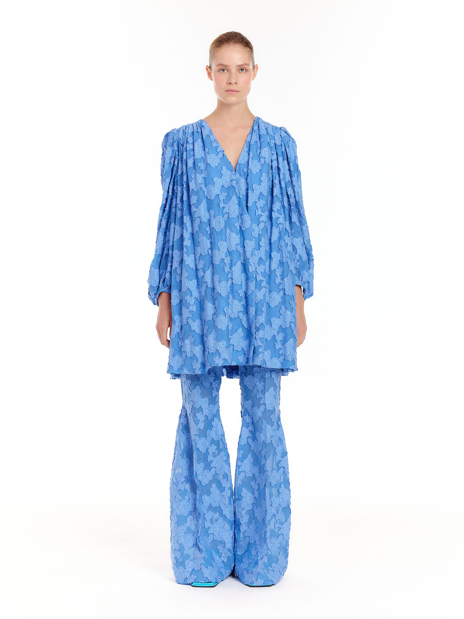 - 플로럴 패턴의 플레어 팬츠입니다.