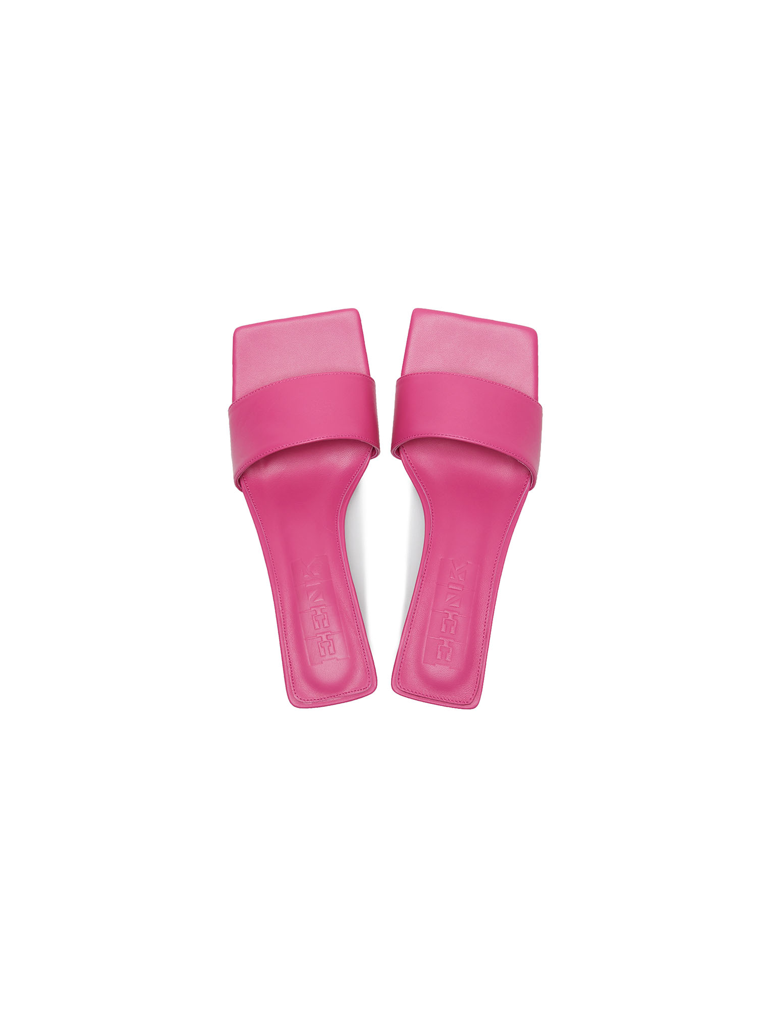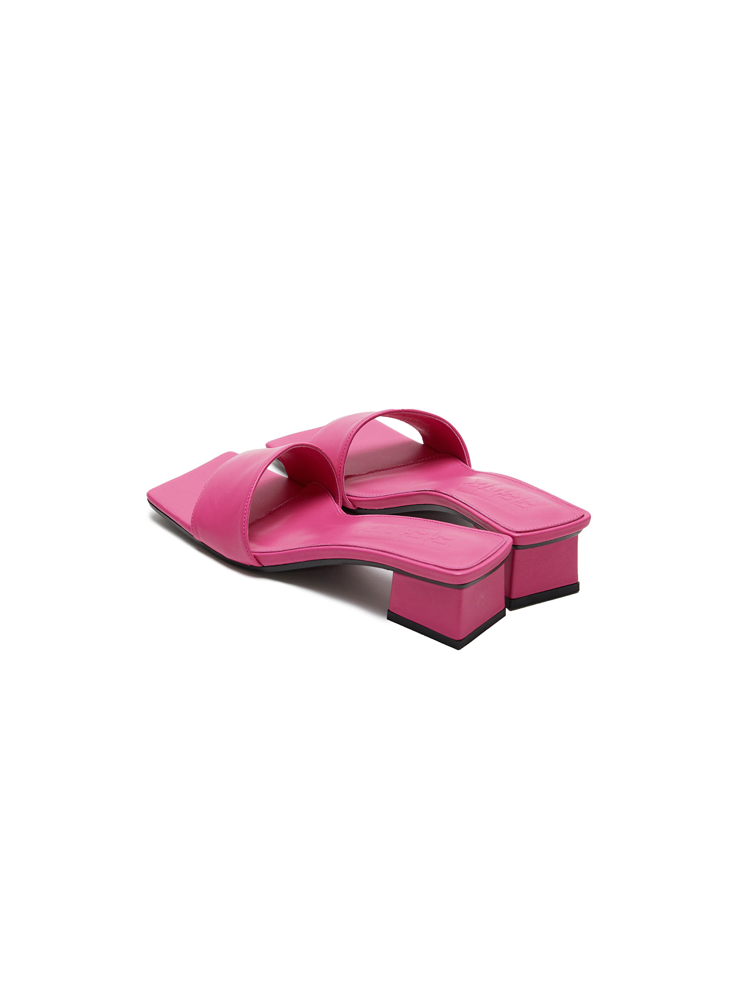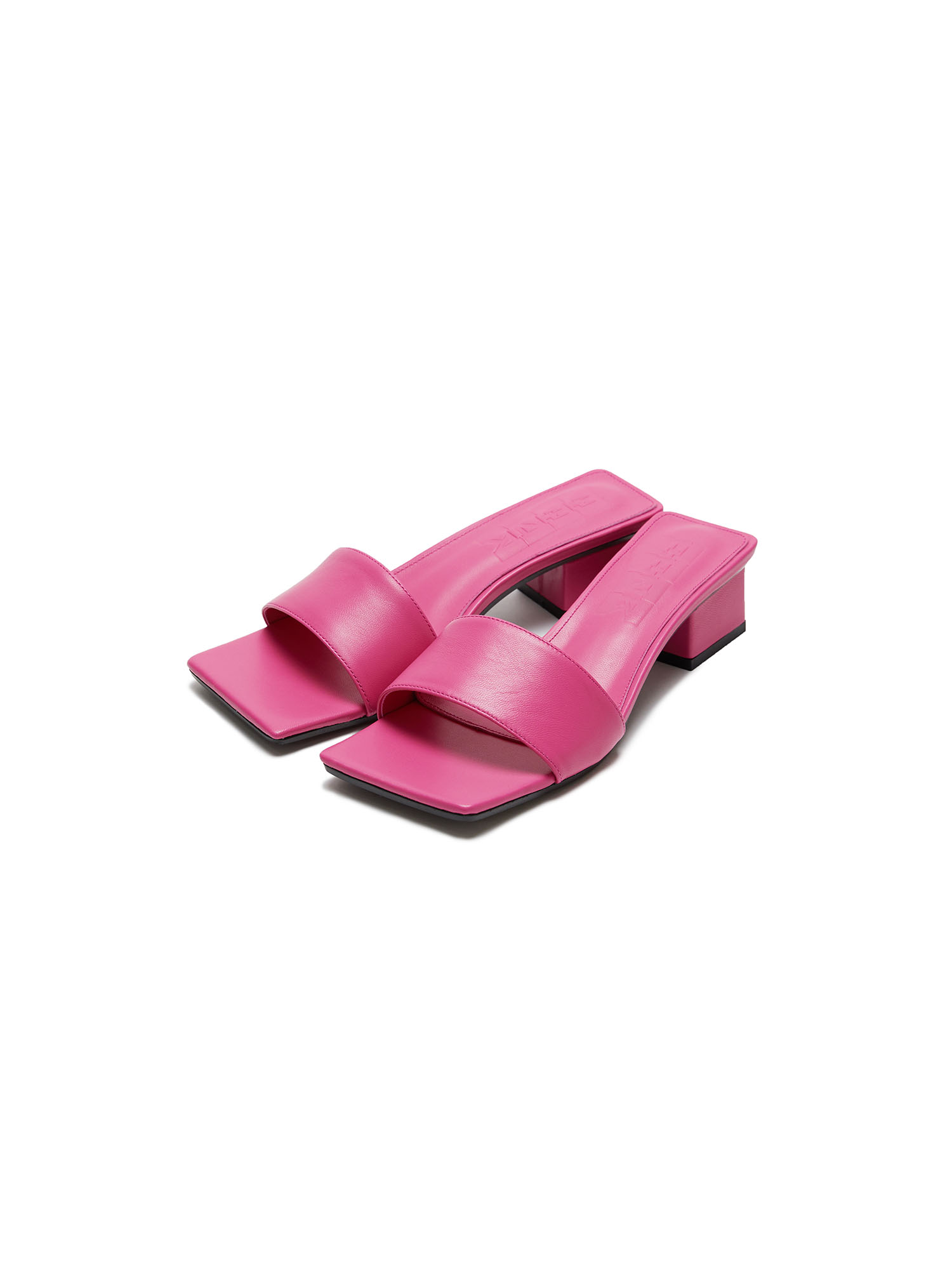 - 핑크 컬러의 스퀘어 토 힐입니다.