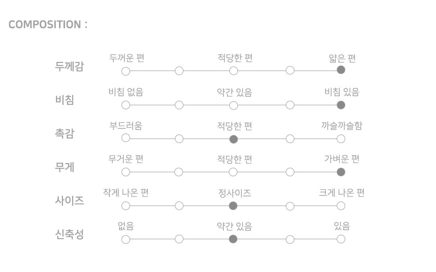- 원사와 조직의 특성상 올 뜯김이 쉬우니 착용 시 특히 주의하시길 바랍니다.
