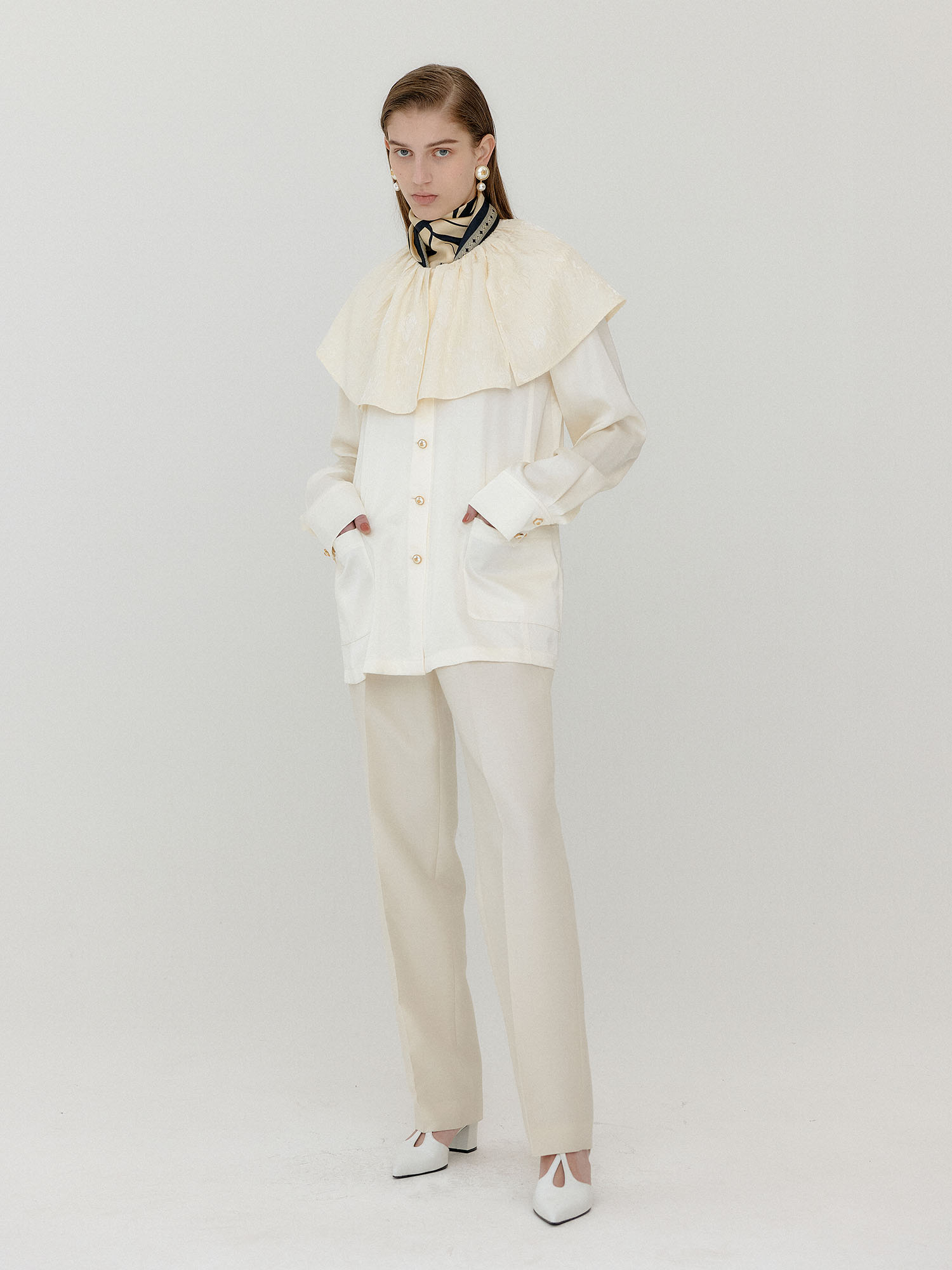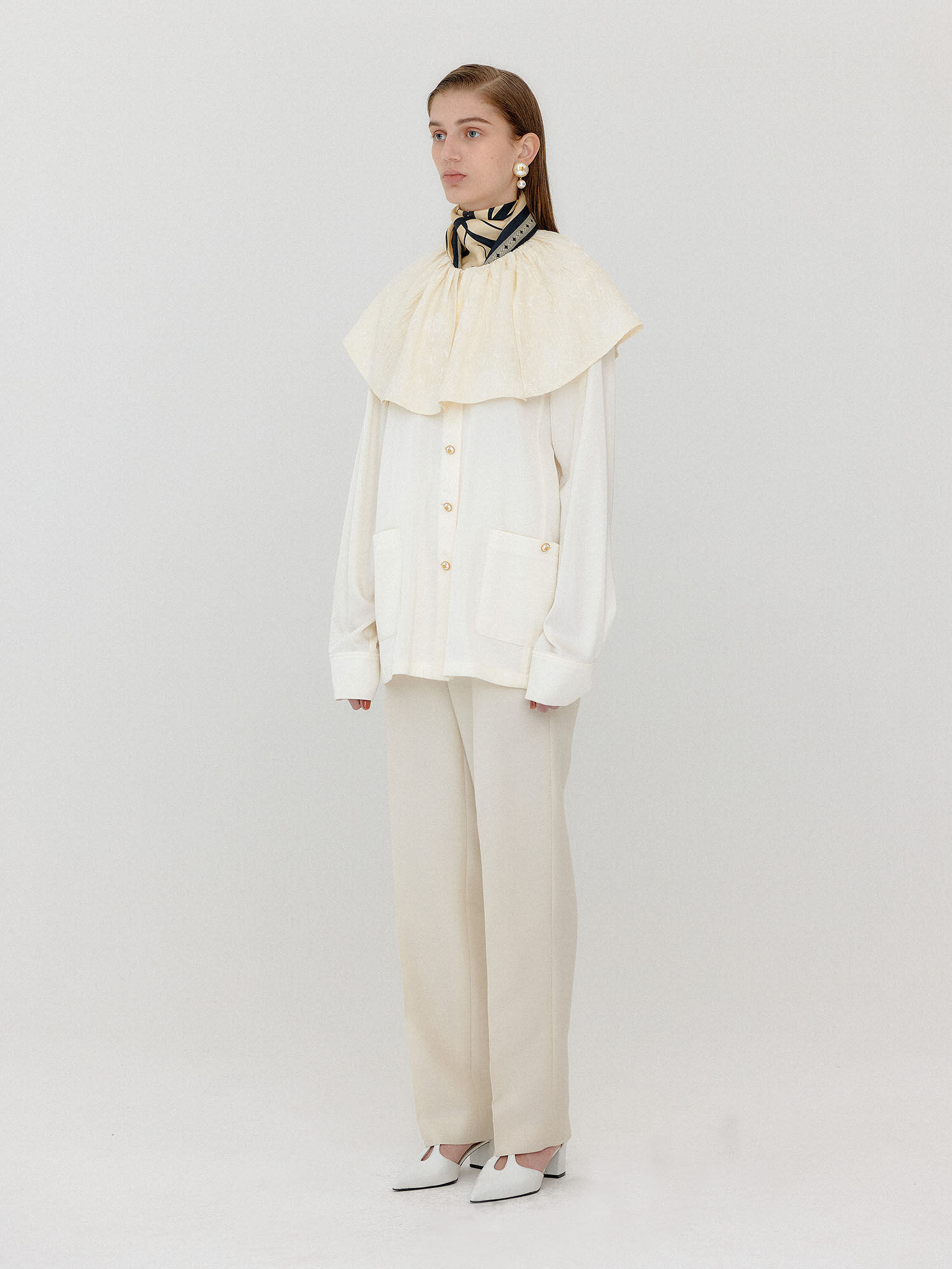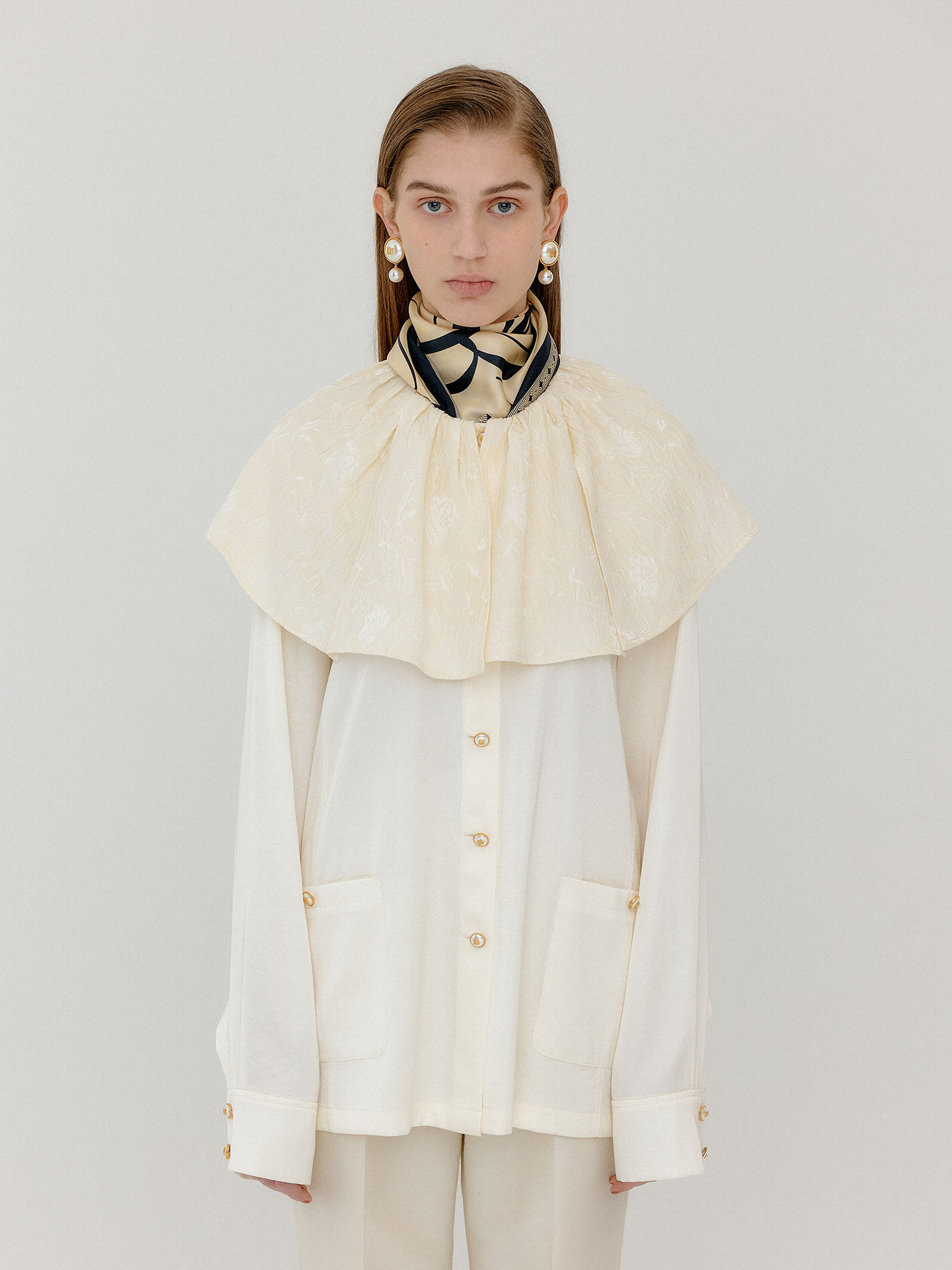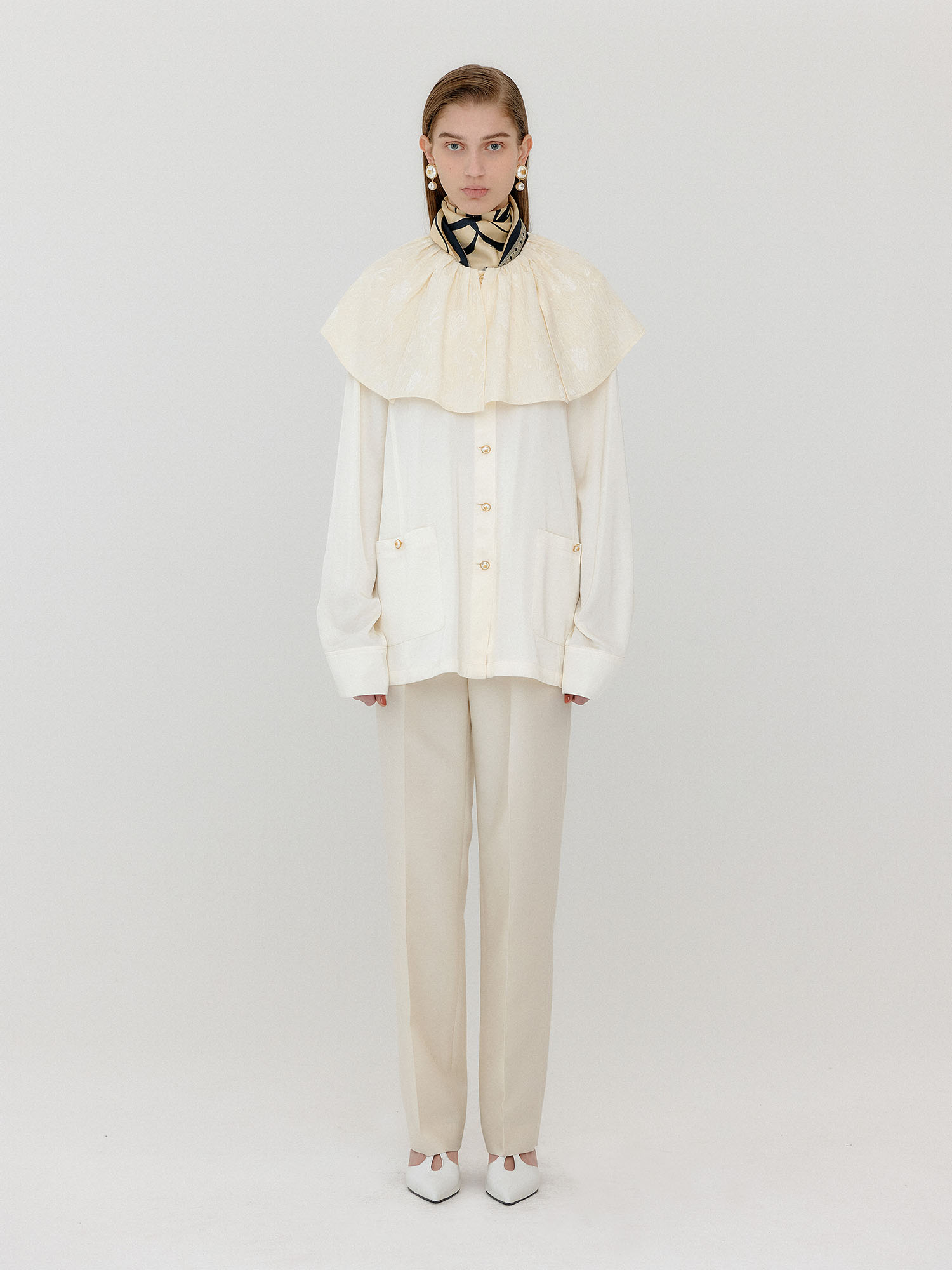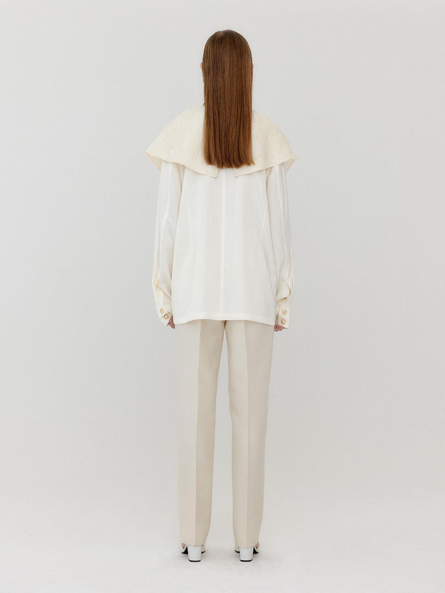 - 아이보리 컬러의 빅 카라 블라우스입니다.