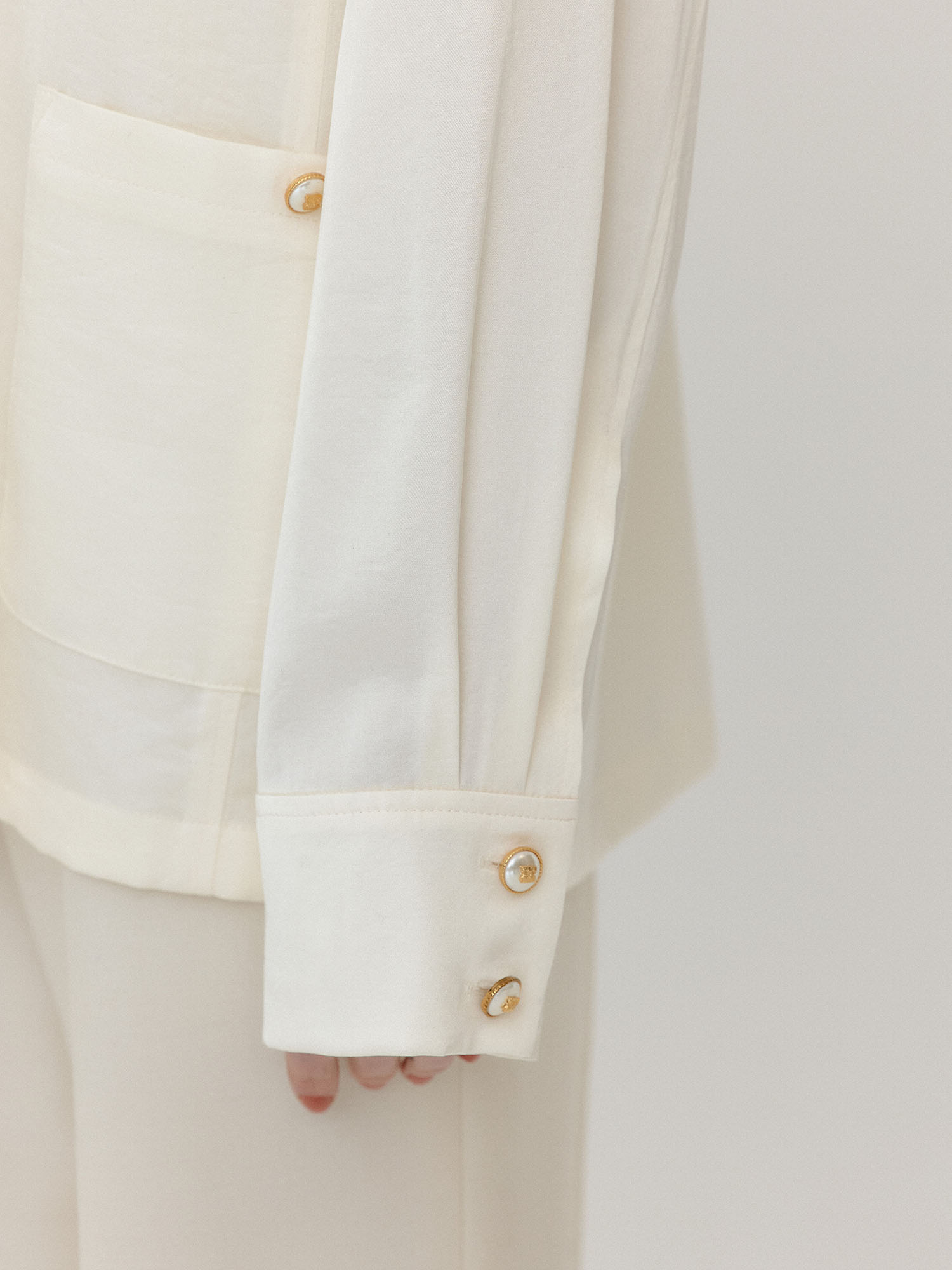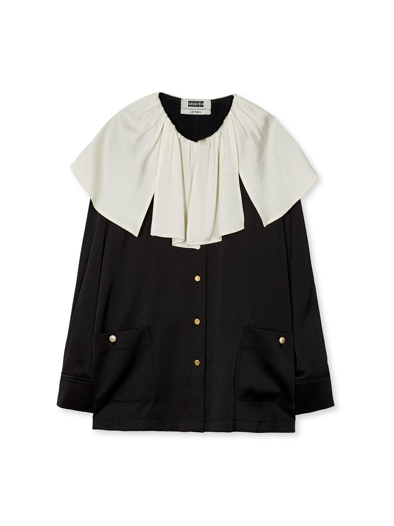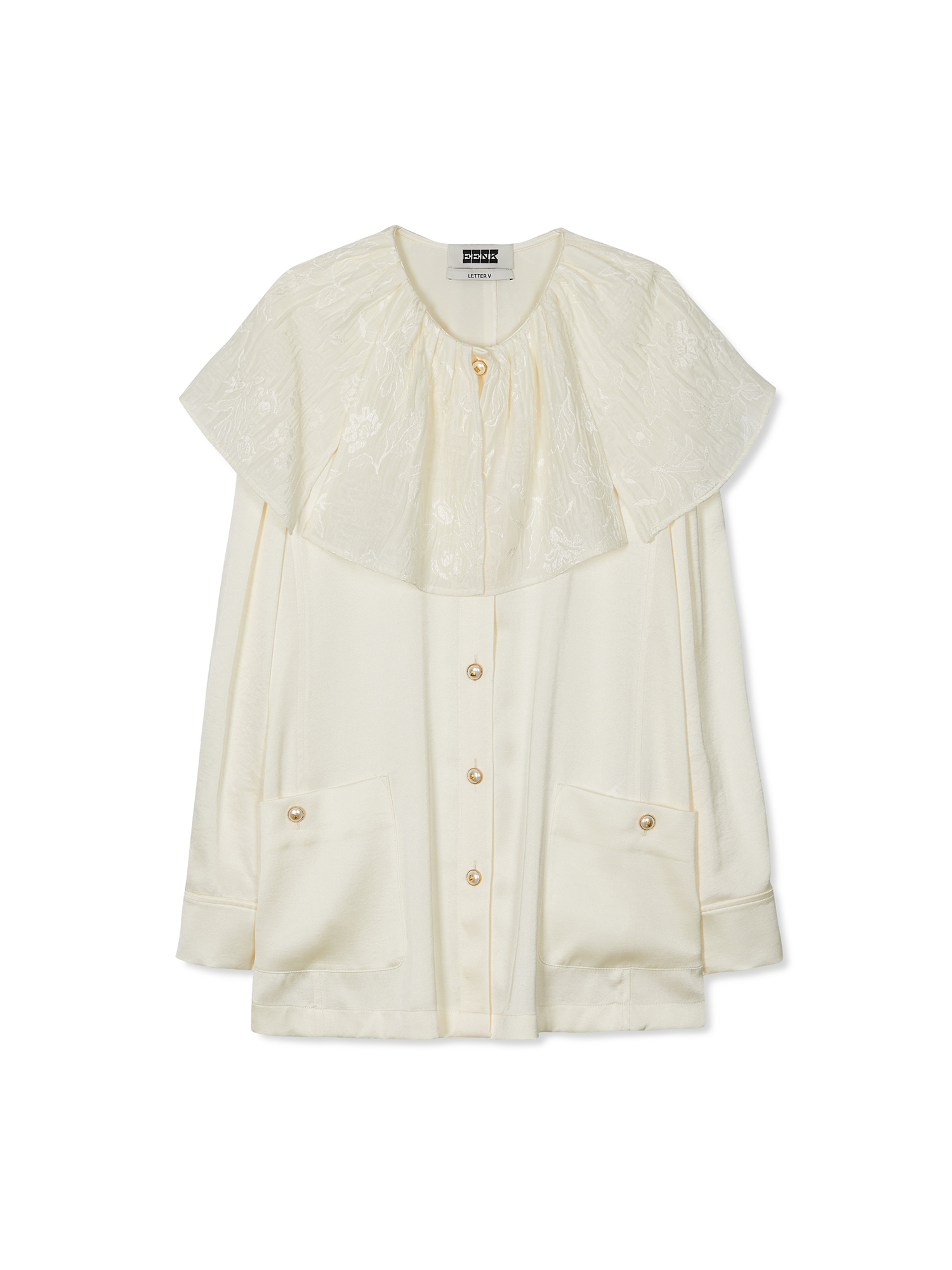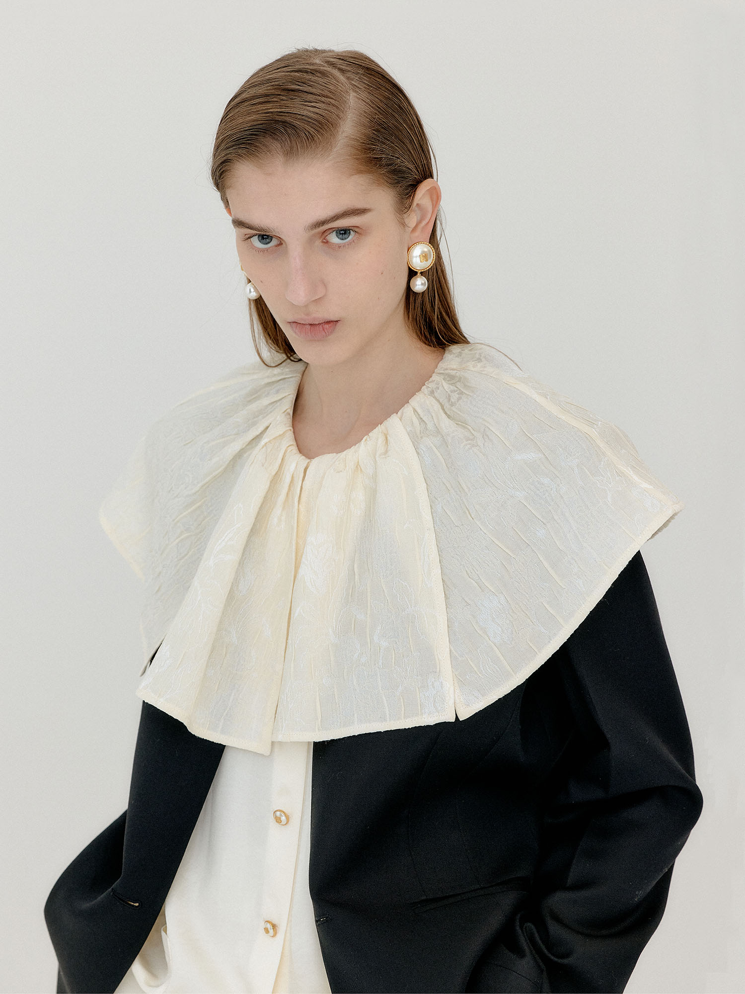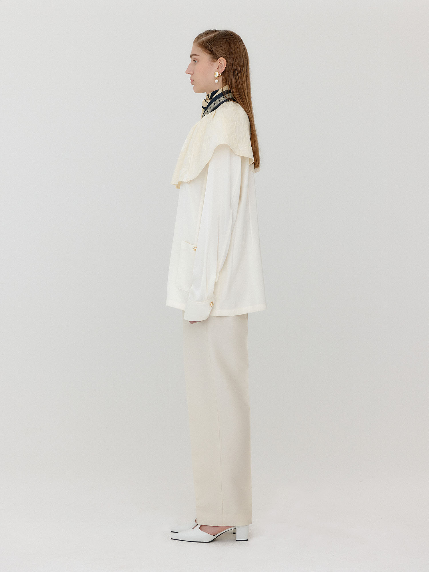 - 아이보리 컬러의 빅 카라 블라우스입니다.