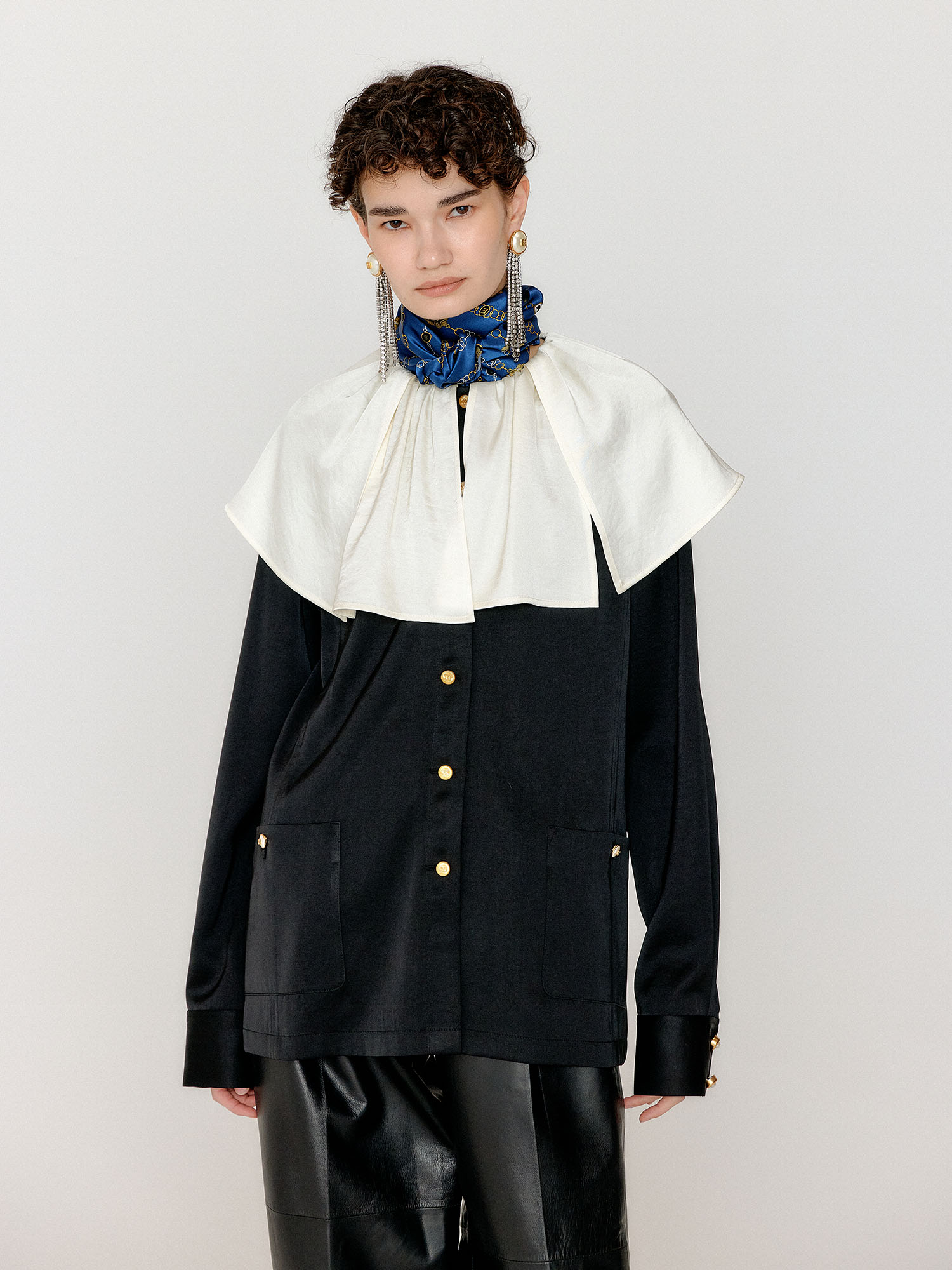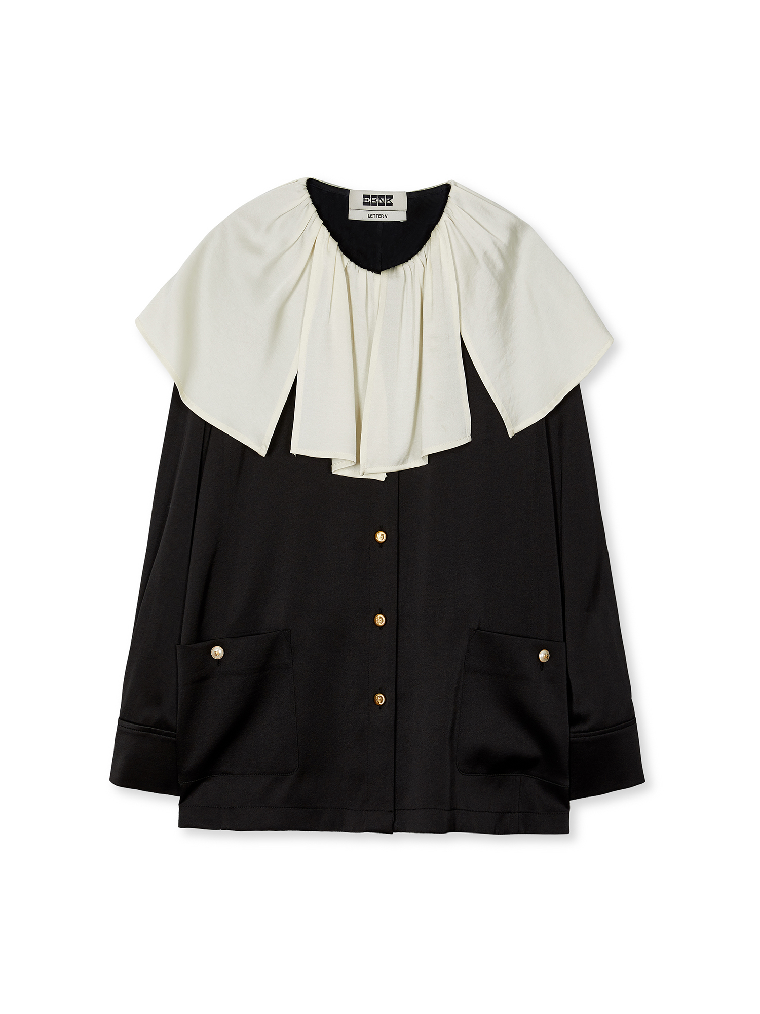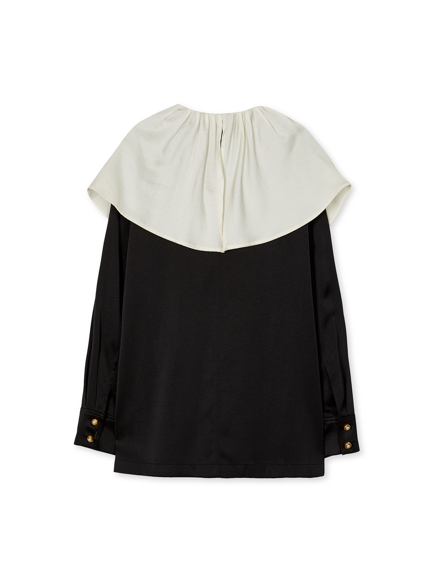 - 블랙 컬러의 빅 카라 블라우스입니다.