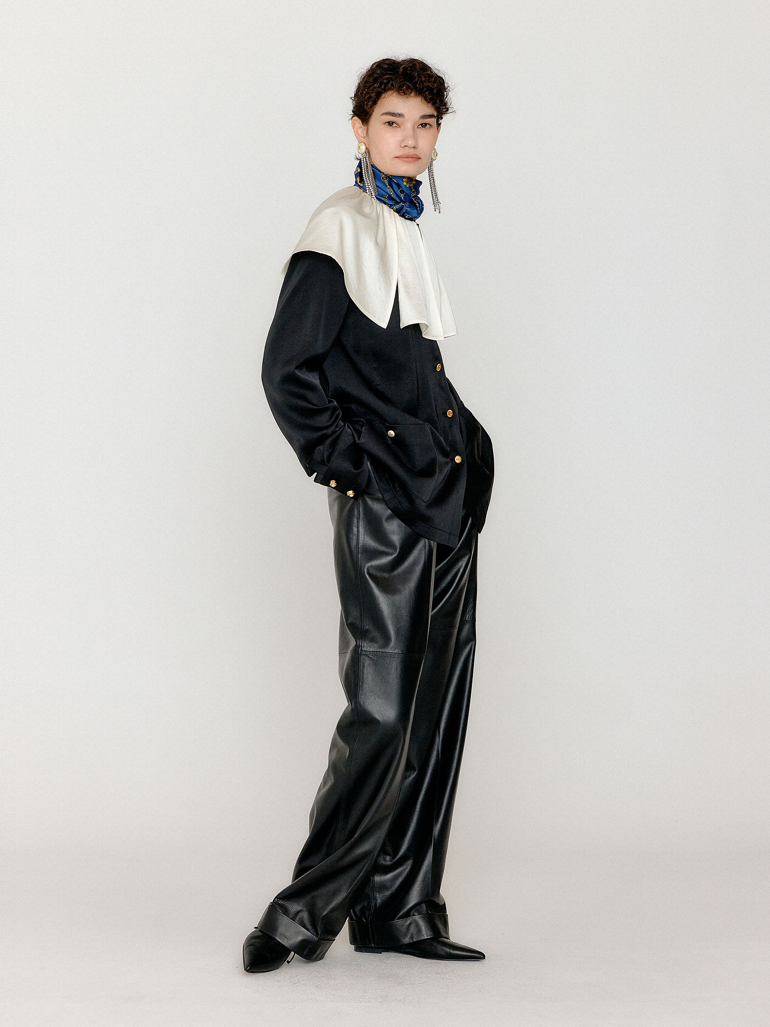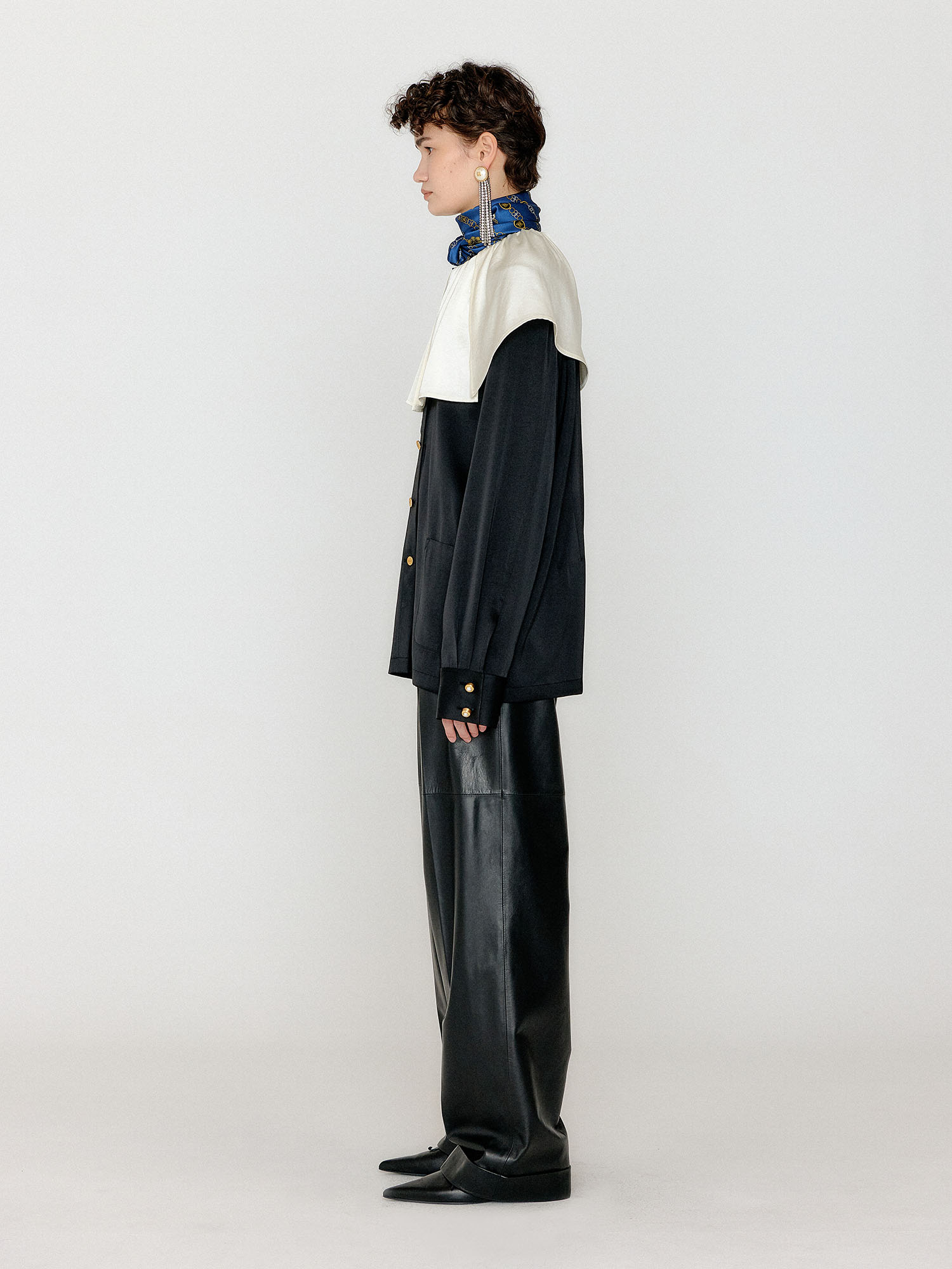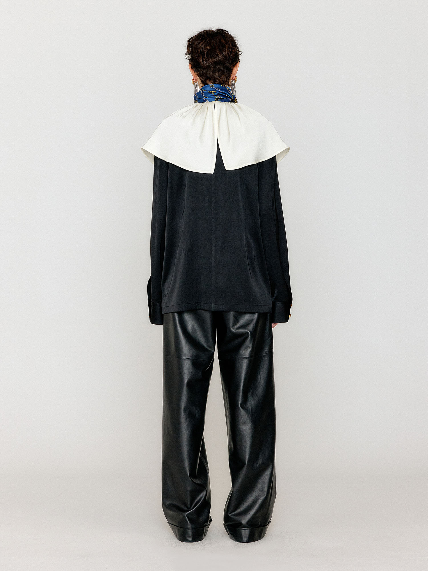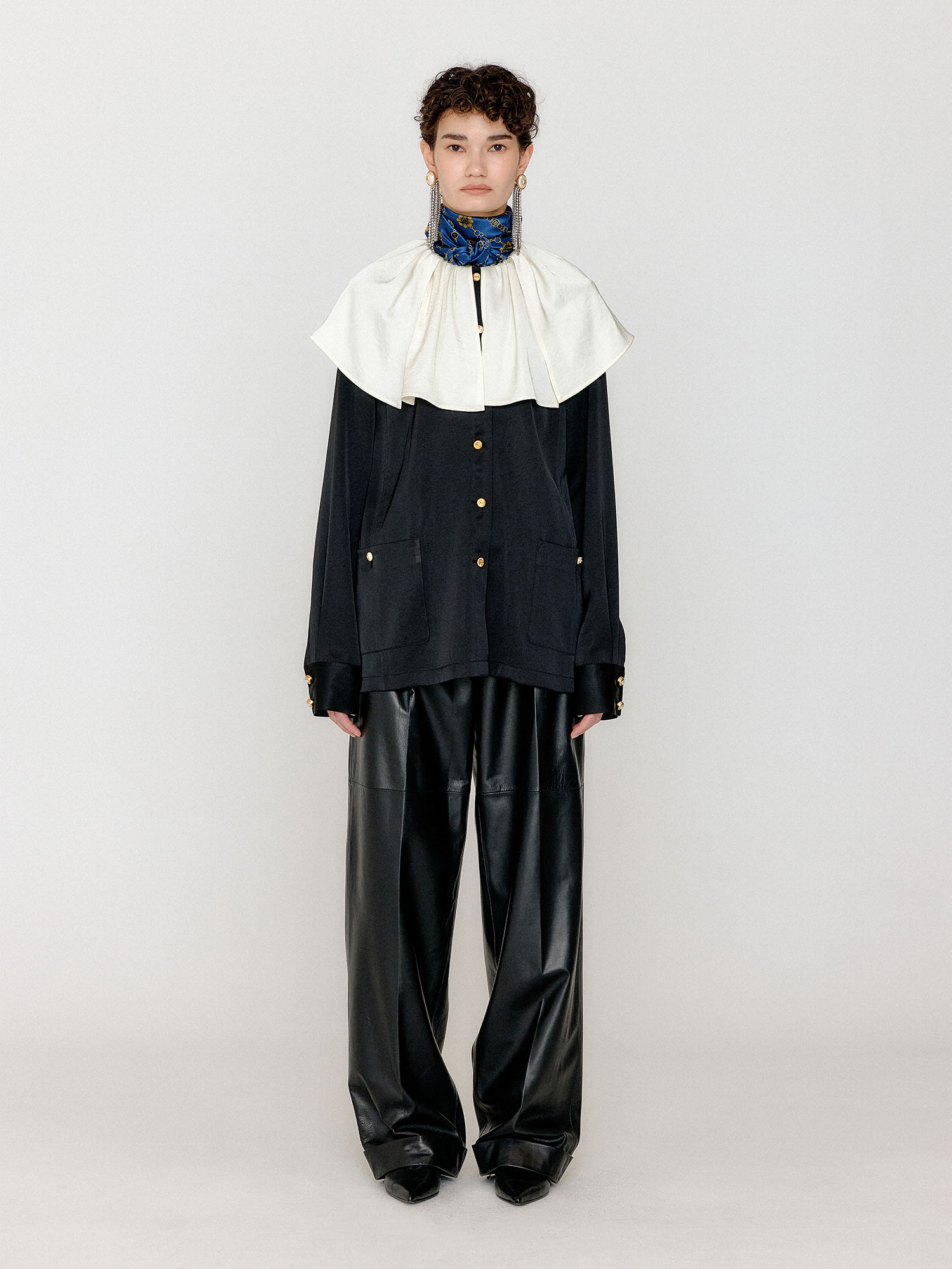 - 블랙 컬러의 빅 카라 블라우스입니다.