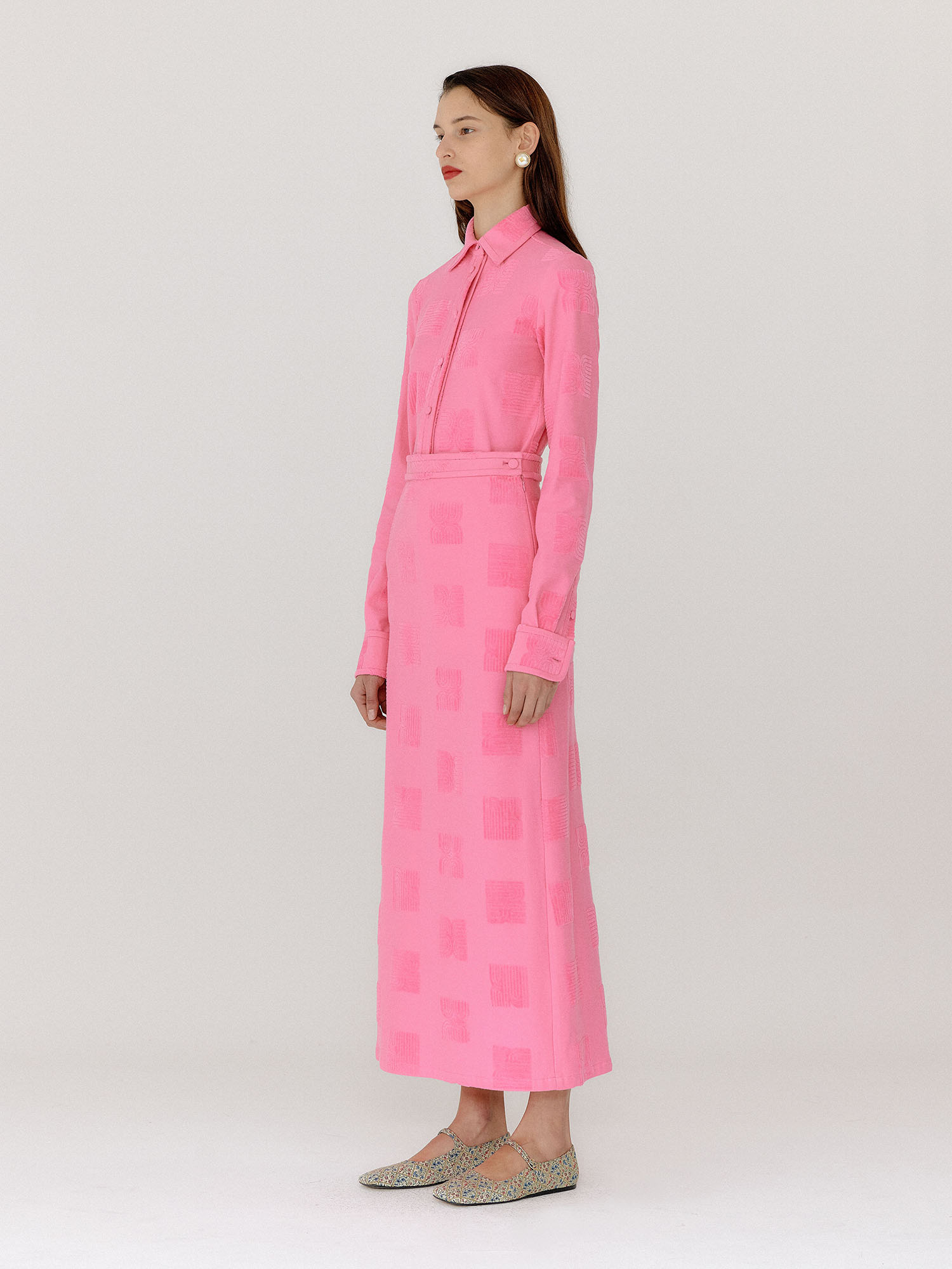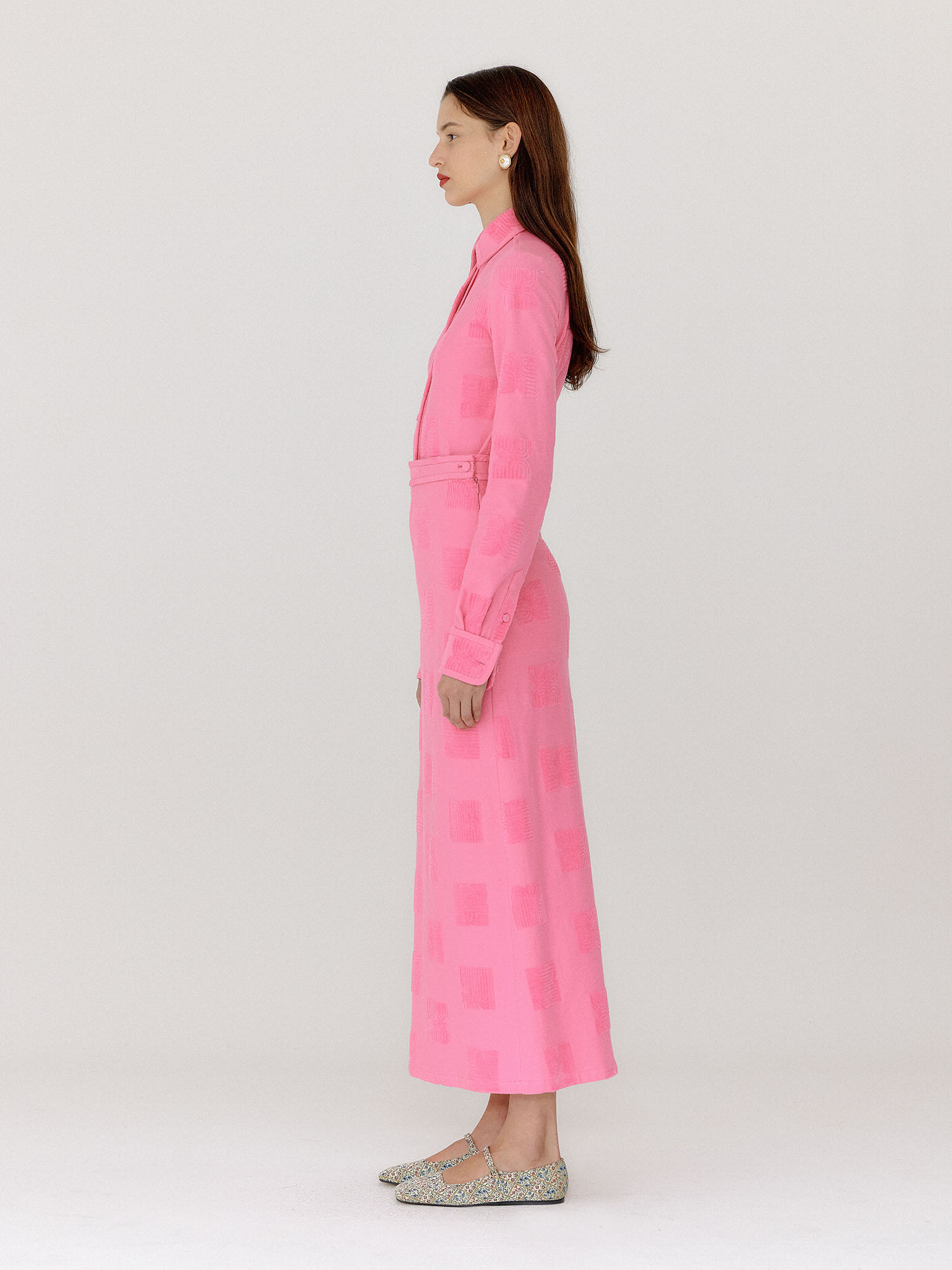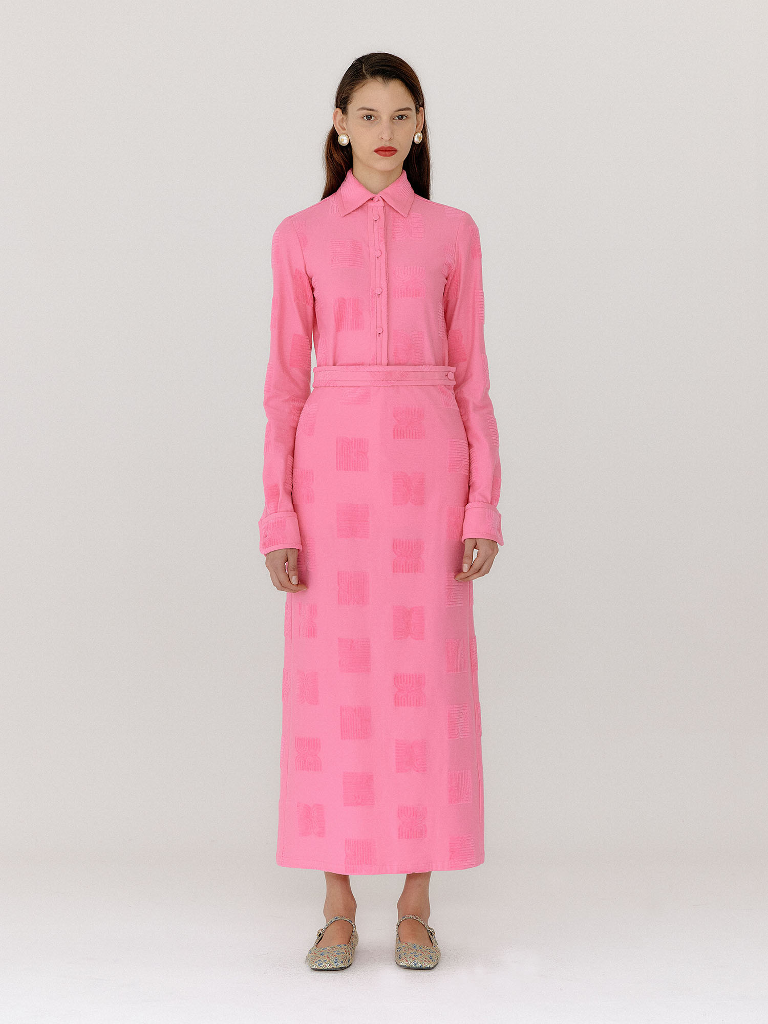 - 핑크 컬러의 셔츠입니다.