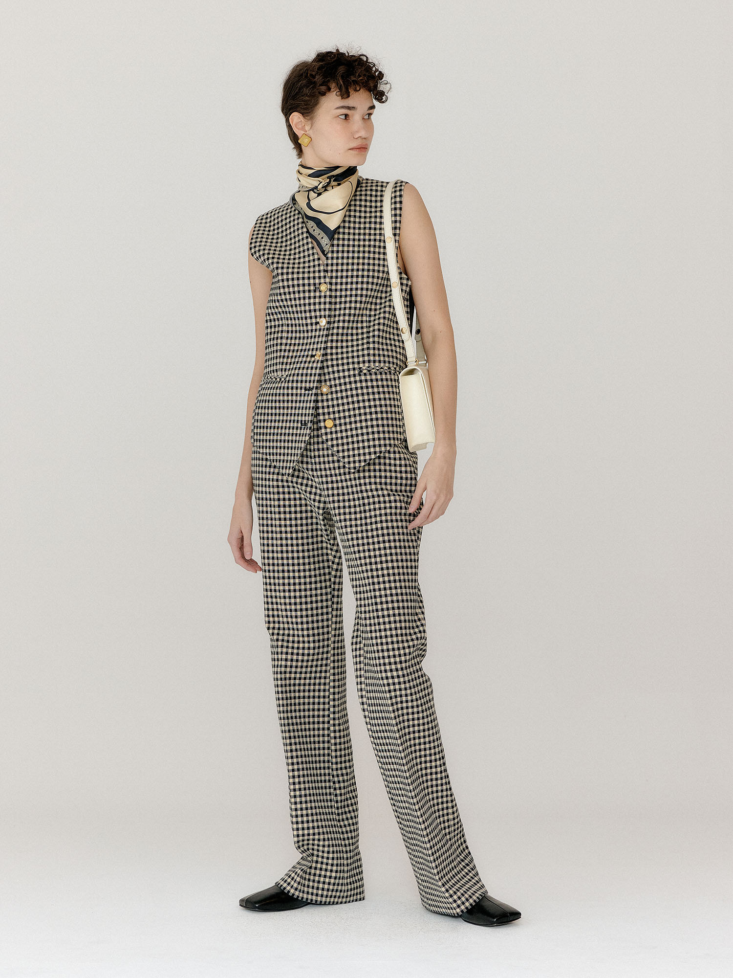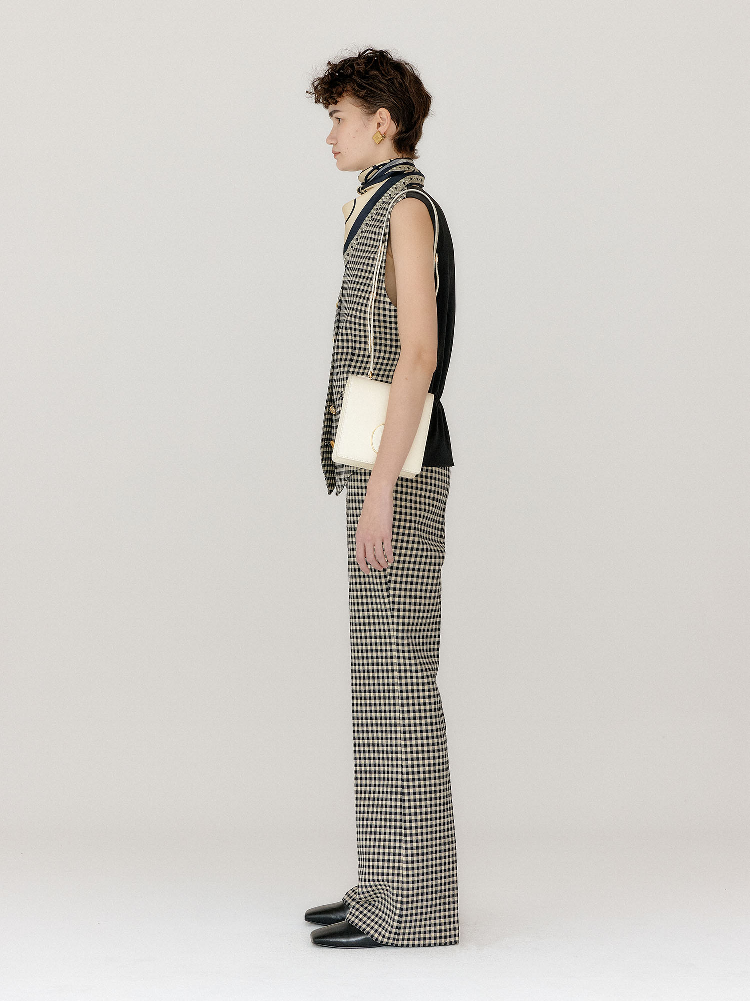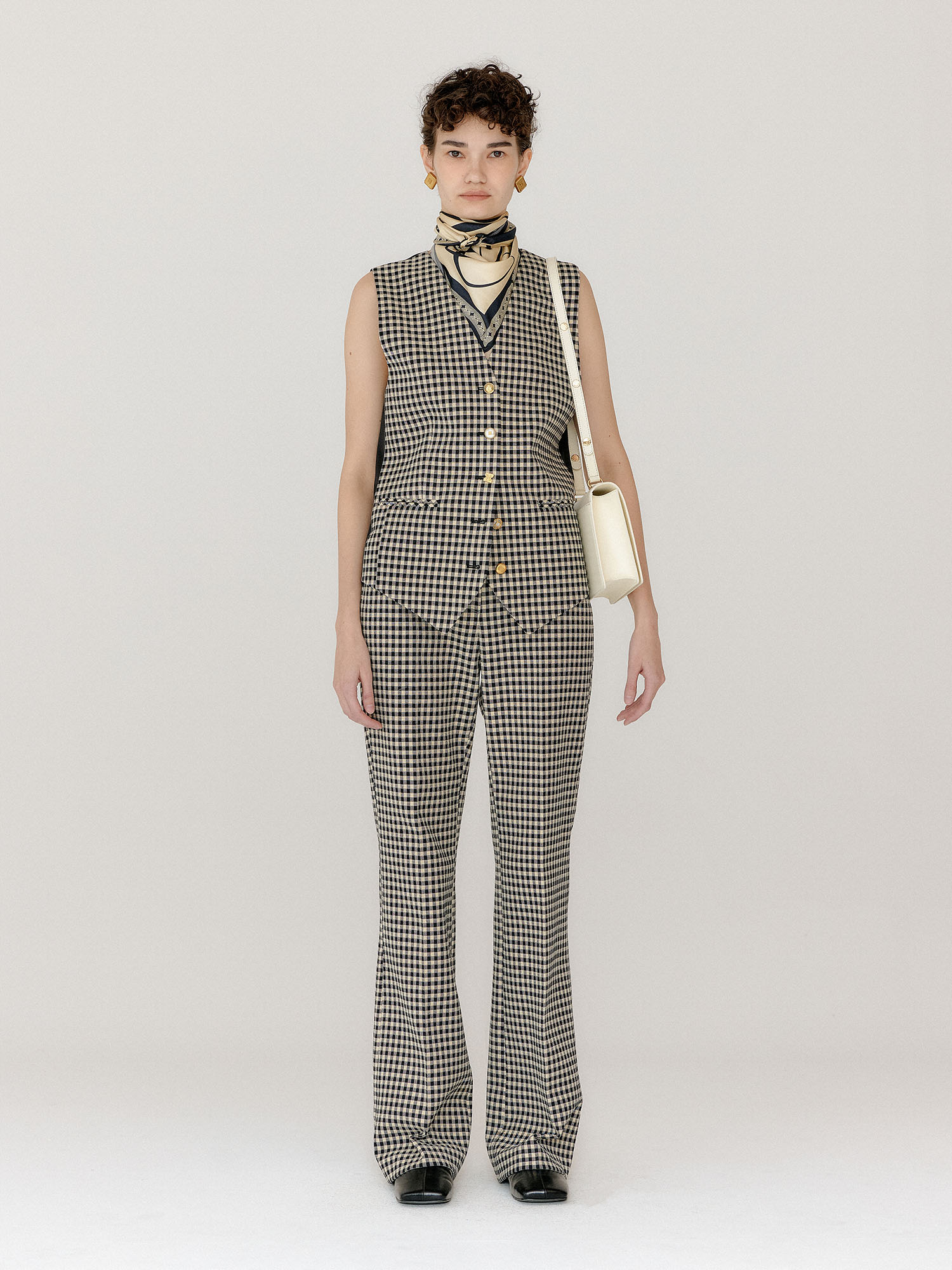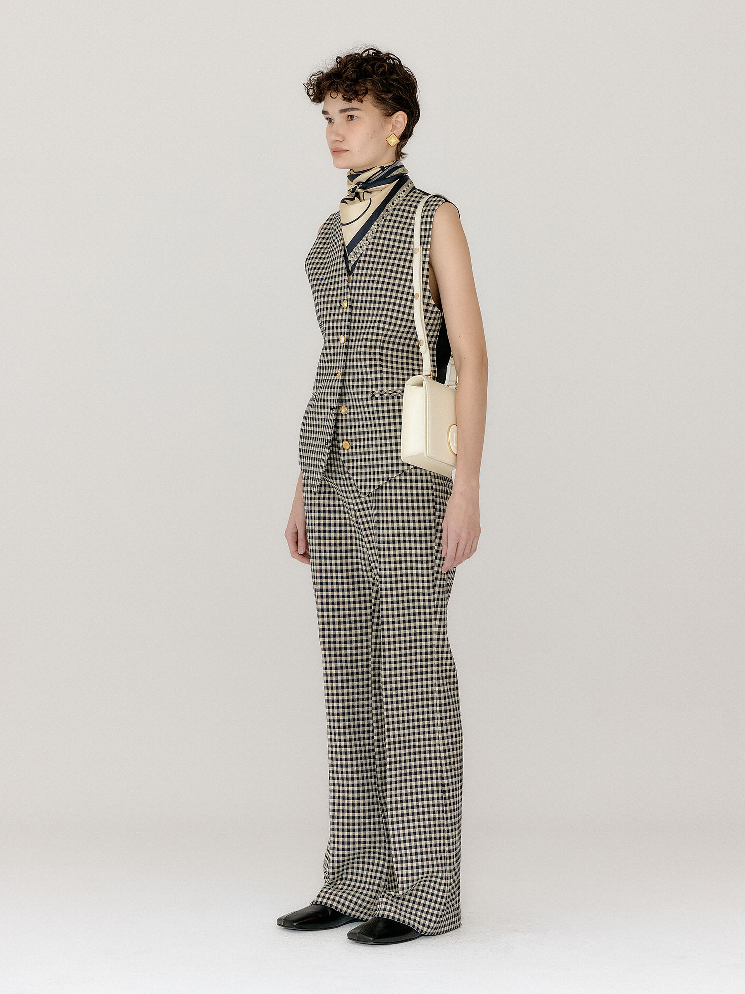 - 같은 소재의 베스트와 슈즈를 세트로 착용하여 셋업 연출이 가능합니다.